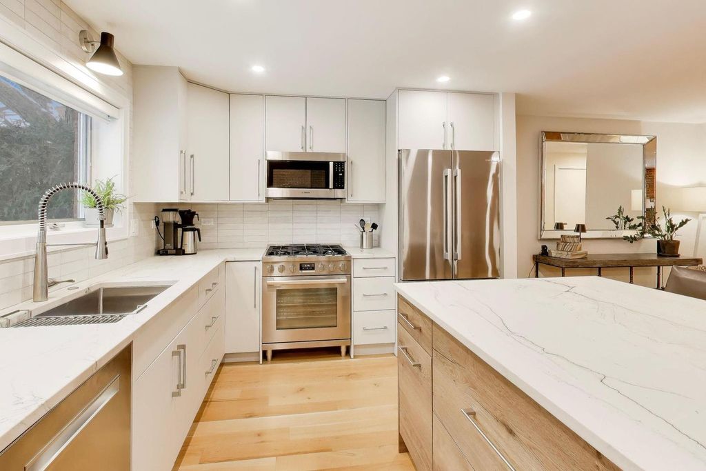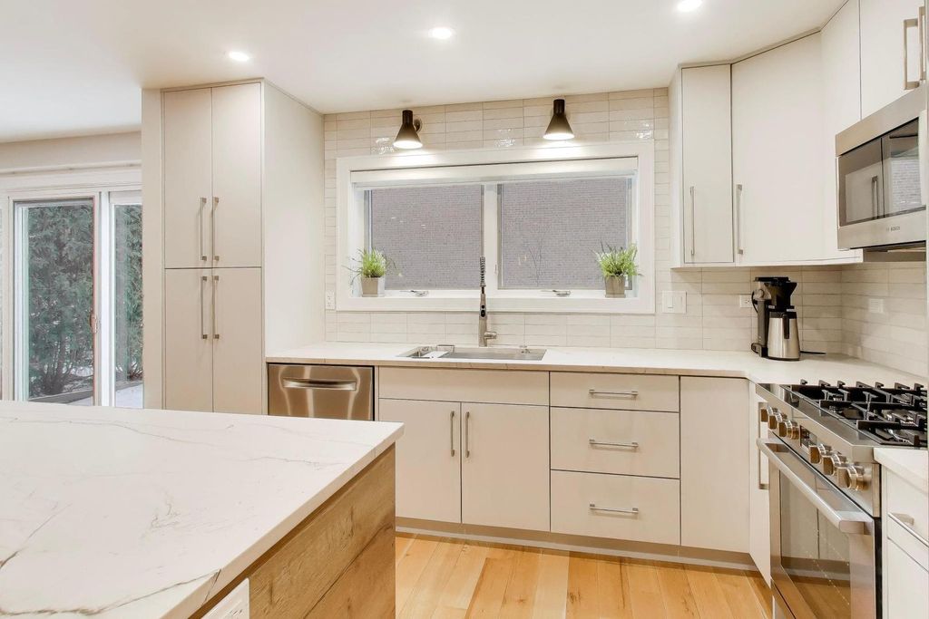 This is not an update - it is a transformation! In December 2021, this North Valley Lo townhome underwent a total renovation - walls removed, systems replaced, layouts reimagined - creating a home that feels intentional, refined, and effortless. The main floor was opened completely, blending kitchen and living room into one light-filled gathering space. White oak floors, custom stair railing, quartzite countertops, Bosch appliances, Kohler fixtures, and curated lighting create a sophisticated yet livable environment. Upstairs, the luxury primary suite was thoughtfully redesigned to include heated tile floors, custom closets, private commode, integrated washer/dryer, and room-darkening Hunter Douglas treatments. Every detail - from cabinetry to vent fans - was replaced. Additional bedrooms and baths reflect the same level of care and quality. And what you don't see matters just as much: All new HVAC systems with zoned heating and cooling. Tankless water heater. Three sump pumps with battery backup. Reconfigured ductwork. Central vacuum. Hardwired smoke detectors. Natural gas installation. Attic ventilation and insulation improvements. This is the kind of home that allows you to simply move in - and live!