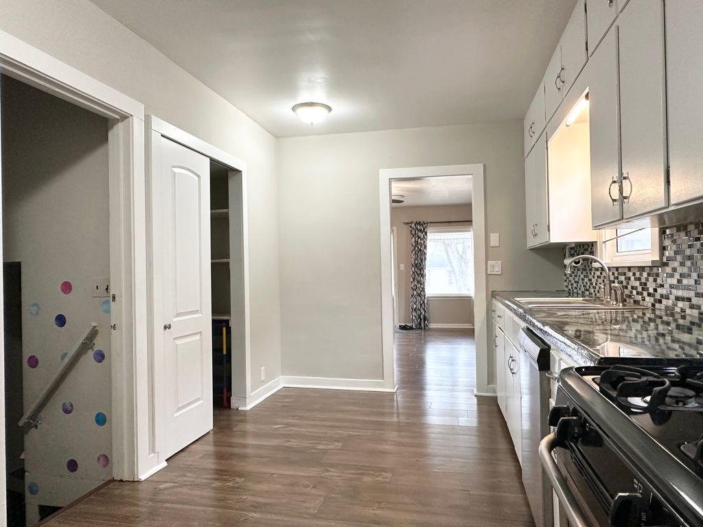 This beautifully maintained three-bedroom home offers comfort, style, and thoughtful updates throughout. Step inside to gorgeous laminate plank flooring and a bright, welcoming layout. The updated kitchen features abundant cabinetry, stainless steel appliances, and stylish concrete-finish countertops - perfect for everyday living and entertaining alike. The unique floor plan places the primary bedroom privately toward the back of the home, offering a peaceful retreat. The basement is exceptionally clean and has even been used as a classroom, providing flexible space for hobbies, work, or recreation. Enjoy the fenced yard for outdoor living, plus a detached garage conveniently located just steps from the home. A new water heater was installed in 2024, adding peace of mind. The laundry area is complete with a utility sink for added convenience. A well-loved home that truly shows pride of ownership - ready for you. Call today for your private tour.