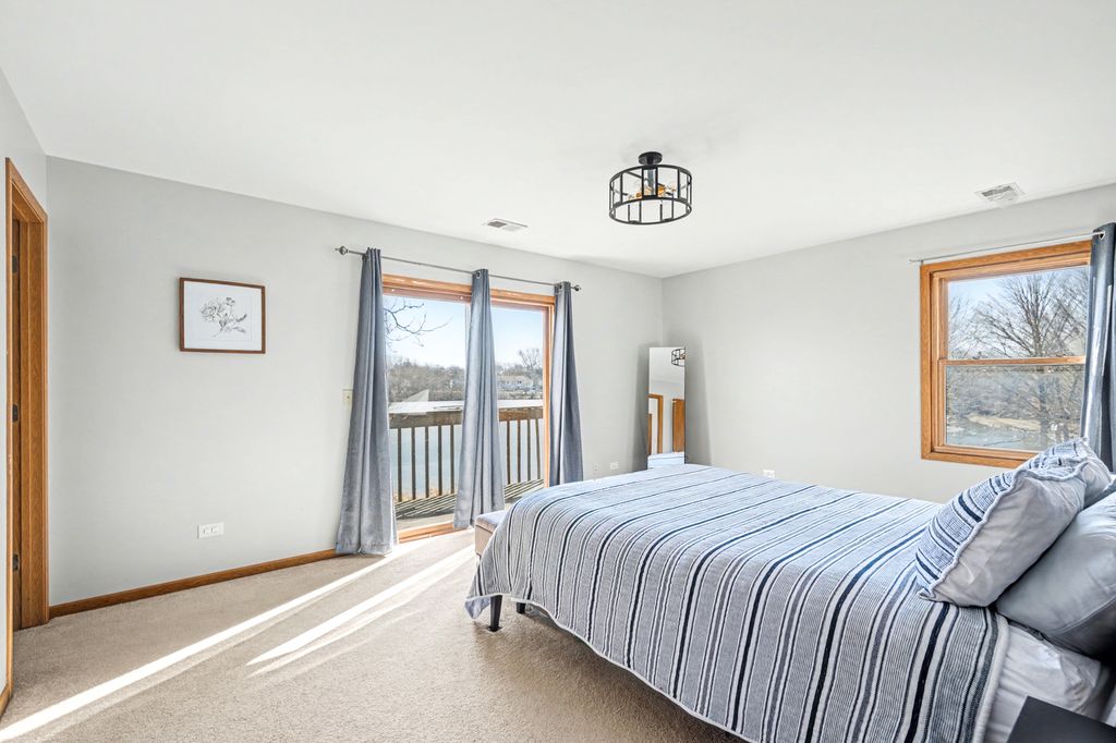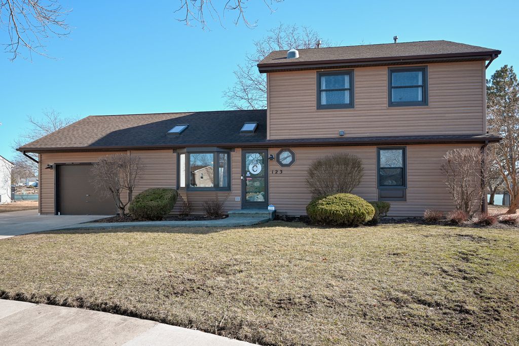 Welcome to 123 Heather Lane! This home is quite possibly the best location in Streamwood! Rarely available, Lake Front property in the highly sought after Arlingdale Lake neighborhood will not last long!! With 140 ft of pure water front living, this Two story gem is bound to impress! Incredible natural light, beautiful views, and modern open layout with new hardwood floors. Spacious Living room with Vaulted ceiling, sky lights, and bay window opens nicely into the updated Kitchen with plenty of Shaker cabinets, backsplash, Stainless Steel Appliances, granite countertops, additional Recessed Lighting, and a large Island with Breakfast Bar makes perfect for entertaining! Dining Room leads out to a separate storage area with French Doors and plenty of space to add a spacious laundry room including access to garage and back yard. Don't miss the Large Family Room leading out to your water front oasis with gorgeous Stamped Concrete patio, spacious shed and lush landscaping! Second level is complete with 3 large bedrooms, including spacious Primary Bedroom with a two story deck! Main floor laundry area can be converted back to a half bath. Presently, 1 Car garage utilized as a fitness room with newer heater/ac wall unit and will be converted back to a garage. Special upgrades: Crawl space incapsulated, Attic was insulated and W/D, Refrigerator, dishwasher are all new. Whether you enjoy fishing, canoeing, or just relaxing on the water this house is for you! Located near everything Schaumburg has to offer from retail, restaurants and more, not to mention the Tollway, this is a must see!! A water lovers dream in the heart of the suburbs!!