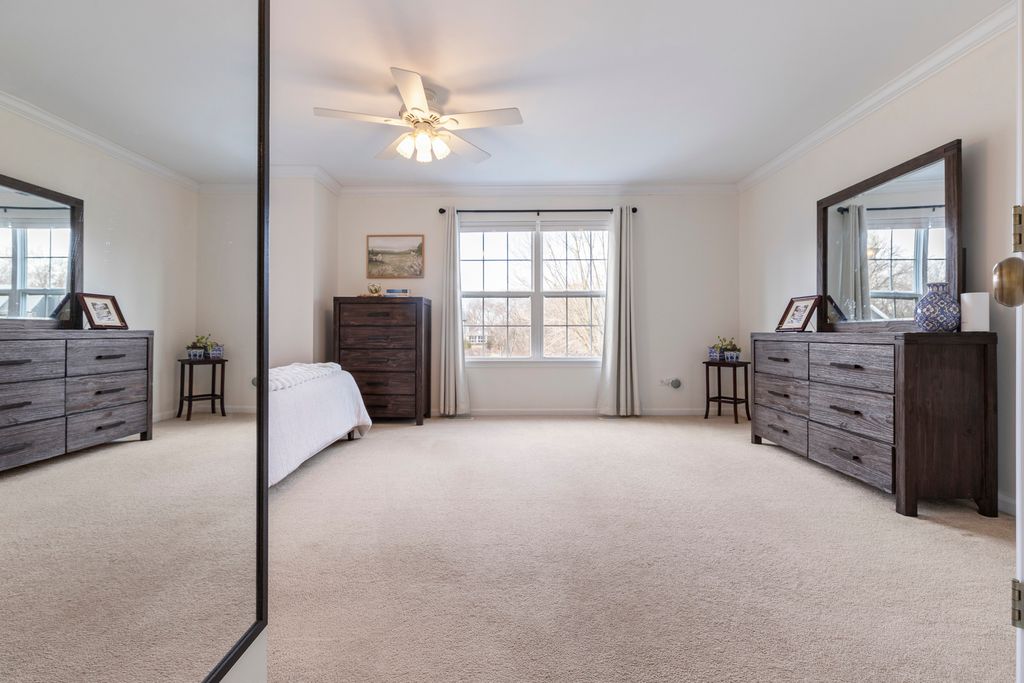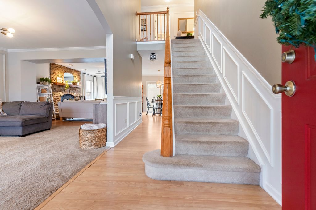 Welcome to this beautiful 4-bed, 3.5-bath home in the Hidden Pond subdivision - a cul-de-sac location with no backyard neighbors, just peaceful views! Enjoy the outdoors from the front porch swing, or head out back where you'll find both a deck and patio, perfect for relaxing or entertaining. Inside, you'll find inviting living spaces with beautiful moulding details, abundant natural light, and a layout designed for everyday living and gatherings. The fully updated kitchen offers both style and function, featuring an eat-in area as well as a separate dining room. Upstairs features spacious bedrooms, including a comfortable primary suite with an en-suite bath. The fully finished basement with a full bathroom provides additional living and recreation space and includes a home theater system plus a separate storage room.An XL driveway and thoughtful updates throughout complete this move-in-ready home. Homes in this neighborhood rarely come on the market, making this an exceptional opportunity. Owned by a licensed Illinois agent.