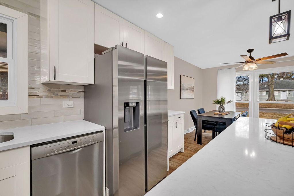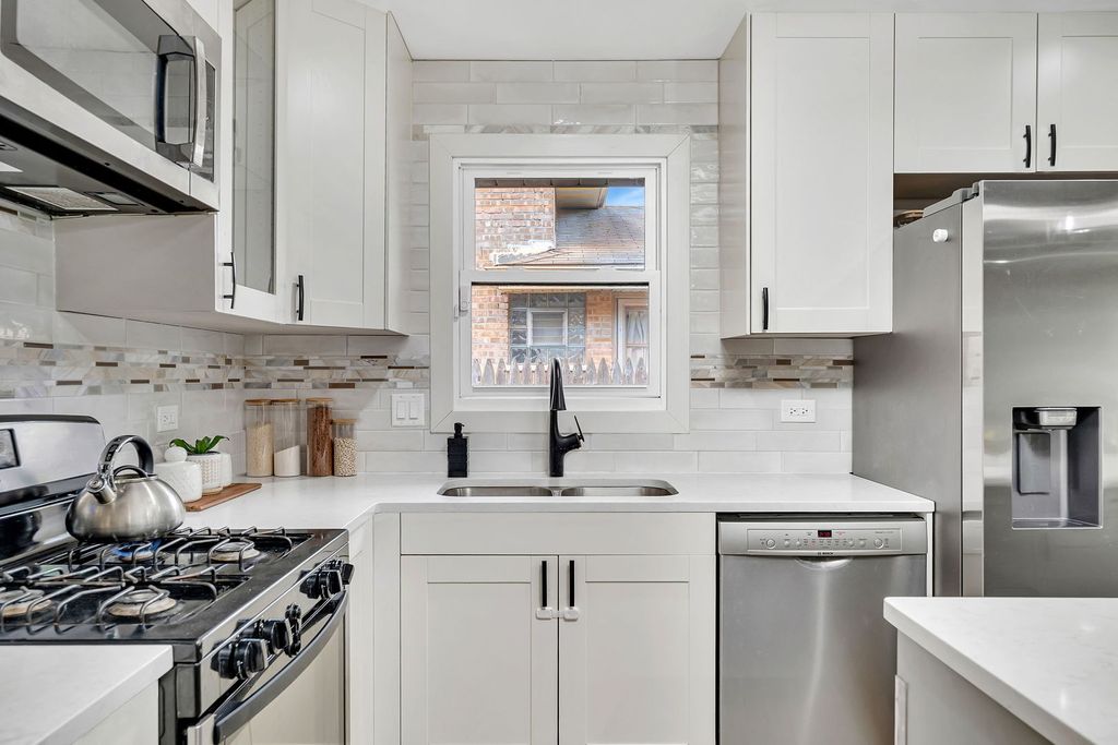 Welcome to 2533 Hickory Road in the highly sought-after Ravisloe Country Club estate section of Homewood, Illinois, where timeless character meets modern designer living in this extensively renovated split-level home offering 4 bedrooms, 2 full bathrooms, and over $140,000 (approx.) in high-quality upgrades. From the moment you arrive, the classic brick exterior, mature trees, and long asphalt side drive leading to a detached 2.5-car garage create a polished first impression. Once inside you are immediately greeted by a bright, open-concept Great Room design renovated in 2022 that seamlessly blends living, dining, and entertaining into one expansive, stylish space. The custom kitchen feels straight out of a luxury design magazine, showcasing quartz countertops, a massive island with generous seating under dual pendant lighting, stainless steel appliances, custom tall cabinetry including glass-front accents, and a sleek tile backsplash updated in 2024. Hardwood flooring, modern trim, updated interior doors, recessed lighting, and fresh interior paint elevate the entire home with a clean, contemporary aesthetic. Upstairs features three spacious bedrooms and a beautifully renovated full bath with ceramic tile, updated vanity, and modern fixtures. The lower level offers exceptional flexibility with a fourth bedroom currently styled as a family room, ideal for a home office, guest suite, fitness area, or playroom, along with a second fully updated bathroom and convenient crawl space storage. Major mechanical improvements including a new roof, energy-conscious furnace and AC, new windows, garage door, smart thermostat, and extensive system upgrades provide peace of mind and long-term savings rarely found in homes at this price point. Outdoors, enjoy a large deck overlooking a generous backyard perfect for entertaining, relaxing, or summer gatherings. Location is where this property truly shines. Situated in the quiet, tree-lined Ravisloe neighborhood near the golf course, you are minutes from the Homewood Metra station for an easy Chicago commute and just moments from the rapidly transforming downtown Homewood district, currently experiencing significant revitalization with new restaurants, boutique shopping, entertainment spaces, and community investments that continue to strengthen property values. Nearby parks and playgrounds, included one with brand-new equipment updates, add to the neighborhood appeal, while highly rated schools, hospitals, police, fire services, and essential amenities are all within close proximity. This home delivers the rare combination of established neighborhood charm with the confidence of modern renovations, offering turnkey convenience, sophisticated style, and lasting value in one of Homewood's most desirable pockets. View it. Buy it. Live your best new chapter at 2533 Hickory Road.