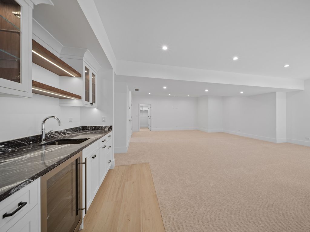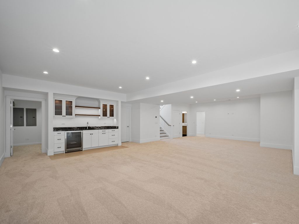 Currently under construction in the heart of prestigious Glen Oak Acres, this exceptional new residence offers approximately 6,200 square feet of refined, light-filled living across three expansive levels. A grand foyer introduces a thoughtfully composed floor plan, including an optional fifth bedroom or executive office and an elegant formal dining room. The centerpiece of the home is the family room, distinguished by custom built-ins, a statement fireplace, coffered ceilings, and seamless access to the brick-paver patio and expansive backyard through oversized sliding doors. The chef's kitchen is a masterclass in form and function, appointed with bespoke cabinetry, quartzite countertops, Sub-Zero refrigeration, a commanding Wolf gas range with griddle, twin ovens, Miele dishwasher, custom hood, built-in microwave, walk-in pantry, generous breakfast area, and an oversized island with prep sink and seating for six. Entertaining is further enhanced by a sophisticated butler's pantry with sink, extensive cabinetry, and additional storage. The main level is completed by a powder room, mudroom with custom cubbies, storage closet, and attached 2.5-car garage. The upper level is anchored by a serene primary suite, dual walk-in closets, and a spa-inspired bath with heated floors, dual vanity with makeup station, soaking tub, and oversized shower. Additional accommodations include Jack-and-Jill bedrooms with shared bath and dual vanities, a junior suite with private bath and walk-in closet, and a well-appointed laundry room with abundant cabinetry, and folding surfaces. An unfinished flex space offers future flexibility. The lower level expands the home's versatility with a spacious recreation room illuminated by oversized windows, a stylish wet bar, optional sixth bedroom, full bath and substantial storage. Notable features include white oak hardwood floors throughout the first and second levels, professionally designed closet systems, CAT6 wiring, zoned heating and cooling, brick-paver patio, and an exceptionally large backyard. Ideally located minutes from shopping, dining, Metra, I-94, award-winning schools, parks, golf, tennis, Loyola, and recreation, this residence represents a rare opportunity to secure a custom-caliber new construction home in one of Glenview's most coveted enclaves.