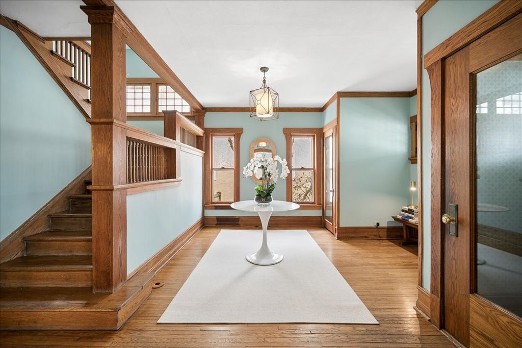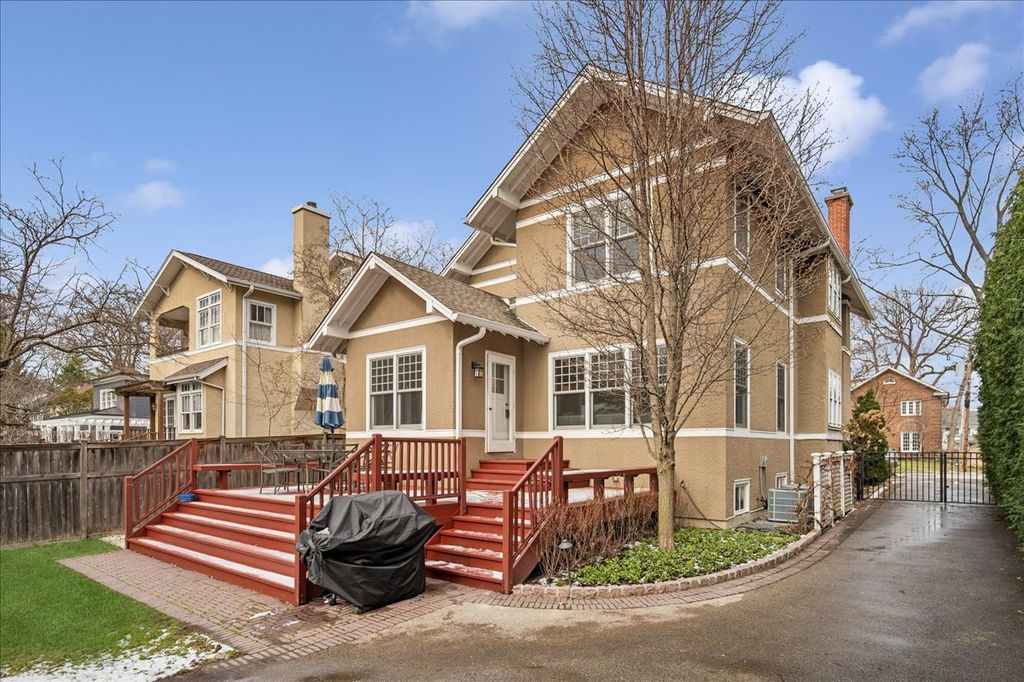 Welcome home to this beautiful east Winnetka home, where classic charm meets modern comfort and the design, ceiling heights, flow and quality is is exceptional. A gracious foyer (15 x 13) welcomes you and flows effortlessly into the inviting living room with gas fireplace and to the formal dining room - complete with a cozy window seat and timeless built-ins - the perfect setting for holiday celebrations and special meals. At the heart of the home, you'll find a stunning custom kitchen featuring beautiful cabinetry, high-end appliances, a spacious center island with extra storage, prep sink and island seating for 4. A large walk-in pantry adds to the convenience of this finely designed kitchen. The adjacent butler's pantry with wine fridge and abundant storage for glassware makes entertaining easy and elegant. The spacious, bright and airy family room overlooks the backyard and deck and creates a warm, connected space for gathering and relaxing. A thoughtfully designed mudroom keeps daily life beautifully organized. Upstairs, the serene and spacious primary suite feels like a private retreat, complete with its own entrance hall, large walk-in closet and generous hall closet, and a luxurious bath with custom cabinetry, double sinks and a beautiful shower. Three additional bedrooms and a renovated hall bath complete the second floor. The third floor offers wonderful flexibility with two more bedrooms (or office spaces) plus a renovated bath - perfect for guests, family or work-from-home needs. The excavated lower level provides a fantastic recreation/exercise area in the newer section under the addition and a cheery, inviting playroom, powder room, laundry, and abundant storage in the original basement. Outdoor living is just as special with a welcoming 19' x 11' front porch with ceiling fan and an expansive back deck which overlooks the fully fenced backyard (including gate at driveway), designed for relaxing evenings and effortless entertaining. South and west exposures are enjoyed in this sunny outdoor area. A 2 and 1/2-car garage adds even more convenience. All of this is located in an unbeatable location close to the train, parks, Lake Michigan, and town - truly the best of Winnetka living!