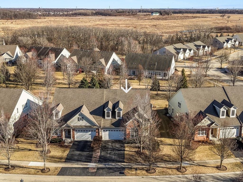Best location in sought after Meadowridge Villas 55+ active adult community! Enjoy maintenance-free living in this spacious home offering over 2,000 sq ft of finished living space overlooking open space and trees. Fantastic floor plan features a combined living/dining area flowing into the vaulted family room and kitchen with large island. High ceilings and plentiful windows allow natural sunlight to brighten your every day! The main-level primary suite includes a generous bedroom, large walk-in closet, and bath with dual sinks, walk-in shower, and separate soaking tub. A second main-level bedroom/office in front of the home is near another full bath. Main level laundry room/mud room. Upstairs you'll find a third bedroom and third full bath. The unfinished deep-pour basement offers high ceilings, rough-in plumbing, and endless potential. Patio overlooks peaceful open space. 2017: new water heater. 2019: new furnace. 2020: new A/C. Meadowridge Villas is located within the larger Prestbury community featuring a pool, clubhouse, tennis, pickleball, lake access, and year-round social events. Bliss Creek public golf coarse right in the community. Moments to I-88, restaurants, shopping, and bike trails. Be sure to view the virtual tour for more about Prestbury! Love your home and your lifestyle at 1787A Glenwood Circle!