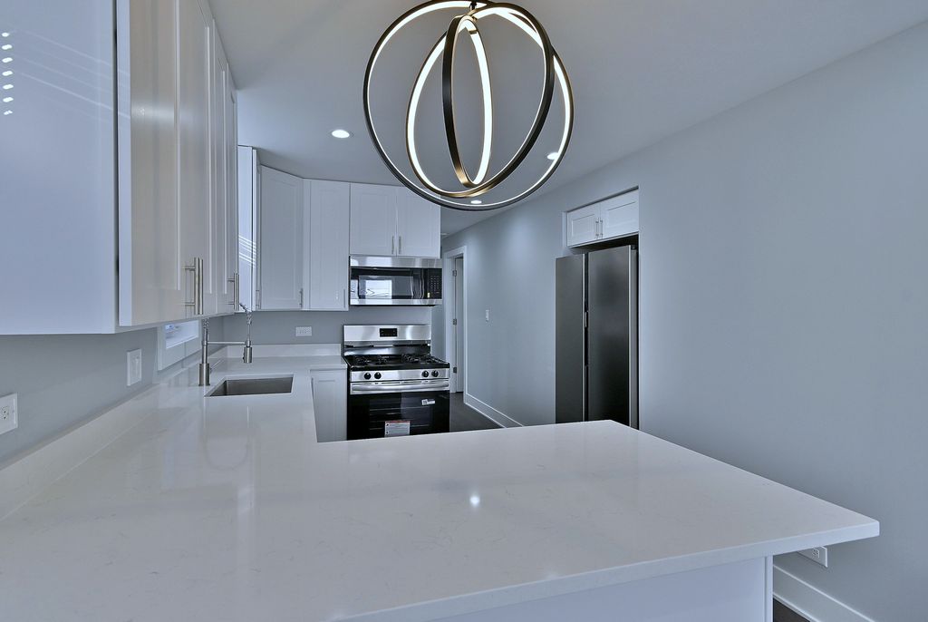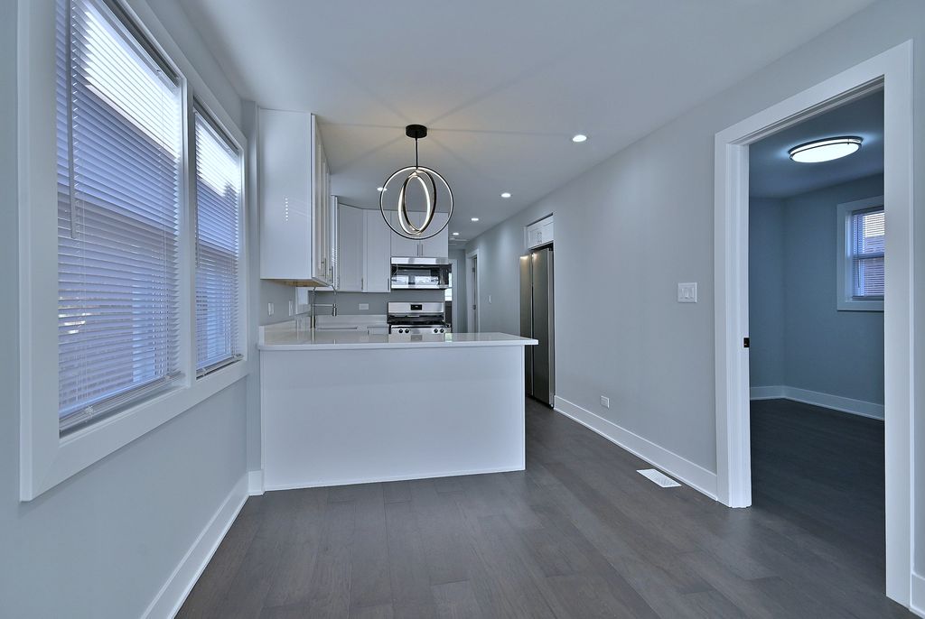Welcome to this beautifully renovated brick ranch offering modern design and timeless comfort. The main level features an open floor plan with a spacious living and dining room combo, complete with new hardwood floors, recessed lighting, and large windows that flood the space with natural light. The chef's kitchen boasts custom cabinetry, quartz countertops, stainless steel appliances, and a convenient breakfast bar, perfect for casual dining or entertaining. The primary suite includes a luxurious en-suite bathroom, while two additional bedrooms and a full bath complete the first floor. The finished basement expands your living space with a large recreation room, two bedrooms, a full bath, and a separate laundry room - ideal for guests, extended family, or a home office setup. Enjoy outdoor living in the spacious, fenced-in yard featuring a new privacy fence and patio, perfect for gatherings or relaxation. A two-car garage provides ample parking and storage. Located with easy access to major expressways, public transportation, shopping, and entertainment - this home truly has it all!