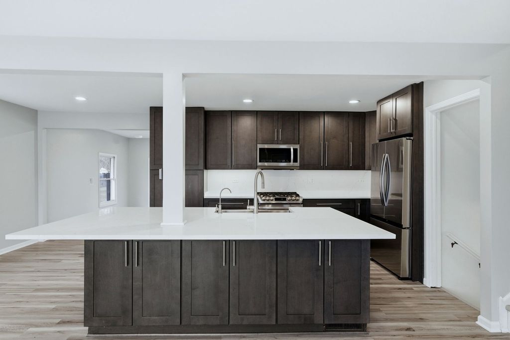 Step into this beautifully updated 3+1 bedroom, 2 full bath split-level home featuring a spacious Great Room addition, all set on over an acre of land. A welcoming foyer opens to a bright, open-concept living room that flows seamlessly into the dining area and renovated kitchen. The kitchen features custom cabinetry, quartz countertops, stainless steel appliances, and a large breakfast bar with seating for six, ideal for everyday living and effortless entertaining. Just beyond the kitchen, the expansive Great Room addition provides incredible extra living space and serves as the ideal setting for gatherings, movie nights, or simply relaxing at home. Upstairs, you'll find three comfortably-sized bedrooms along with a updated full bath. The lower level expands your living space even further with a second updated full bath, a spacious laundry room with additional storage, and a large family room complete with a wet bar, creating an inviting setting for entertaining. Tucked off the back of the lower level is the 4th bedroom addition, a flexible space that can easily function as a home office, playroom or workout space. Step outside to your private backyard oasis set on over an acre of fenced land. Enjoy the newly installed stamped concrete patio with pergola-great for outdoor entertaining. The home also features a 2-car, attached garage with epoxy flooring and a horseshoe driveway offering an additional 6-8 parking spaces. With ample room for extra vehicles, recreational equipment, or storage needs, this property provides the space and flexibility that's hard to find. Updates include: Paint (2026 & 2021), Well pressure tank (2025), Washer (2024), Stamped concrete patio & pergola (2024), Bathroom Remodel (2023), HWH (2023), Partial fence replacement (2023), 2nd & Lower level floors (2023), Main level floors (2021), Kitchen Remodel (2021), Kitchen appliances (2021).