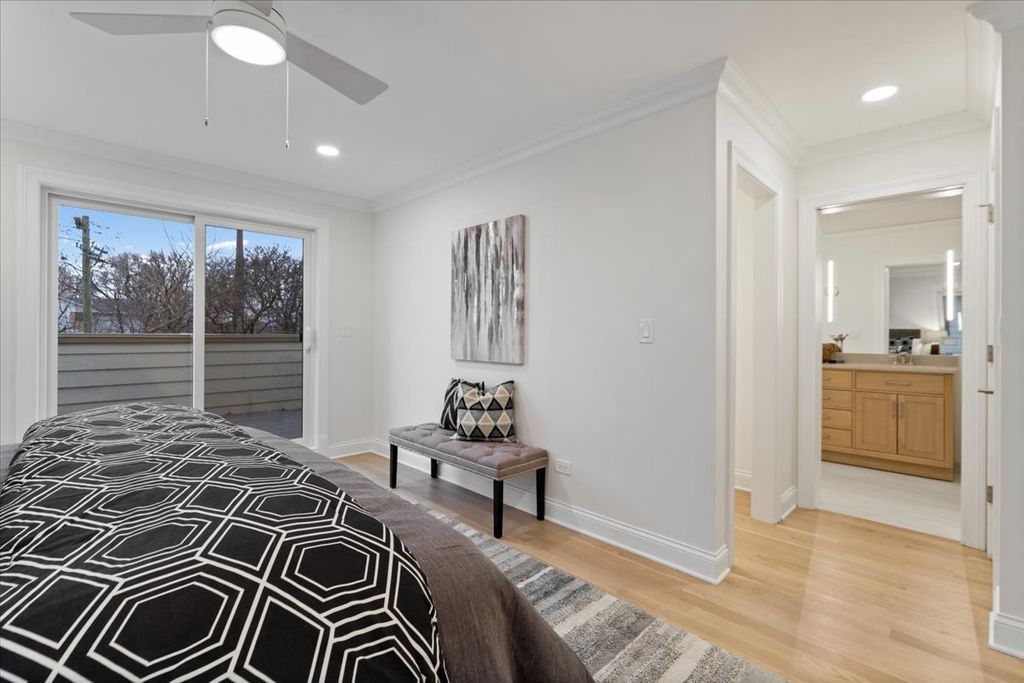 Welcome to 4546 N Knox Avenue, a completely renovated and expanded 5-bedroom, 4-bathroom Chicago bungalow nestled on a quiet, tree-lined street in the heart Mayfair, one of Chicago's best kept secret neighborhoods. The front of the home maintains its classic Chicago bungalow charm - showcasing timeless brickwork, warm curb appeal, and traditional architectural character - while seamlessly incorporating thoughtful modern updates that enhance both style and function. Step inside to a bright, open-concept main level featuring white oak hardwood floors, recessed lighting, and a spacious living and dining area ideal for everyday living and entertaining. Walk into a customized tile foyer and formal living and dining room that respects the charm of the Chicago bungalow but has been thoughtfully updated with modern fixtures. The main level features a bright, airy, and semi open-concept living and dining space with recessed lighting throughout, custom finishes all of which flow effortlessly into a stunning chef's kitchen with custom cabinetry, quartz countertops, Bosch stainless steel appliances, and a generous island ideal for gathering and entertaining. The kitchen island overlooks the eat in kitchen area perfect for a customized banquette and the spacious family room perfect for informal family activities and gatherings. The main level is flooded with natural light, bright, airy, functional, and spacious. Walk up the customized staircase and balustrades to the private primary retreat with a walk-in closet, ensuite spa inspired bath, with stand-alone tub, and a balcony off the bedroom with trex decking that you can enjoy your morning coffee or watch the sunset in the evenings. On this level there are two additional spacious bedrooms, one additional bathroom, and another walk-in closet for storage, every detail has been thought of in this home. The fully finished lower level adds valuable additional living space with one additional bedroom, a full bathroom, a storage closet or office, and an additional bonus room that could be used as a gym as well as a second washer/dryer hook up with drain tile system. The lower level has brand new luxe carpeting and the exercise/bonus room and mechanical room has LVP flooring. This level is perfect for a family room, playroom, guest suite, home office, bar, storage and fitness area. It has room for everything! Additional highlights may include: All new gable roof with brand new addition New Copper Water Service All new electric, 200 amp service. All new plumbing and mechanicals. HVAC is all new with new ductwork, two zones main floor and second floor have all new ductwork with high efficiency Trane Furnace and AC and basement has all new mini splits - 3 zone Mitsubishi heat pump and AC. Start of the art mechanicals New Humidifier - Model installer Aprilaire 620 Bosch 800 series kitchen appliances LG washer and gas steam dryer Recessed lighting throughout All Kohler fixtures and Toto toilets in every bathroom. Primary Bathroom has anthem thermostatic controls with hand spray Rinnai tankless ultra-high efficient water heater Two panel craftsman doors Customized large crown molding throughout All brand-new low energy, climate efficient windows Eco bee doorbell and thermostats with sensors Closed cell insulation throughout All new siding - LP Smartside Siding All new Gangway with French drainage system Solar powered attic fan Garage parking Located just steps from parks, neighborhood favorites, public transportation, and easy expressway access, this home offers the perfect balance of residential charm and city convenience. Move-in ready, fully renovated, and designed for modern living - 4546 N Knox Avenue is Mayfair at its best.