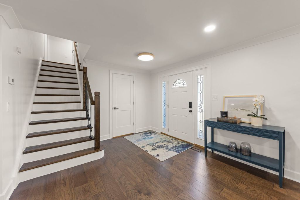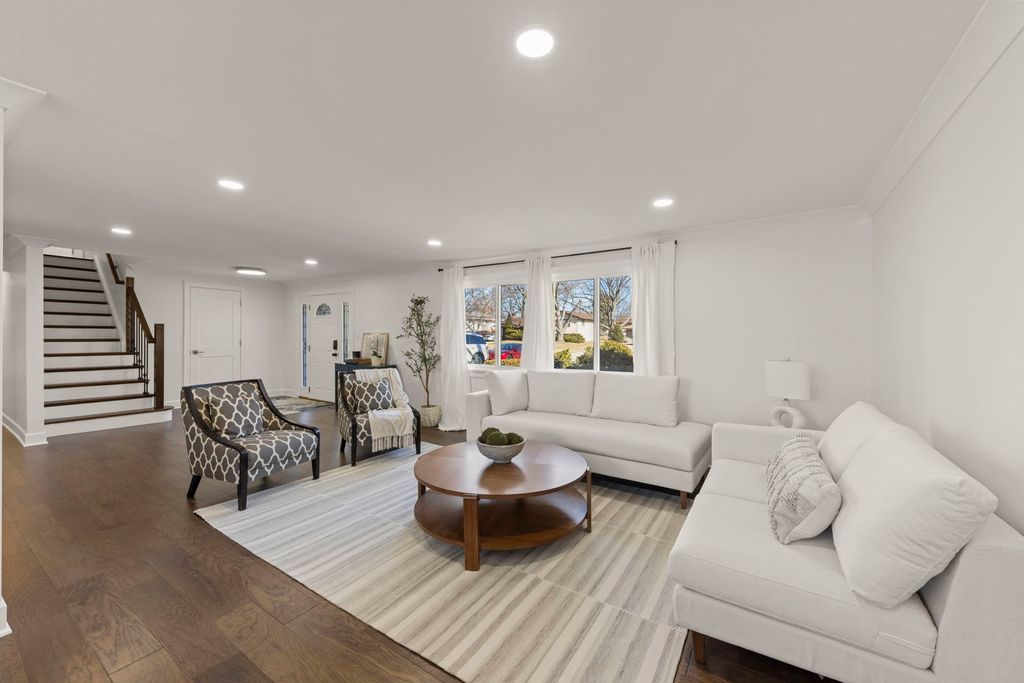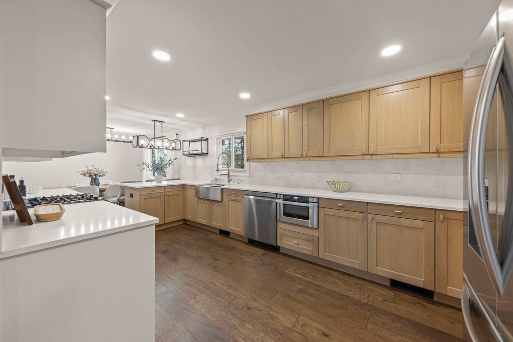 Located in the highly sought-after Weathersfield subdivision, this is one of the largest floor plans in the neighborhood, offering over 2,300 square feet, featuring 4 large bedrooms, and 2.5 baths! Foyers like this are rare in Schaumburg and this one immediately sets the tone. Spacious, welcoming, and functional! The living room is flooded with natural light from an oversized picture window and the entire home has been freshly painted in today's warm, modern tones, creating a bright yet calming space. The dining room flows seamlessly into a massive, chef's dream kitchen featuring beautiful white oak cabinetry, white quartz countertops, and an abundance of counter and storage space. This layout offers privacy where you want it, while still flowing effortlessly for entertaining. Down the hall, the family room features a statement fireplace with custom shelving and cabinetry on both sides and sliding doors that lead to and overlook the spacious backyard. Head upstairs to find all four bedrooms, generously sized, with real hardwood throughout the entire second level. The primary suite measures 14x18 and includes a large 11x7 walk-in closet with built-ins like the one you have saved on Pinterest. The bathroom features a dual sink vanity and an oversized walk-in shower. The remaining bedrooms are located down the hall and offer spacious closets. The 6x16 mudroom is another standout: loaded with cabinetry, shelving, and drop-zone function for everyday life! Located in sought after District 54/211 schools. Minutes to Atcher Island Waterpark, the Schaumburg Township Library, Prairie Center for the Arts, Spring Valley Nature Center, festivals, parks, rec centers, Woodfield Mall, Wintrust Field, expressways, and Metra. A true top to bottom transformation in one of Schaumburg's most loved neighborhoods. Unpack and move right in.