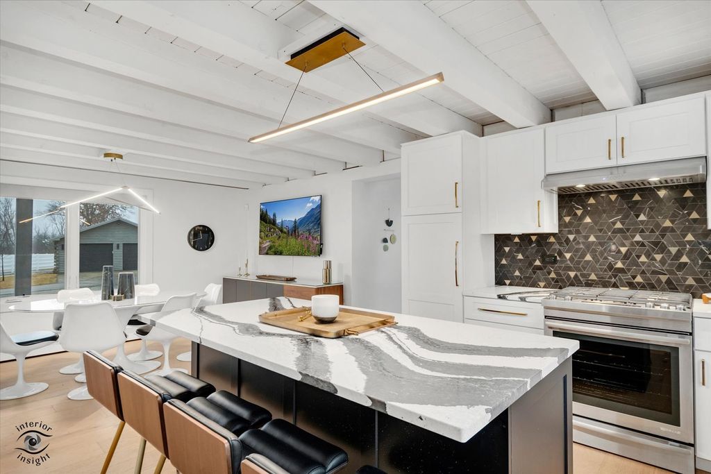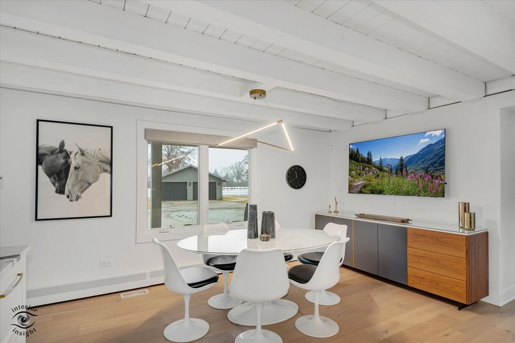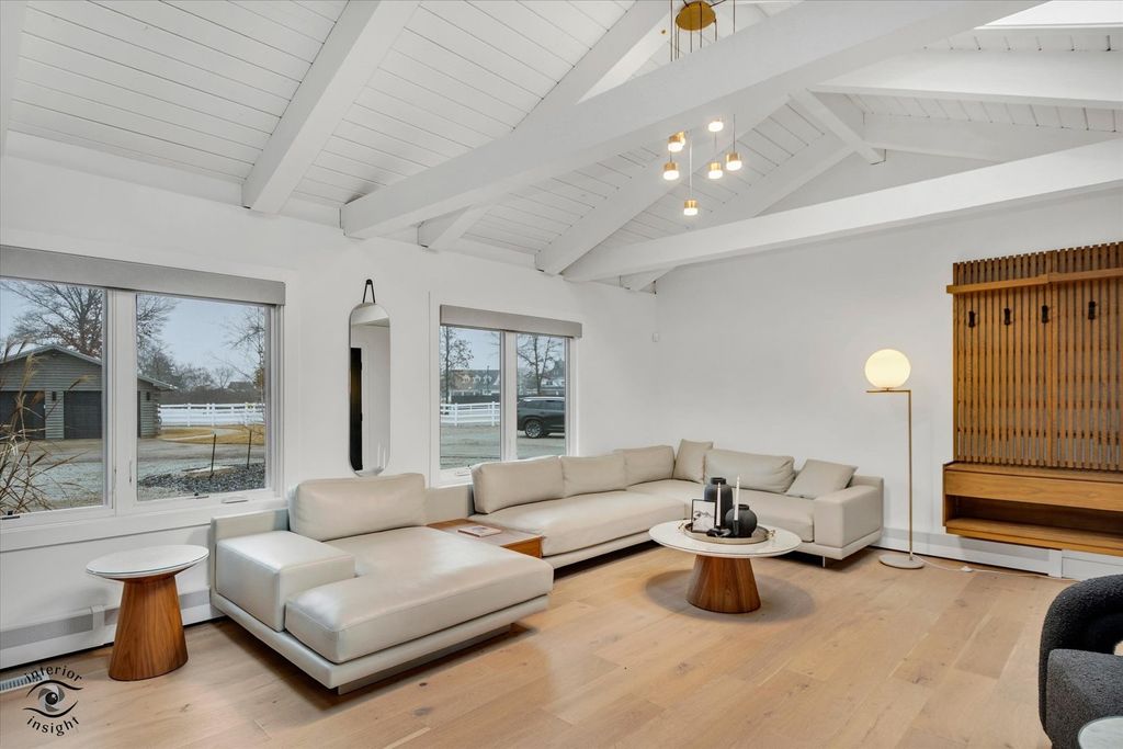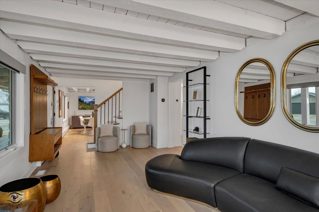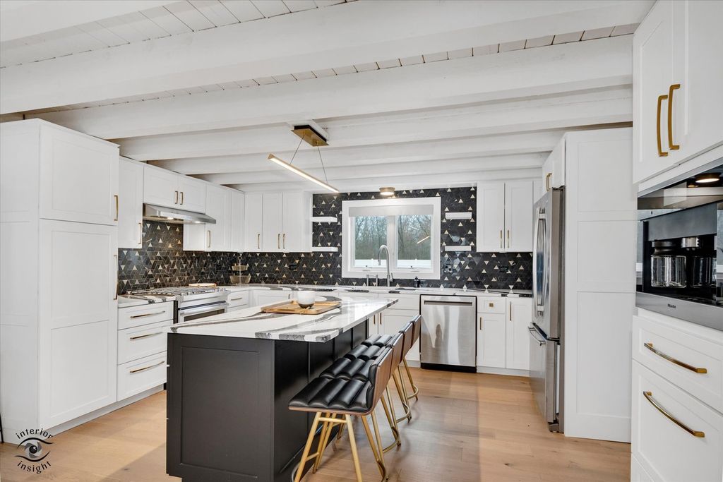 Your private estate awaits! Set behind a secure gate on 5 pristine acres, this fully renovated, move-in-ready log cabin home offers the perfect blend of luxury, privacy, and modern design. Renovated in 2022 for a family member and lightly lived in for less than one year, the home is in immaculate condition and includes like-new furnishings, Samsung smart TVs, intrusion system, sonos audio throughout exterior and pre-wired cameras. From the moment you arrive, the quality is evident with new professional landscaping, concrete walkways, and paver patios throughout the property. This exceptional estate features 4 bedrooms, 2.5 bathrooms, gorgeous light oak flooring throughout, a 40' x 24' pole barn, and a 2-car detached garage-both equipped with slatwall systems for optimal organization. The second floor offers three spacious bedrooms, including a stunning primary suite with a walk-in closet and a beautifully updated en-suite bathroom featuring a floating vanity, all-new fixtures, and a large walk-in shower. The additional bedrooms share a fully renovated bathroom with modern finishes. A new Mitsubishi mini-split system provides efficient cooling for the upper level. The main level is filled with natural light and offers a flexible 4th bedroom or office, a stylish powder room, and a welcoming living room. The show-stopping eat-in kitchen features quartz countertops, a designer backsplash, custom cabinetry, all-new JennAir and Whirlpool appliances, a built-in Miele coffee maker, oversized island with seating, and high-end lighting throughout. Just off the kitchen, the family room is anchored by a dramatic floor-to-ceiling Dekton fireplace. The adjacent sunroom, complete with heated floors, offers year-round enjoyment and overlooks the beautifully designed backyard. Step outside to a fully fenced yard featuring a large concrete patio, two additional seating areas, and a brick fire pit-perfect for entertaining. New concrete walkways connect the home to the pole barn and garage for added convenience. The finished basement with exterior access includes a spacious recreation room with polished concrete floors, custom built-in cabinetry, beverage bar with refrigerator and wine cooler, laundry room with plenty of cabinetry, and extensive storage with slatwall systems. Major updates completed in 2022 include the septic system, furnace and AC, roof, windows, bathrooms all brand new toilets, fixtures and flooring, electric window shades with remote control, water softener system, and all appliances-offering peace of mind for years to come. This exceptional, turnkey estate is truly a must-see.