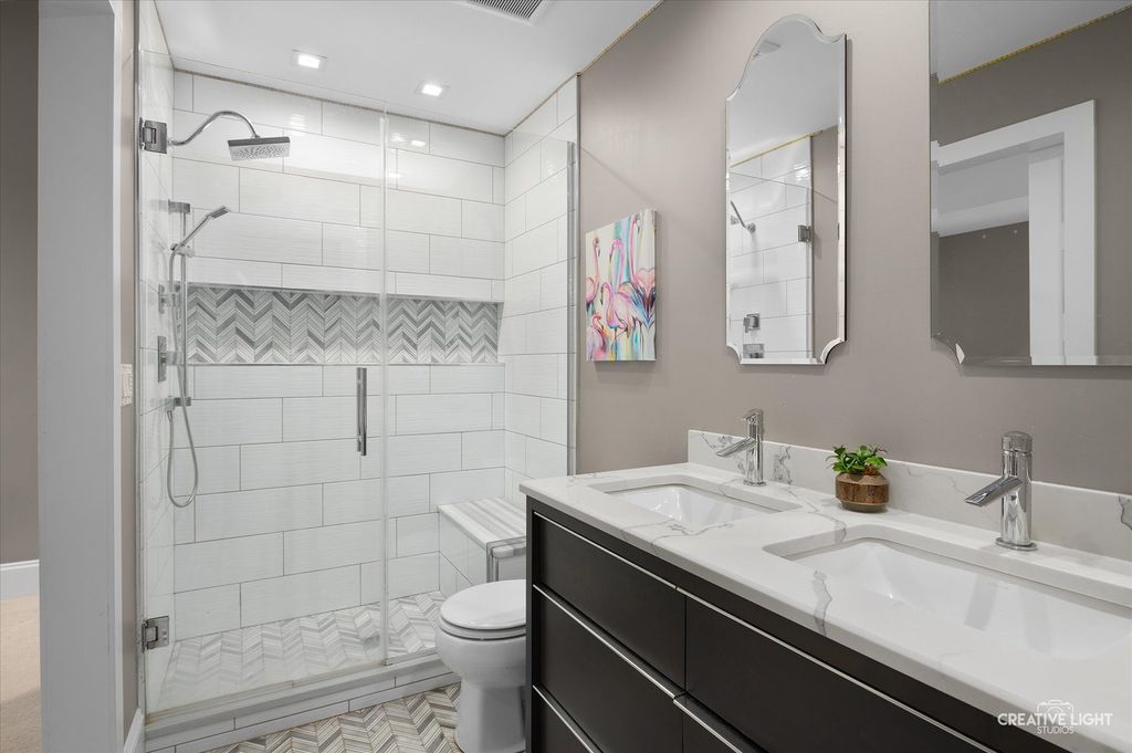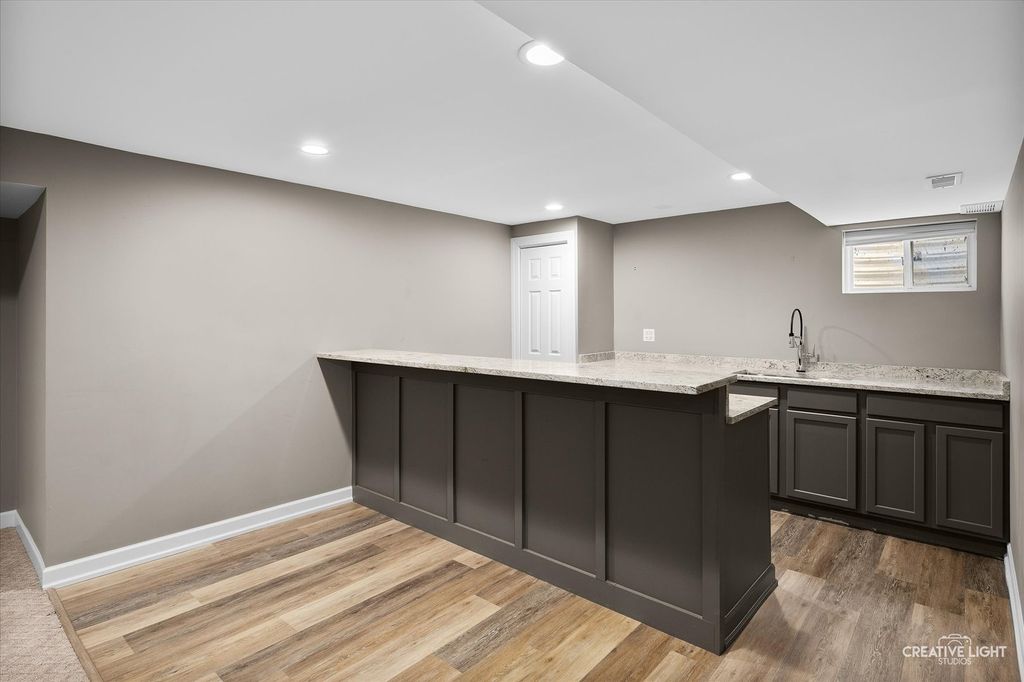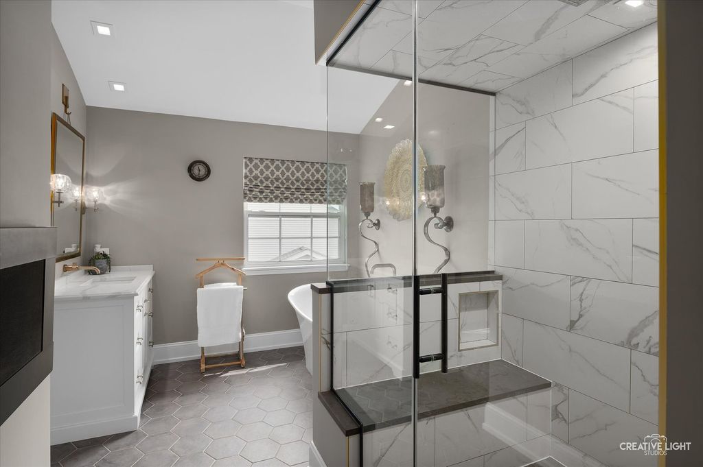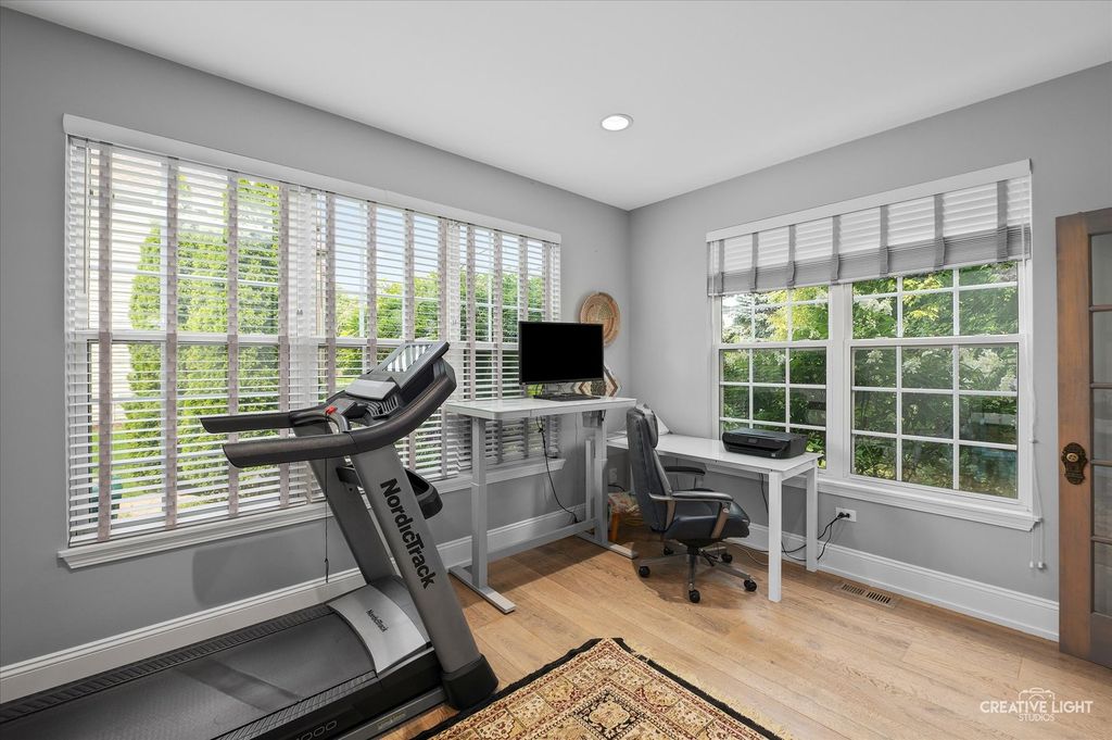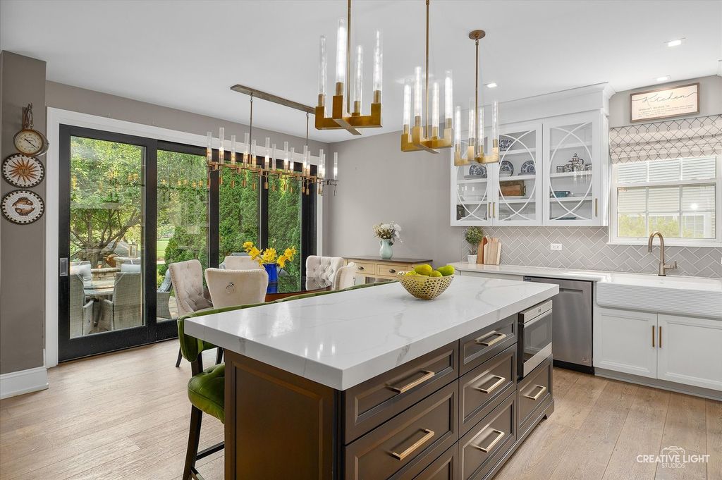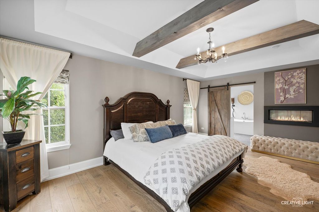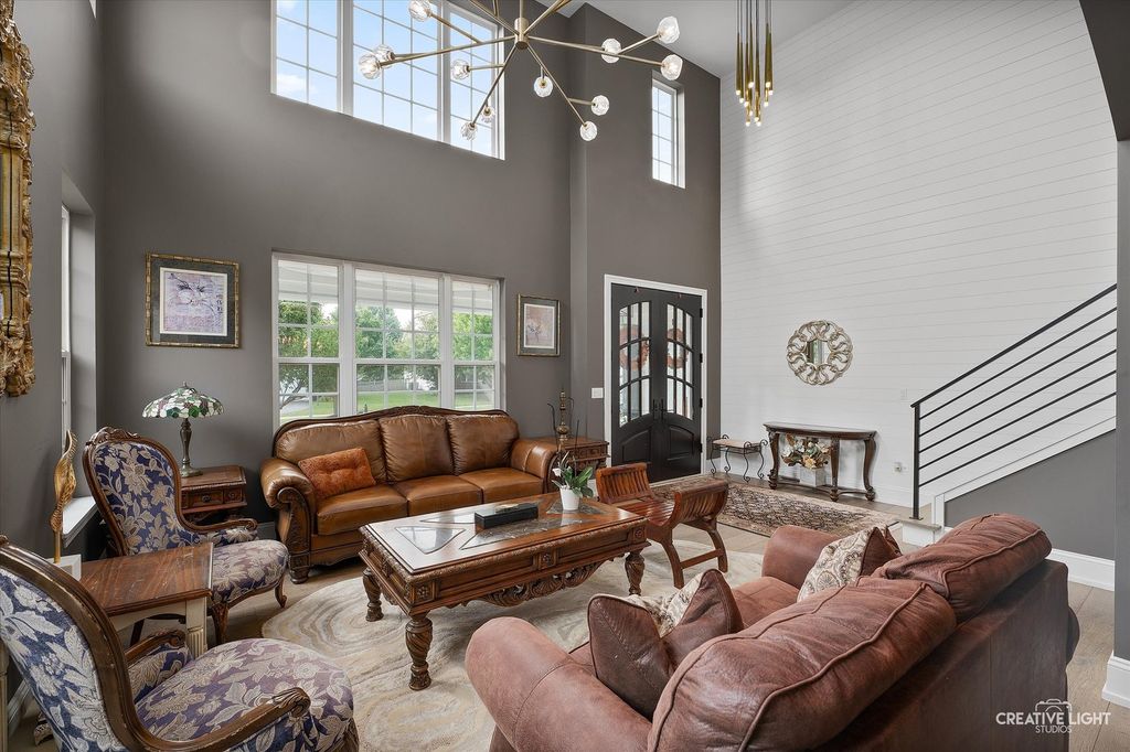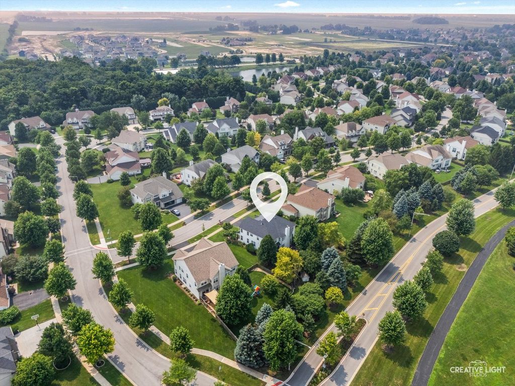 Welcome to refined living in the prestigious Grande Park community of Plainfield, Illinois. This exceptional 6-bedroom, 4.5-bath residence offers over 4,800 square feet of impeccably finished living space-3,237 square feet above grade plus an additional 1,499 square feet in the fully finished basement. Thoughtfully designed for both luxury and everyday functionality, this home showcases high-end finishes, timeless elegance, and a layout ideal for comfortable living and effortless entertaining. Step inside through custom front and sliding glass doors to discover a bright, open floor plan enhanced by rich, hand-scraped and waxed wide-plank white oak hardwood flooring throughout the main level. At the heart of the home, the gourmet kitchen impresses with quartz countertops, premium appliances, custom cabinetry, and an expansive center island perfect for gathering. A sun-drenched casual dining area and formal dining room provide versatile entertaining options, while the spacious family room-anchored by a cozy fireplace-creates an inviting atmosphere for relaxing evenings. A private, dedicated office offers an ideal work-from-home retreat or quiet study space. Upstairs, the luxurious primary suite serves as a true sanctuary. The spa-inspired bath features a steam shower, a high-end soaking tub designed to maintain water temperature for up to 90 minutes, and generous closet space. Four additional bedrooms are thoughtfully arranged, including a Jack-and-Jill bath shared by Bedrooms 3 and 4, and a well-appointed hall bath serving Bedrooms 1 and 2-perfectly accommodating family and guests. The fully finished basement expands your living space with a large recreation area, full bar with refrigerator, home theater or fitness area, a private sixth bedroom, and a full bath-ideal for entertaining, hosting overnight guests, or multi-generational living. Outdoors, enjoy your own private retreat. The professionally landscaped backyard features a custom stone patio with an elegant water feature, creating a serene setting for outdoor entertaining or peaceful evenings at home. A charming custom-built children's playhouse adds a whimsical touch for families. As a resident of Grande Park, you'll enjoy access to resort-style amenities, including a clubhouse, sparkling pool, scenic parks, and miles of walking trails-offering year-round opportunities for recreation, relaxation, and connection. Extensively updated between 2018 and 2023, with a new roof and siding installed in 2022, this home offers both beauty and peace of mind. With its expansive layout, sophisticated finishes, and prime location, this property is truly a standout. Don't miss the opportunity to experience the pinnacle of luxury living-schedule your showing today.
