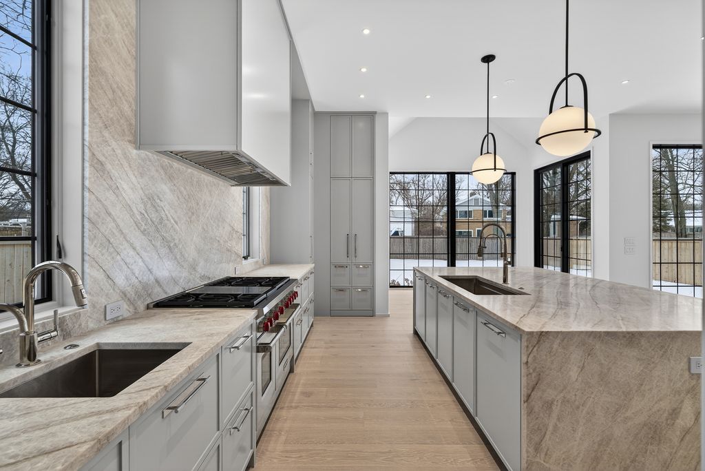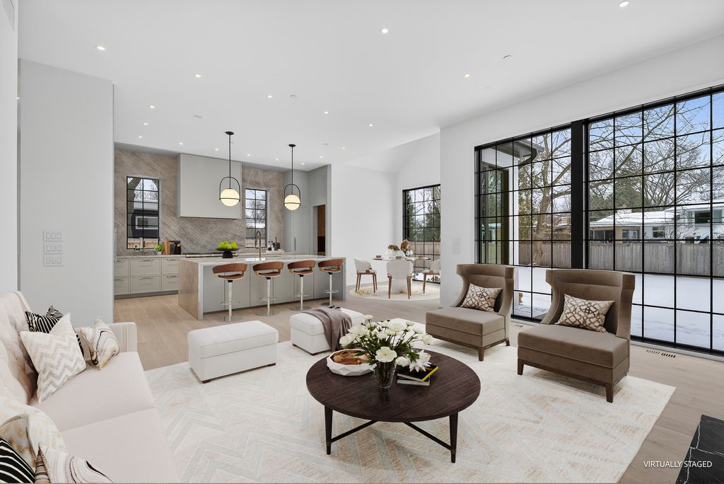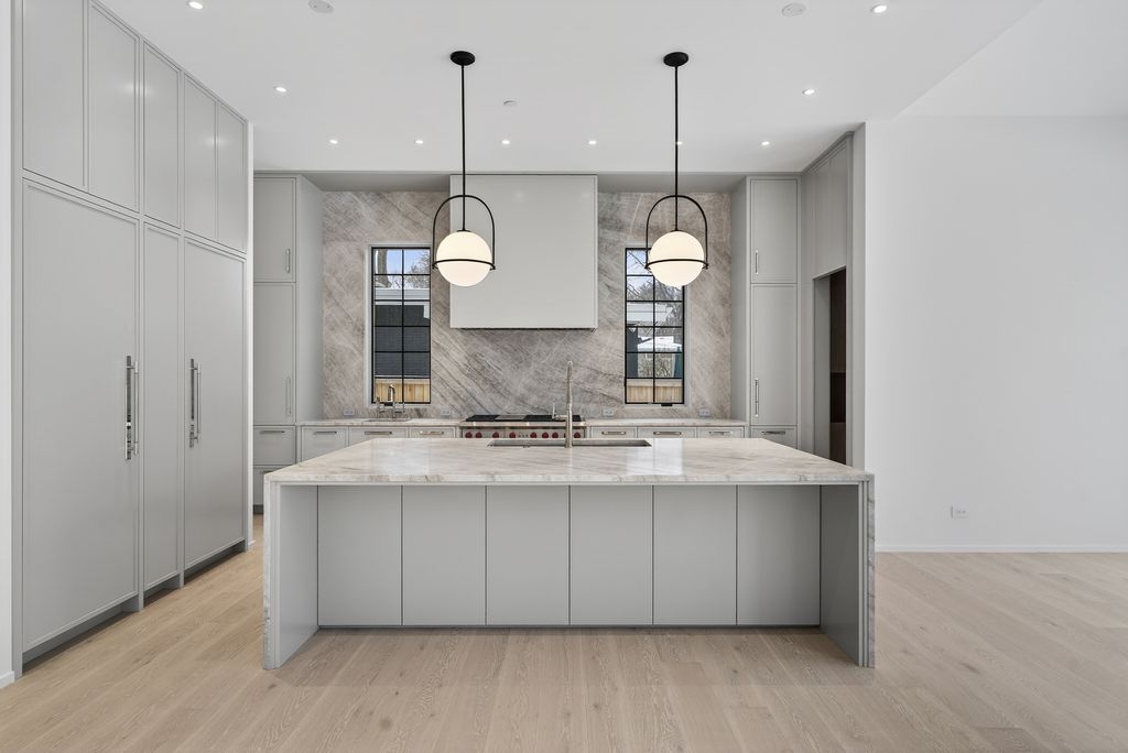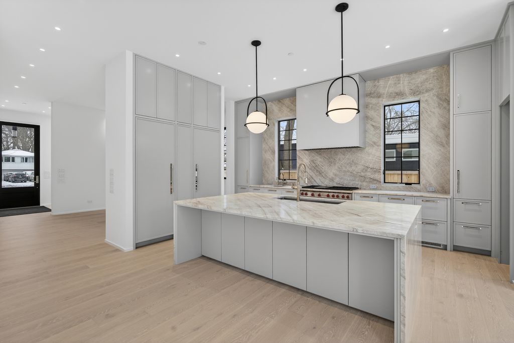 Completed and ready for immediate occupancy, this newly constructed architectural statement redefines modern North Shore living. Please checkout the virtual tour online. Conceived with a couture-level attention to detail, the residence is a study in proportion, light, and material-where every finish is intentional and every space evokes quiet sophistication. A soaring two-story foyer introduces a bespoke staircase framed by walls of glass, setting an unmistakable tone of refinement. Eleven-foot ceilings and expanses of windows flood the interiors with natural light, while the open floor plan unfolds with effortless grace-both dramatic and deeply livable. At its center, the kitchen is nothing short of gallery-worthy. An oversized island wrapped in leathered Taj Mahal quartzite anchors the space, paired with custom cabinetry and fully integrated Sub-Zero and Wolf appliances concealed behind seamless panels. It is a culinary environment designed as much for aesthetic impact as for performance. The primary suite is a private sanctuary-serene, indulgent, and reminiscent of a world-class retreat. A spa-inspired bath offers a tranquil escape, while secondary bedrooms, each with en-suite baths, provide elevated comfort and privacy. Every room reflects a curated palette and an unwavering commitment to craftsmanship. The lower level extends the living experience with 9'6" ceilings, Karndean soft white oak flooring, a masonry fireplace, recreation lounge, bespoke wet bar, and flexible space for wellness or work-an atmosphere equally suited for intimate evenings or vibrant gatherings. Set within the coveted community of Glencoe, residents enjoy access to pristine beaches, private clubs, scenic lagoons and trails, and the internationally celebrated Chicago Botanic Garden. This is more than a residence-it is a composition of art and architecture, a home that elevates daily life into an experience of enduring luxury.