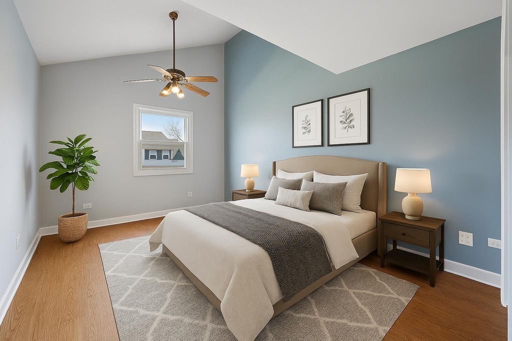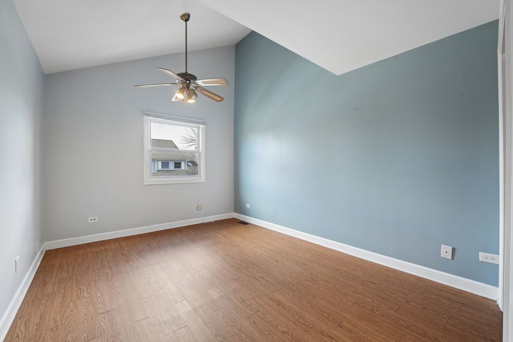 Welcome to this updated end-unit townhome in the heart of Orland Park! Featuring 3 BR's, 1 1/2 Baths, kitchen equipped with granite countertops, SS Maytag appliances, travertine floors, oak cabinets and a convenient first floor laundry closet. The main level has original hardwood floors throughout, stunning wood/gas fireplace with a gorgeous oak mantel and skylight!! The second level offers generously sized bedrooms with two vaulted ceilings. Primary bedroom comes with an ensuite bathroom, walk-in closet and access to the attic with upgraded lighting, flooring and shelving for easy storage. Fresh white wood trim throughout, solid wood panel doors, and new paint for a polished look. Relax on the private patio, enjoy the garden and nearby greenspace and pond. Take advantage of the path leading directly to Jewel-Osco or head over to Orland Square Mall, Marcus Theater and Centennial Park. Move-in ready and waiting for new owners!