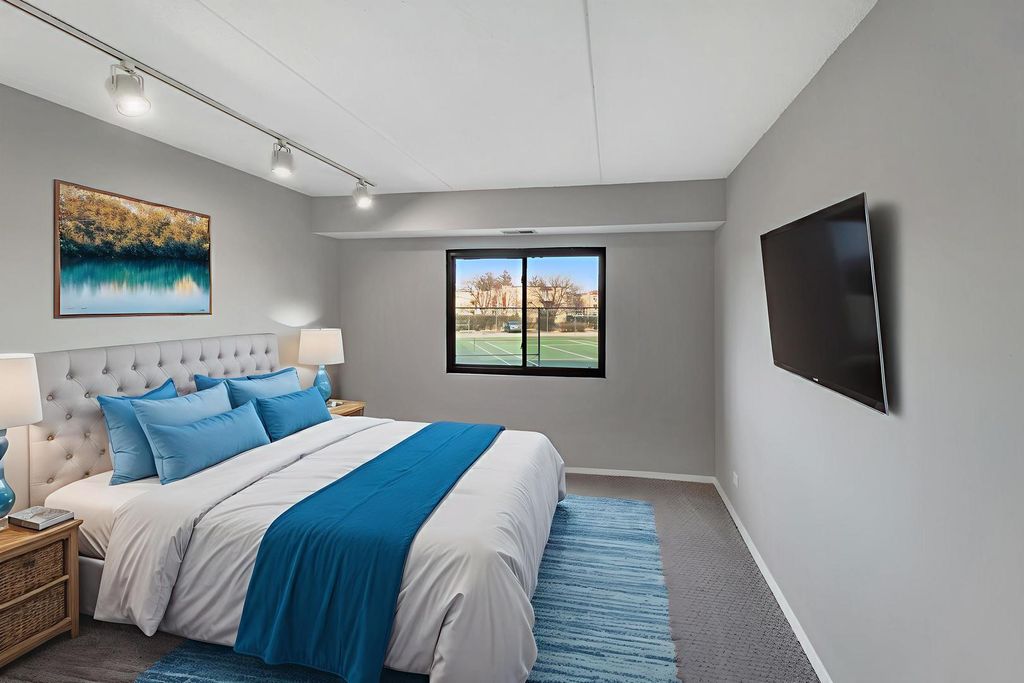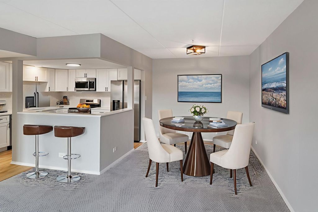 Looking for assistance? This home is IHDAccess Eligible for many buyers! This stunning, fully updated 2-bedroom, 2-bathroom condo at 375 Plum Creek Drive in Wheeling, IL, offers modern comfort in the desirable Plum Creek community. Completely refreshed with new flooring and fresh paint throughout, the home boasts a contemporary kitchen featuring white shaker cabinets, quartz countertops, stainless steel appliances, and a stylish tile backsplash, alongside beautifully renovated bathrooms with new vanities and flooring, plus new light fixtures everywhere for a bright, inviting feel. Residents enjoy an abundance of resort-style amenities, including a sparkling outdoor pool, tennis courts, clubhouse, exercise facility, and assigned garage parking with a storage area. Water is included. No gas in the building, heat and AC are electric. Built in 1979 with elevator access, this low-maintenance gem provides serene pond views common to the complex and convenient Wheeling location-perfect for relaxed, upscale living. Laundry is coin operated in the basement. please view the 360 tour and schedule your private showing today!