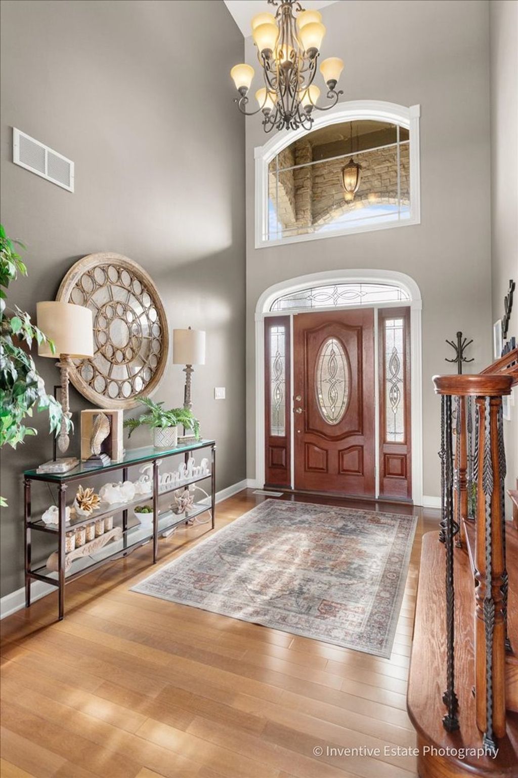 Country estate on 2 acres with gorgeous sweeping views in Oswego's Old Reserve. Architecturally designed and built with unique detail in every curve and corner of this open, custom-built dramatic home. The outdoor living areas feature beautiful pool with immense multiple brick paver patios, firepit, multiple conversation areas, and lighted eating area under the pergola. Imagine your entertaining possibilities centered around this outside paradise. Inside this open concept unique home, you will find incredible features. The spacious gourmet kitchen has large island, eating area, Butler's Pantry and a total Thermador kitchen with double oven, cooktop with touch button down draft and Thermador refrigerator. Magnificient 2 story living and family rooms, stunning stone fireplace. The laundry is expanded with lots of cabinets and folding space. First floor "Master Suite" to die for, has luxury bath with vaulted ceiling, large 14x8 closet, and airy and sunny attached gorgeous private sunroom for private views of pool and patio sunsets. Lovely hardwood staircase leads to mid level private, elegant large study boasting coffered ceiling and wainscoting. No detail left out as you continue upstairs. Unique "Juliet" balcony with wrought iron railings leads to four oversized upstairs bedrooms, each with walk-in closets and tray ceilings. Four and a half baths! Huge"WOW FACTOR" finished basement that has it all! Inviting curved bar, art nooks, dedicated theatre room, poker room, recreation room, and fabulous mirrored 2-story gym. Custom architectural details throughout, amazing millwork, tray/vaulted ceiling, and arches. Don't look for square rooms here in this designer home! Several stairways for all floors. Don't miss the oversized mechanic's dream 3-car garage with everything you could want including a pull-down compressed air hose. Organized, clean and with the professionally sealed floor seen in auto showrooms. Currently shown with a removable lift for an additional car. Garage even has access to basement. Custom designed and Professionally decorated in every beautiful room. Every room and every space is a one-of-a-kind, truly a place to call your forever home! Vistas to view, and deluxe indoor surroundings, you may Vacation at home in this fantastic retreat home!