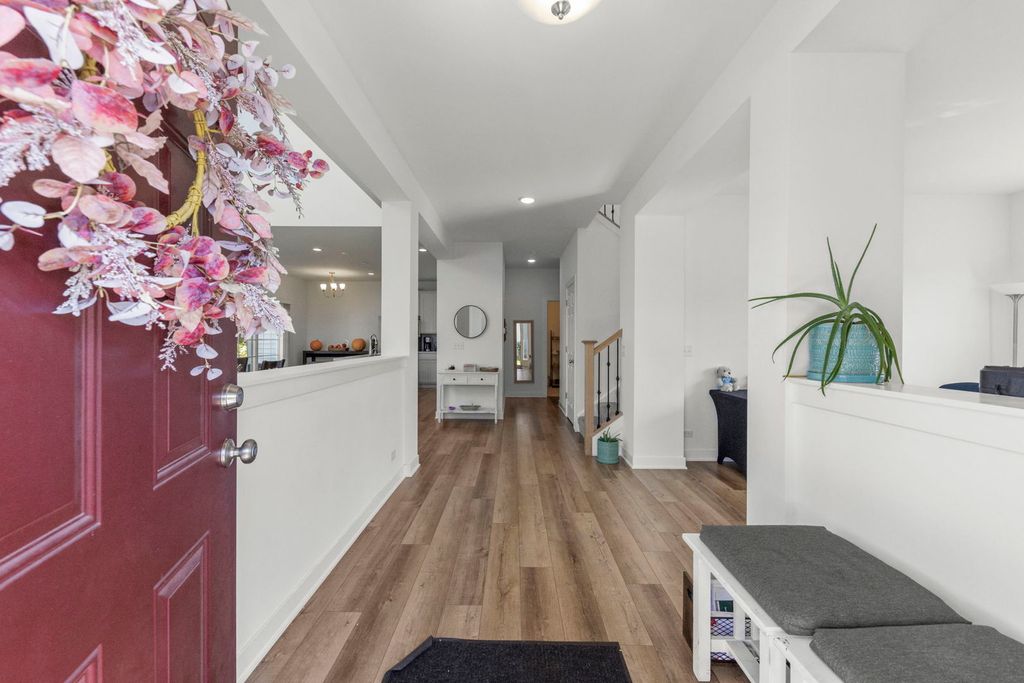 Welcome to 110 Easton Drive in Gilberts Town Center. A spacious 3-bedroom, 2.5-bath duplex built in 2022 that's move-in ready and available immediately. This home offers more than 2,000 sq. ft. of living space, featuring an open-concept main floor with a generous living room, dining area, and kitchen designed for everyday living. Upstairs, you'll find three comfortable bedrooms including a primary suite with walk-in closet and private bath. Additional highlights include a 2-car attached garage, a full basement ready to be finished, and an oversized lot providing room to enjoy the outdoors. The community HOA covers lawn care and snow removal, making for a true low-maintenance lifestyle. Located just minutes from I-90, Randall Road shopping and dining, and District 300 schools, this home offers convenience, space, and the peace of mind of recent construction. No sign outside of house