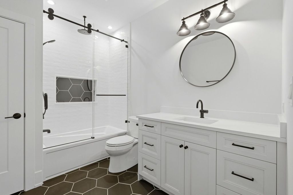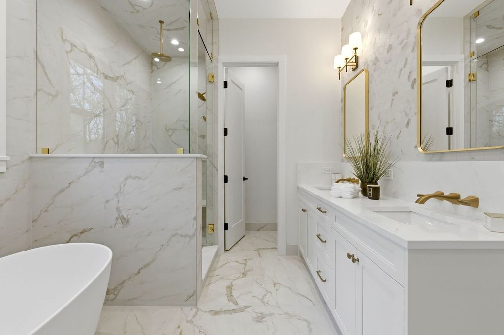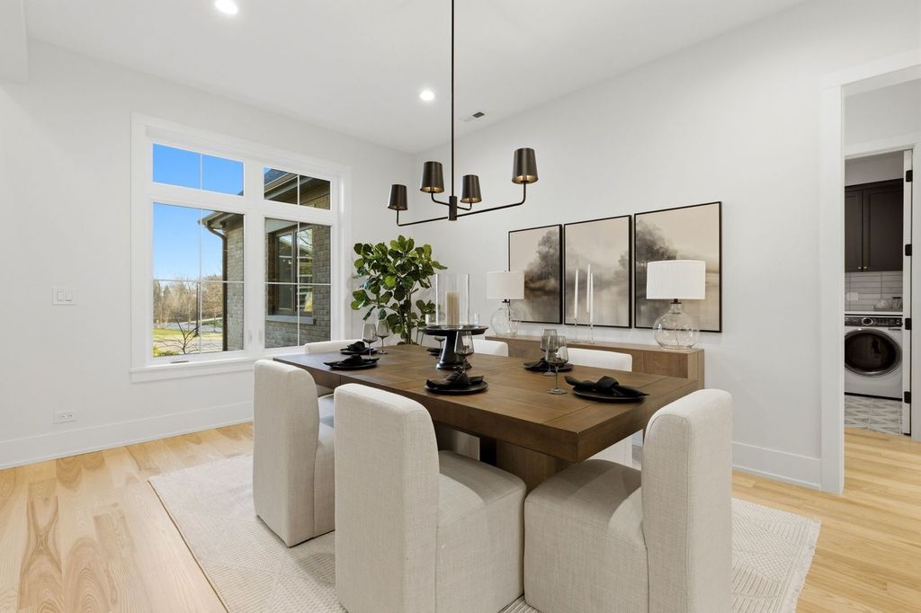 Exceptional new construction RANCH offering luxury finishes and a fully finished basement, all located in the prestigious gated community of Oak Bluff Estates. The thoughtfully designed main level blends everyday comfort with elevated entertaining. The primary suite features a spacious walk-in closet and spa-inspired bath complete with a floating soaking tub, double vanity, oversized shower and seating bench. The chef's kitchen with dedicated eating area flows seamlessly into the main living space and is complemented by a separate formal dining room - perfect for gatherings and special occasions. A private office provides an ideal work-from-home setup. Bedrooms two and three share a Jack-and-Jill bath with double-sink vanity. A separate second-floor bedroom with full bath offers ideal space for guests, related living, or a private retreat. Designed with functionality in mind, the home features two laundry rooms - one conveniently located on the main level and an additional laundry area in the finished basement. Two-zone heating and cooling ensure year-round comfort and efficiency. The fully finished lower level is built for both relaxation and entertaining, offering a private sauna, two additional bedrooms, full bath, movie theater area, wet bar, built-in speaker system, spacious second laundry room with utility sink, and abundant storage along with direct access to the garage. Outdoor living is just as impressive, featuring a covered patio perfect for year-round enjoyment, stamped concrete detailing, and a dedicated hot tub hookup - creating the ultimate space for entertaining or unwinding at the end of the day. Ideally situated just minutes away from top-rated schools and all the best Lemont has to offer!