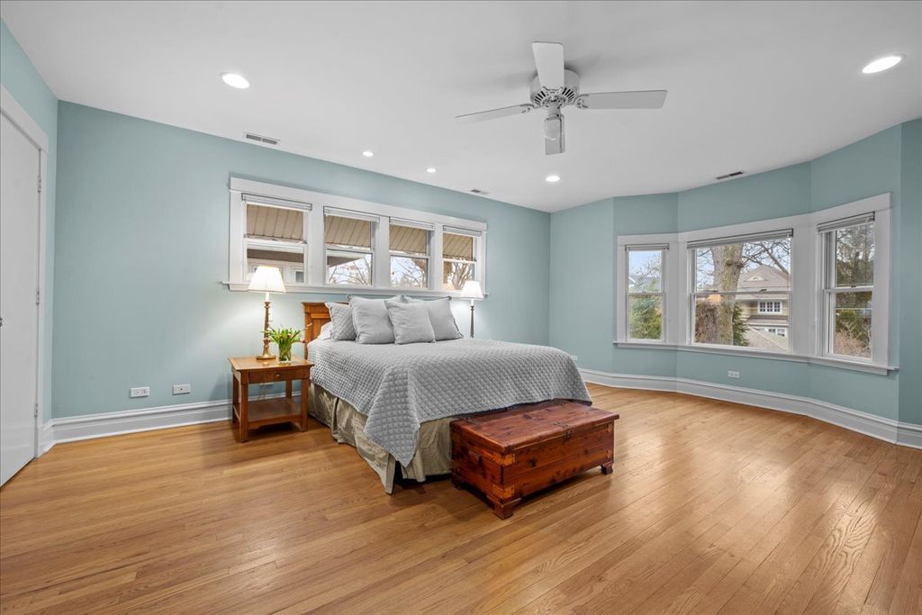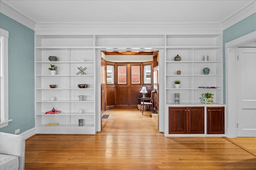 Charming East Wilmette home offering timeless character and an unbeatable walk-to-town and beach lifestyle! Watch the world go by from the expansive and inviting front porch...the perfect spot for morning coffee or evening gatherings. From the moment you step inside, the craftsmanship and architectural detail are undeniable. A stunning wood-paneled foyer with a grand staircase sets the tone, while the gracious living room with statement fireplace and floor/to-ceiling built-ins, flows seamlessly into the elegant dining room featuring a coffered ceiling and beautiful original built-in hutch. The circular first-floor layout is ideal for entertaining. A thoughtfully designed addition created the true hub of the home...an open kitchen and family room designed for today's lifestyle. Chefs will appreciate the custom cabinetry, abundance of storage, and newer refrigerator and double oven (2024). The kitchen/family room opens effortlessly to the sun-drenched flagstone and paver patio surrounded by lush, professionally landscaped grounds...perfect for outdoor entertaining and everyday enjoyment. The second floor offers a spacious primary suite with a large bath featuring a double vanity, marble shower, and linen closet. Three additional generously sized bedrooms and an updated hall bath with tub complete this level. The finished third floor provides wonderful flexibility with two additional rooms...ideal for a fifth bedroom, home office, guest space, creative studio, room to add a bathroom. The expansive finished lower level offers multiple living areas to suit your needs...recreation room, playroom, media space, fitness area...plus a separate additional rec room, full bath, and nicely sized laundry room. All of this in a prime East Wilmette location...just steps to the beach, downtown Wilmette's shops and restaurants, Metra train, and award-winning schools. This is more than a home...it's a lifestyle!