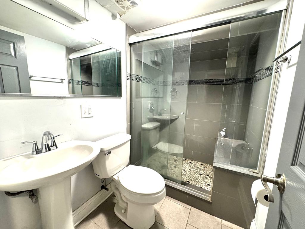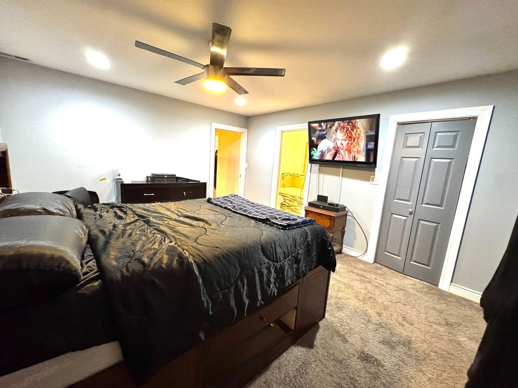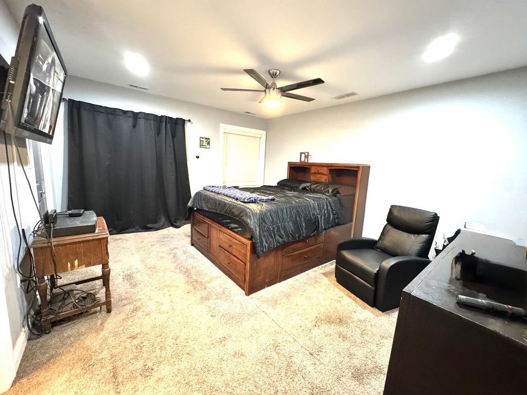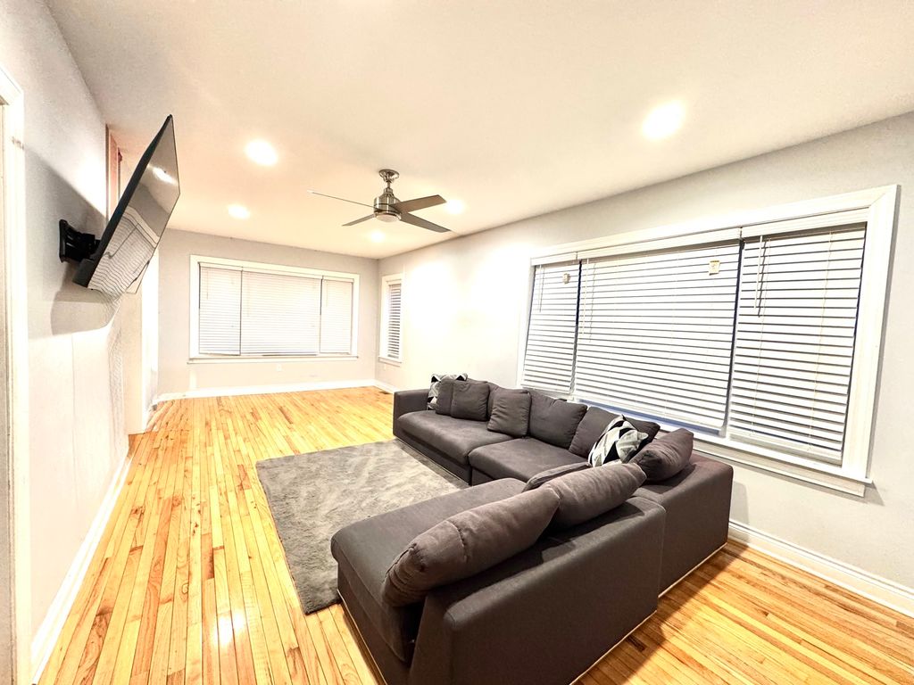 Welcome to 8544 S Essex Ave-an impressive 5-bedroom, 4-bath jumbo brick bungalow home offering over 3,500 sq ft across three finished levels, updated eight years ago and meticulously maintained. A gourmet kitchen with stainless steel appliances, abundant cabinetry, and a mix of quartz and granite countertops flows seamlessly into a sun-filled family room and out to a patio deck-perfect for everyday living and effortless entertaining. Thoughtful touches include high ceilings on the second level, keyless entry, digital thermostat, and USB outlet plugs in all rooms to keep everyone powered up. The expansive primary suite is a true retreat with double-sink vanity, separate glass shower, whirlpool tub, walk-in closet, and a private deck. The second level features three bedrooms and two full baths on the same floor, plus a second deck for fresh-air breaks. Need flexibility? Use the 4th or 5th bedroom as a home office, fitness room, or guest space. Each floor spans over 1,000 sq ft and includes a full bath for optimal convenience. The full, finished walkout basement extends your living space with an entertainer's wet bar, large recreation area, walk-in laundry room, a bedroom, and a full bath-ideal for movie nights, game days, or multigenerational living. Outside, enjoy a spacious yard and a 2.5-car garage. Set on a quiet block with easy highway access, this home delivers space, comfort, and value! Property SOLD AS-IS