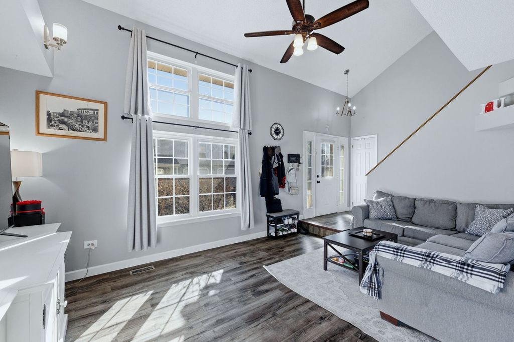 Don't miss this beautifully updated townhome nestled in the desirable Indian Oaks subdivision. From top to bottom, this home has been thoughtfully refreshed and is truly move-in ready! All you need to do is unpack. The main level immediately impresses with newer luxury vinyl plank flooring flowing throughout, fresh neutral paint, and all-new lighting fixtures that give the entire space a bright, modern feel. The living room is the centerpiece of the home, featuring soaring 16-foot vaulted ceilings that create an open, airy atmosphere perfect for both everyday living and entertaining. The kitchen has been enhanced with new under-cabinet lighting, adding both warmth and functionality. A convenient half bath, in-unit laundry (with pedestal bases), and garage access round out the main level, while a sliding door off the dining area opens to your private patio, ideal for morning coffee or evening gatherings. Upstairs, you'll find two generously sized bedrooms with newer carpeting in the 2nd bedroom. The master bedroom features a spacious walk-in closet and access to the shared full bath. The garage is a standout bonus. Finished with painted walls and modular floor tiles, it's a versatile space that works beautifully as a workshop, hobby room, or a polished home for your vehicle. Peace of mind comes built-in with major mechanicals already updated: the furnace and AC are roughly 6 years old and the water heater is roughly 3 years old. Beyond the front door, Bolingbrook delivers an exceptional lifestyle. Residents enjoy easy access to The Promenade Bolingbrook, an upscale outdoor shopping plaza with major retailers, diverse dining, and year-round events, as well as, Whalon Lake, Bolingbrook Golf Club, Pelican Harbor Aquatic Park, and the Illinois Aviation Museum. Commuters will appreciate convenient access to I-55 and I-355, with Metra stations a short drive away for a seamless connection to the Chicago Loop. This is a rare opportunity to own a fully updated home in one of Chicagoland's most beloved suburbs.