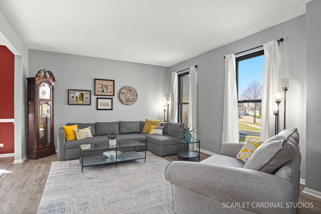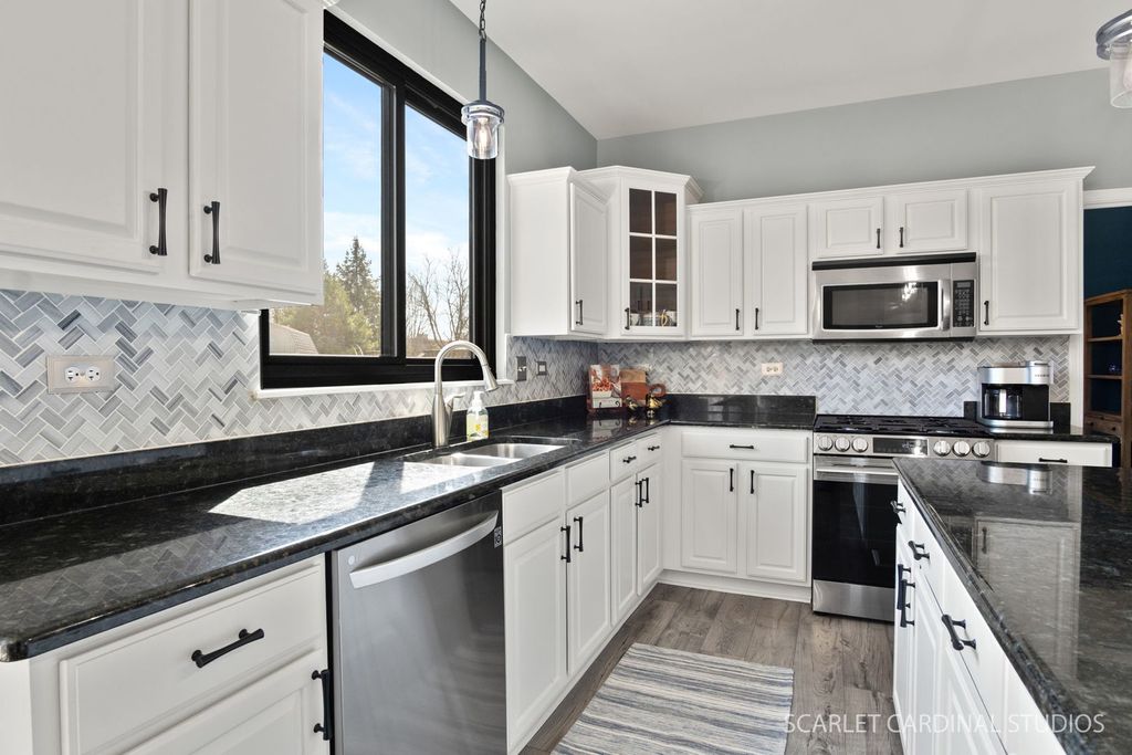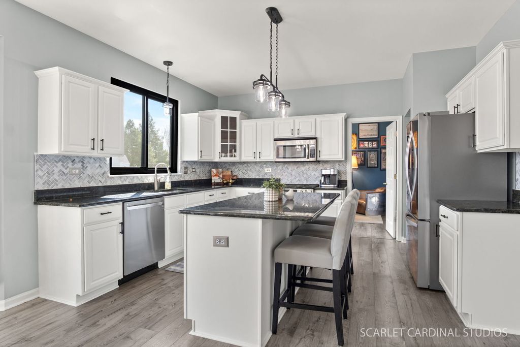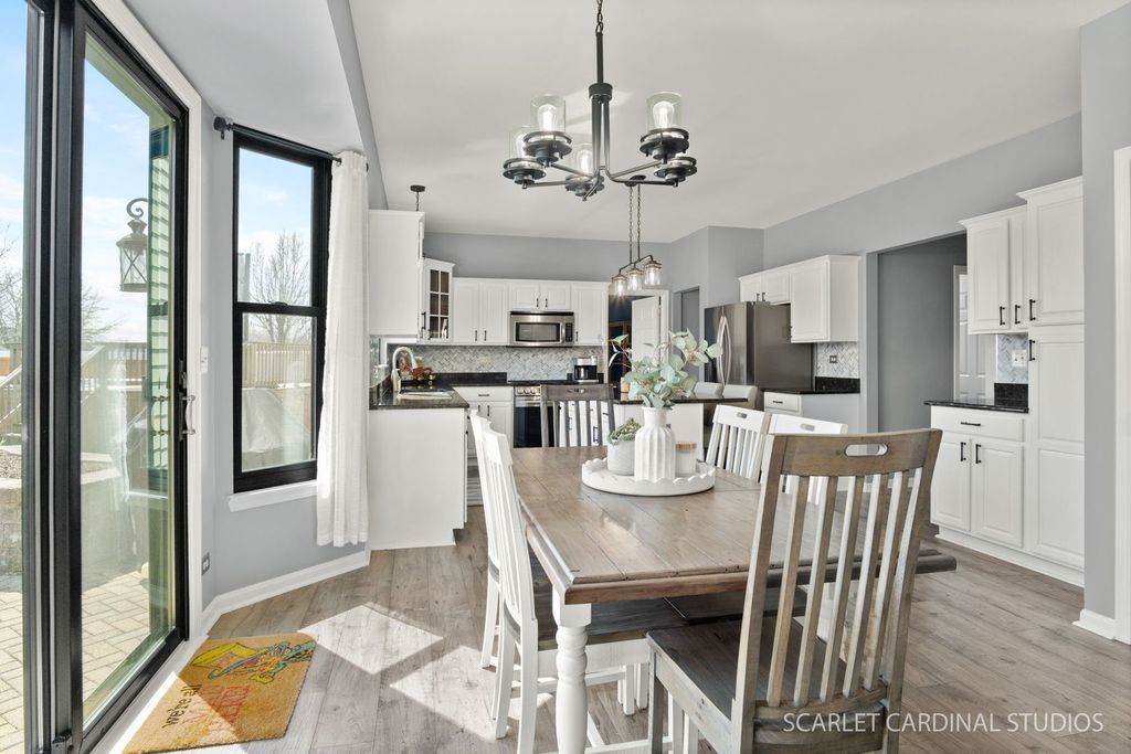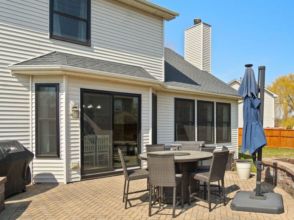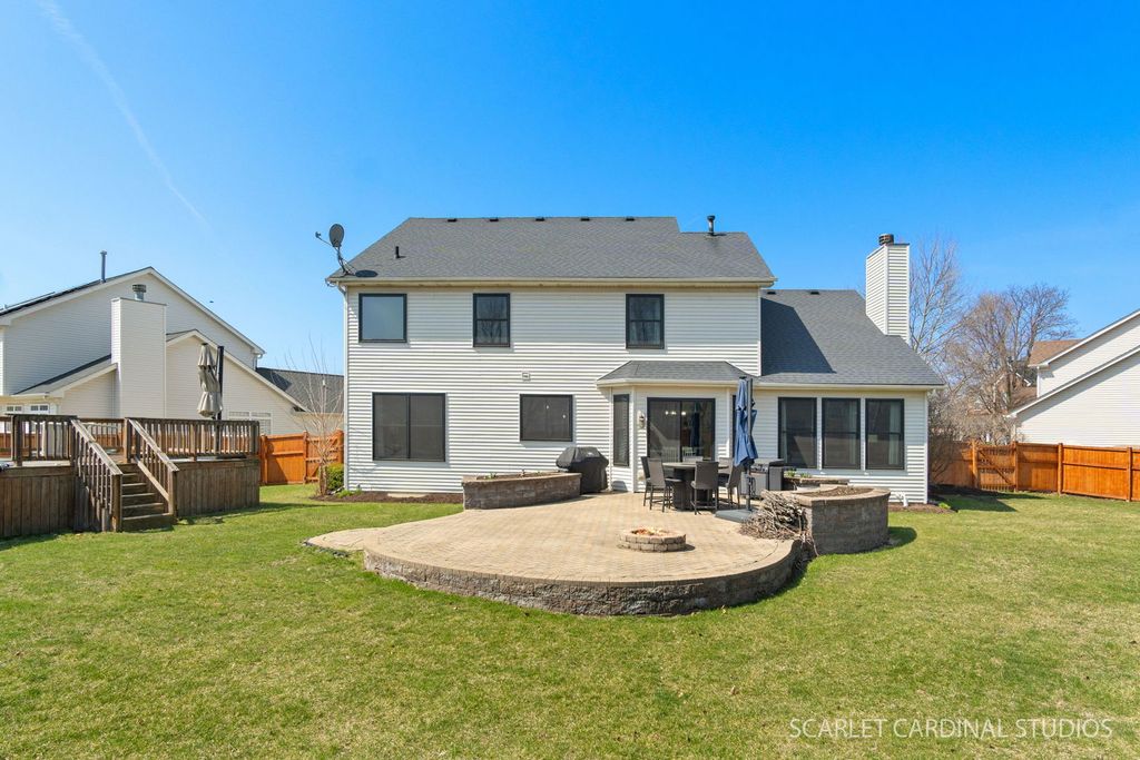 This is the one buyers wait for-and it might just be the largest model on one of the biggest lots in Barrington Ridge! Tucked into a prime cul-de-sac, this beautifully maintained home combines classic style with tons of updates and a bright, easygoing feel throughout. The main level features 9' ceilings, extra-wide stairways, and an open, airy layout with luxury vinyl plank flooring and fresher, modern paint. The kitchen is a total crowd-pleaser with dark granite countertops, loads of white cabinetry, a center island perfect for everyday life, newer stainless steel appliances, and a spacious eat-in area overlooking the backyard. It opens right into the dramatic yet cozy family room with a cathedral ceiling and a stunning floor-to-ceiling stone fireplace. You'll also find formal living and dining rooms for entertaining, plus a private first-floor office tucked behind French doors. An updated powder room and a super convenient laundry/mudroom round out the main level. Upstairs, you'll love the newer plush carpet throughout. The oversized primary suite features vaulted ceilings, a custom walk-in closet, and an updated bath with refreshed finishes. The additional bedrooms are generously sized with upgraded closet systems and share a stylish hall bath. And don't miss the charming reading nook at the top of the stairs-such a fun bonus space! The finished basement adds even more flexibility with a private fifth bedroom and full bath (perfect for guests), a large rec area, and a great bar hangout space. Big-ticket updates include oversized Andersen windows, a newer sump pump with battery backup, newer appliances (including refrigerator, washer, and dryer), updated fixtures, and smart home features like the thermostat, doorbell, and lighting. Out back, your fully fenced yard is ready for summer with a paver patio, built-in planters, storage shed, and a pool with a newer heater and pump. The thoughtfully planted gardens bring beautiful color all season long with tulips, daylilies, and hydrangeas. With a three-car garage, tons of storage, and true pride of ownership throughout, this home checks all the boxes. Too many updates to list-be sure to check the "Additional Information" tab for all the details. Great location close to parks, schools (Oswego Community Unit School District 308), shopping, dining, and easy access to Rt. 34, 59, and 30-giving you that perfect mix of quiet neighborhood living and everyday convenience. Don't miss your shot at one of the standout homes in the subdivision!