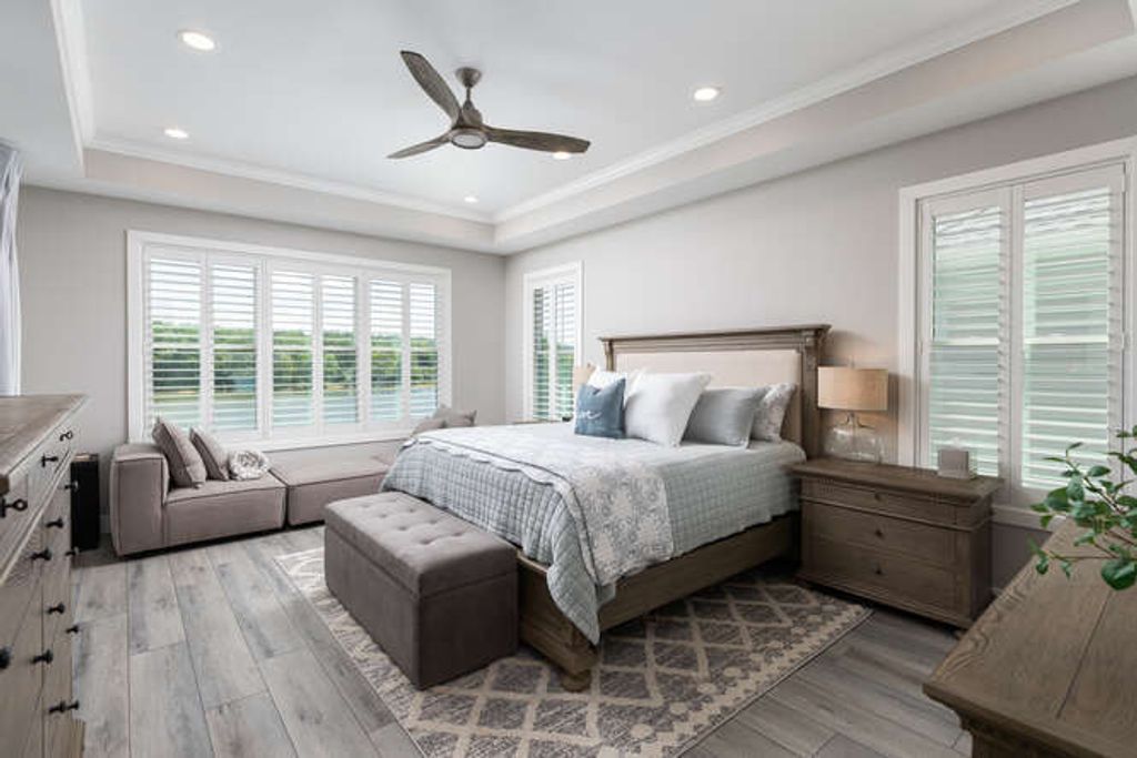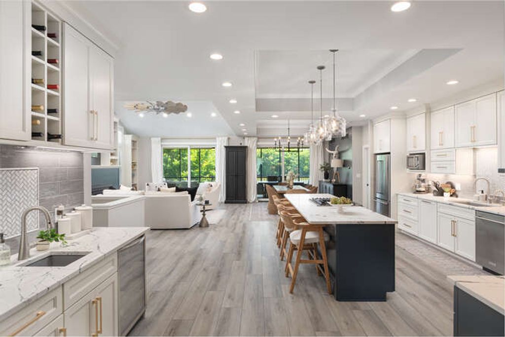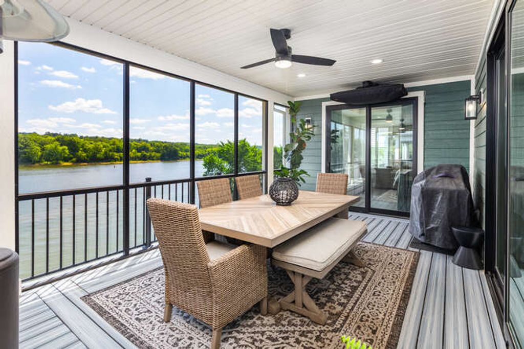Welcome to refined riverfront living in the heart of Heritage Harbor, where timeless design meets resort-style luxury along the scenic shores of the Illinois River. Perfectly positioned to capture sweeping water views, this extraordinary ranch home with a finished walkout basement offers front-row vistas of the marina from your inviting front porch and panoramic river views from the screened-in porch and stamped concrete patio. Mornings begin with coffee overlooking the harbor; evenings end under a canopy of stars as barges drift quietly by. The front porch sets the tone with custom brick-pattern concrete and stately custom columns-an elegant welcome to what lies beyond. Step inside and a dramatic two-story entry unfolds, illuminated by a stunning light tunnel that fills the space with natural brilliance. Designed with impeccable attention to detail, the main level showcases custom cabinetry throughout. Built-in bookshelves and charming window seats frame the fireplace in the great room, creating a warm yet sophisticated gathering space. The gourmet kitchen is a true showpiece, featuring a large quartz-topped island, designer tile backsplash, high-end appliances, and a stylish coffee bar. A built-in bench and hooks accent the mudroom, while the first-floor laundry includes custom cabinetry and a utility sink for convenience. The dining room's tray ceiling adds architectural elegance, and sliding glass doors from both the dining area and great room open seamlessly to a screened-in outdoor living and dining retreat. The luxurious primary suite is a private sanctuary with two custom walk-in closets and direct access to the screened porch for peaceful mornings overlooking the river. The spa-inspired bath offers a double vanity and an impressive two-person, floor-to-ceiling tiled shower. A heated three-car garage with epoxy floors and pull-down attic access ensures both comfort and storage are never compromised. Downstairs, the finished walkout basement expands your living and entertaining possibilities. A spacious third bedroom with bun beds enjoys its own private bath. A full wet bar opens to an expansive recreation room and additional family room anchored by a second fireplace-ideal for hosting gatherings year-round. Step outside to the stamped concrete patio, the perfect setting for a hot tub as you relax beneath open skies and take in tranquil river views. One of the home's most distinctive features is the one-of-a-kind Harbor Life Room-a versatile, inspired space with private bath and closet, plus direct outdoor access. Whether envisioned as an entertainer's lounge, fitness studio, hobby retreat, children's game room, kayak room or it can be easily converted to a fourth bedroom, this flexible space adapts beautifully to your lifestyle. Additional premium features include a tankless water heater and whole-house humidifier, reflecting the thoughtful quality found throughout. Meticulously maintained and designed for both comfort and sophistication, this exceptional residence offers the ultimate blend of luxury, leisure, and location-just 15 minutes from the breathtaking trails and canyons of Starved Rock State Park. This is more than a home. It is riverfront living at its finest