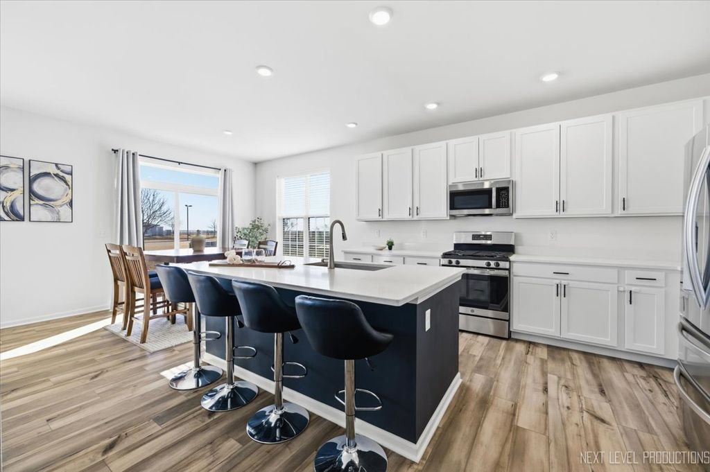 Welcome home to this LIKE NEW 2023 built home in Yorkville's Raintree Village, featuring a pool and clubhouse community with parks, paths, middle school, sports fields, and all this community has to offer! Why build when you can own this meticulously maintained beautiful home with an included builder structural warranty. This oasis features an airy foyer opening to your double-story living and dining room, setting the scene into your refined and comfortable open-concept family room and kitchen. This space includes a breakfast area and thoughtfully designed kitchen showcasing an expansive quartz island with Aristokraft 42" cabinetry and stainless steel appliances. Beaming natural light throughout! Step outside to your new cement patio overlooking a private back exterior and middle school, park, and sports fields from beyond. Enjoy nine-foot ceilings, spacious laundry room, main level bonus room, four generously sized bedrooms and a must have owner's suite! This retreat includes two separate step-in closets, and spa-like bath. Full basement, insulated and ready for your finishing touches. Enjoy the lovely town charm, Fox River, shops, dining, premiere schools, and all that Yorkville has to provide! Contact me today for your private showing. Happy to Help!