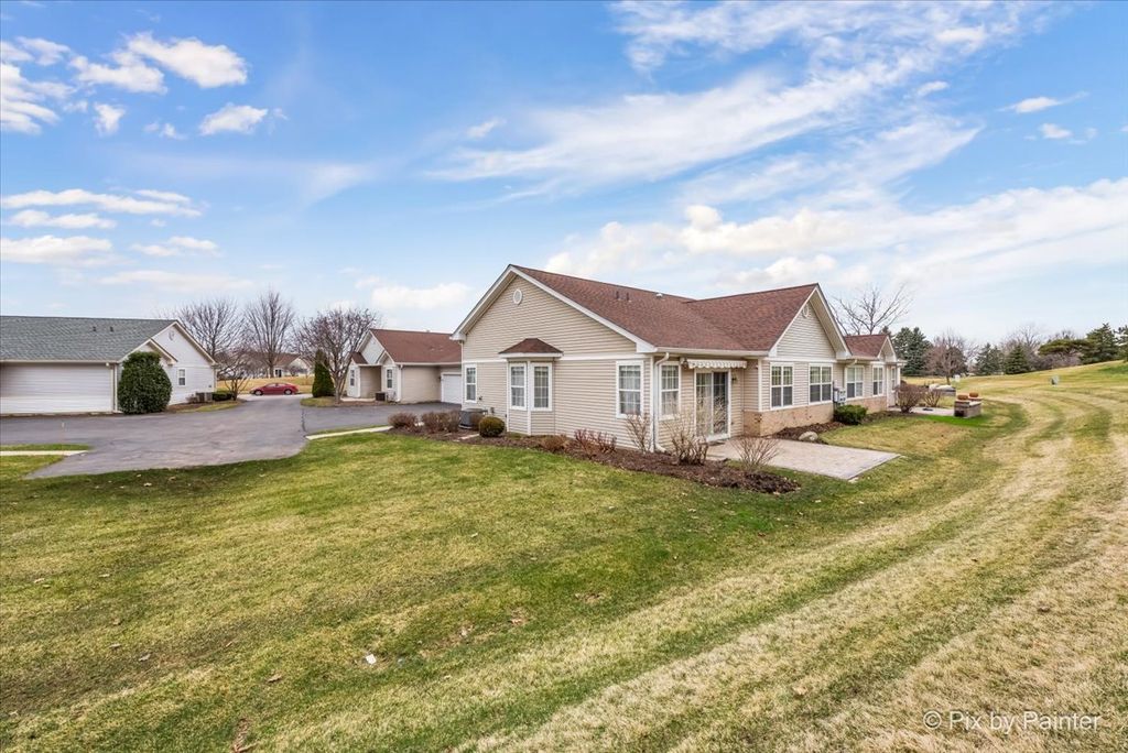 Welcome to EASY, LOW-MAINTENANCE LIVING in DEL WEBB HUNTLEY, one of Huntley's most sought-after 55+ ACTIVE ADULT COMMUNITIES. This well-maintained 2 BEDROOM + DEN TOWNHOME offers a COMFORTABLE, FUNCTIONAL LAYOUT with thoughtful updates already completed so you can move in with confidence. MAJOR MECHANICALS HAVE BEEN UPDATED, INCLUDING ROOF & GUTTERS (LESS THAN 1 YEAR), A/C (2025), AND NEWER HOT WATER HEATER, helping reduce future expenses and providing peace of mind. The kitchen features NEWER STAINLESS STEEL APPLIANCES and opens to the main living space, creating an easy flow for everyday living and entertaining. You'll appreciate the WALK-IN SHOWER, CUSTOM PRIMARY CLOSET ORGANIZER, and ABUNDANT STORAGE, including ADDED GARAGE SHELVING for practical organization. Fresh updates include NEW CARPET IN THE LIVING ROOM & HALLWAY AND FRESH PAINT, giving the home a clean, MOVE-IN READY feel. The EXTENDED PATIO WITH RETRACTABLE AWNING offers a comfortable outdoor space to relax, whether enjoying a quiet morning or hosting guests. The DEN provides flexibility for a home office, hobby room, or additional living space. Located in DEL WEBB HUNTLEY, a premier 55+ COMMUNITY IN HUNTLEY IL, residents enjoy access to AMENITIES, WALKING PATHS, CLUBHOUSE ACTIVITIES, AND A LOW-MAINTENANCE LIFESTYLE designed for convenience and connection. Ideal for those looking to RIGHTSIZE IN HUNTLEY while avoiding the hassle of major projects or ongoing upkeep.