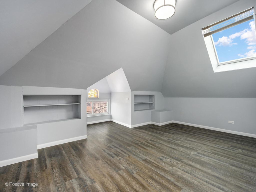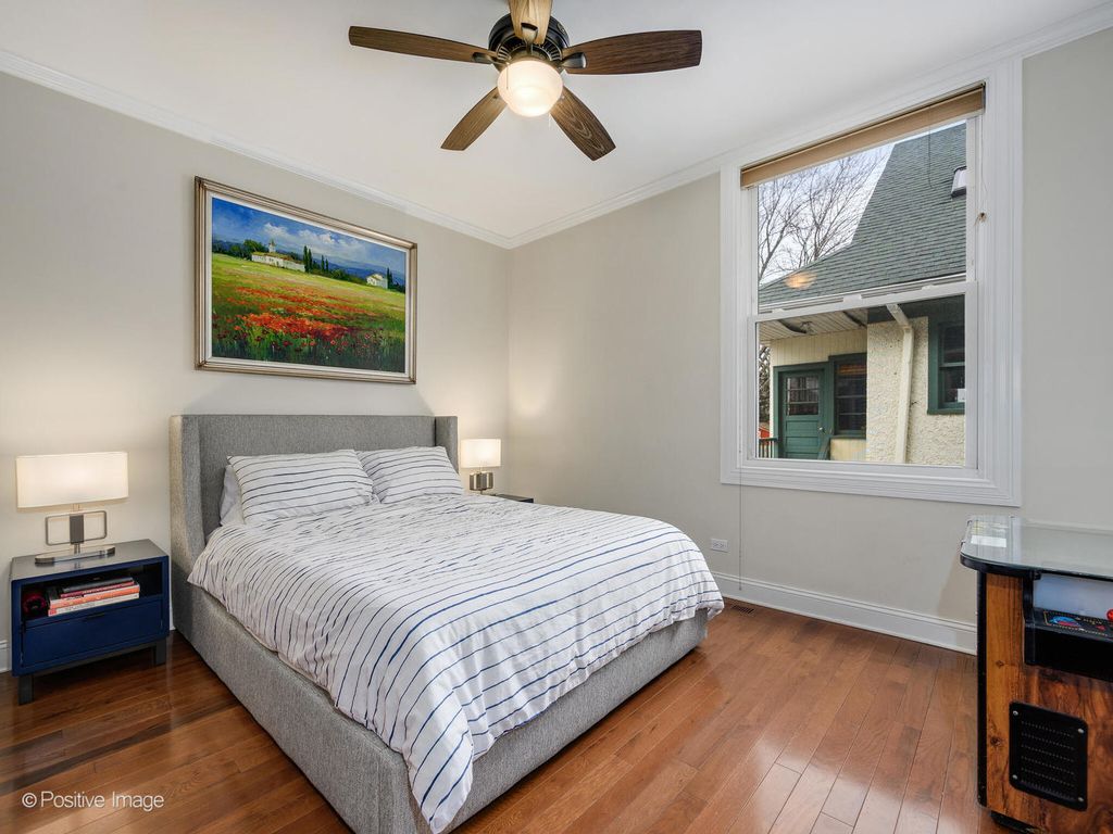 Situated in the heart of Oak Park, this beautifully renovated, 5-bedroom, 3.1-bath classic American Foursquare home blends timeless charm with modern functionality. Thoughtfully redesigned over the past decade, the home is filled with natural light from abundant windows and offers an ideal layout for both everyday living and entertaining. The welcoming covered porch leads into a gracious first floor foyer with an open staircase leading to the basement and second level. The bright, front living and dining rooms with abundant windows flow seamlessly into a well-appointed kitchen boasting generous cherry cabinetry, granite countertops, a peninsula for casual dining, and stainless-steel appliances. Tucked discreetly off the kitchen, a versatile family room provides exceptional flexibility. A standout feature of the home is its two primary suite options. The first-floor suite offers a private ensuite bath, making it an ideal guest retreat, while a second expansive primary suite awaits on the upper level. A convenient powder room and private, home office completes the main level. Upstairs, a charming loft with built-in bench and storage creates a stylish landing space for reading or playtime. Two spacious bedrooms with excellent closet space share a large, updated hall bath. The rear primary suite impresses with a luxurious bath featuring dual vanities, a generous walk-in shower, a separate soaking tub, and a custom walk-in closet with built-ins and second-floor laundry. A pull-down staircase with space for a potential permanent option, leads to a 3rd level, finished attic hideaway - ideal for creative use or clean storage. The walkout basement adds even more living space, including a large rec / playroom, summer kitchen / 2nd laundry room, a 5th potential bedroom / exercise room, extensive storage areas - in-law suite? Outdoor living is equally inviting, with a deck off the family room leading to a large, newly fenced, professionally landscaped backyard with new Unilock paver patio on a rare 50-foot-wide lot - perfect for entertaining, gardening, or relaxing. A spacious 2 car garage has been newly updated for electric car charging, and a private parking pad complete the property. So many cosmetic and utility updates throughout including a new tear-off roof and updated water service, provide added peace of mind. Enjoy an unbeatable location close to FoxCenter - rec. & play park, near downtown, the train, cafes, grocery, and more. Wow!