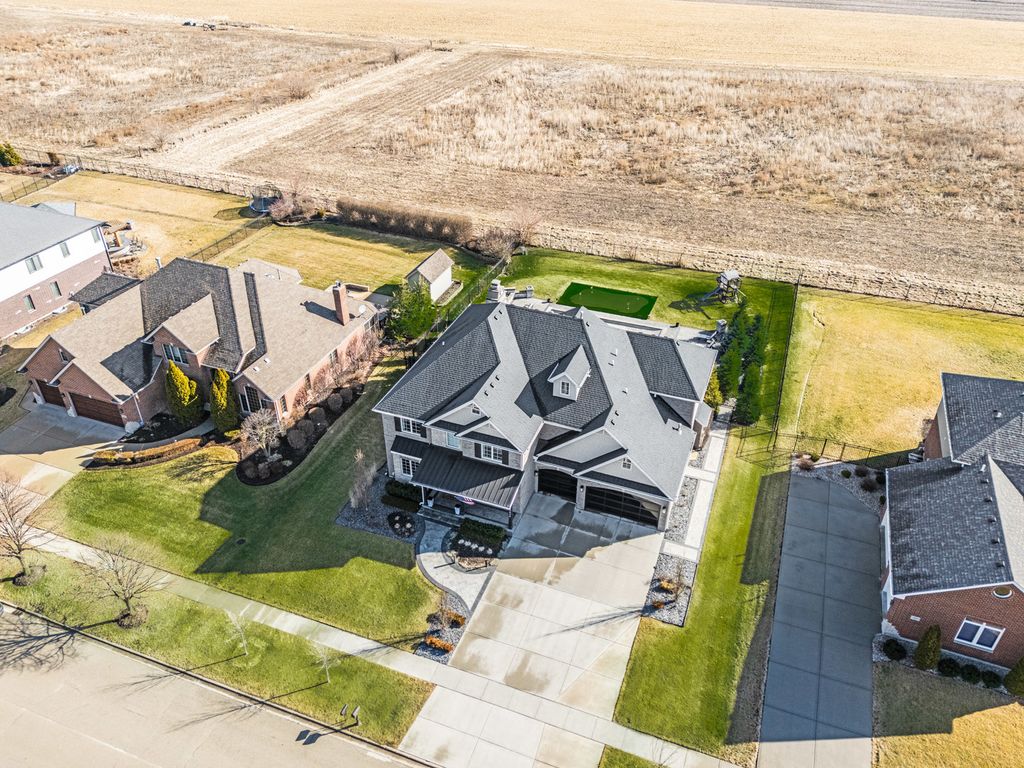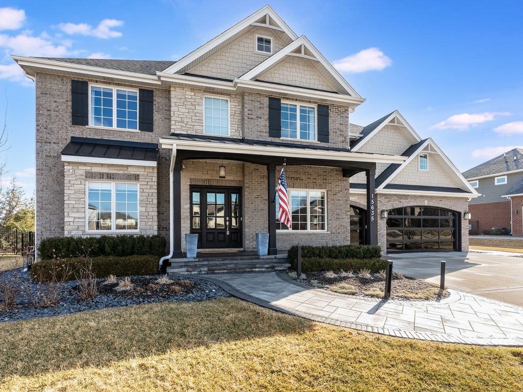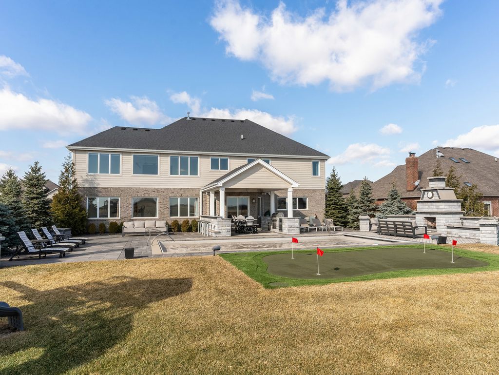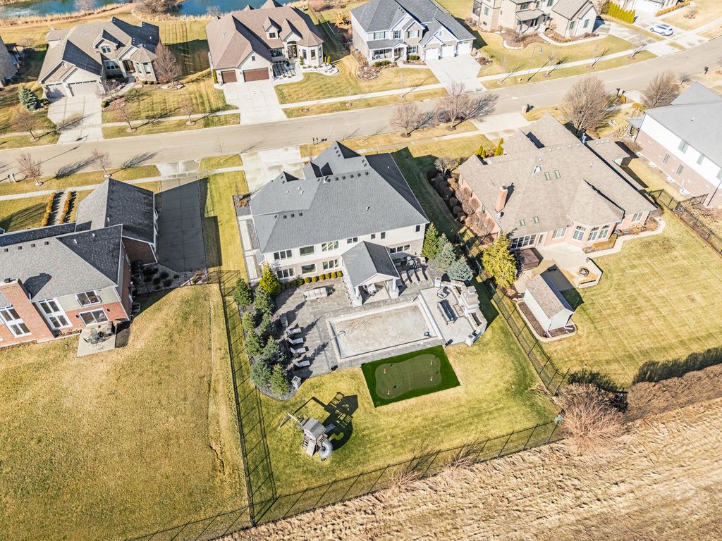 Beautifully updated and move-in ready, this brick and stone home blends timeless design with today's modern finishes. A welcoming entry opens to a bright, functional layout featuring formal living and dining spaces, a private main-floor office, and an impressive two-story great room with a floor-to-ceiling fireplace. The kitchen is the heart of the home with ceiling-height two-tone cabinetry, quartz counters, a large island with beverage fridge and microwave, high-end appliances, and sunny backyard views. Upstairs, the spacious primary suite offers a spa-like bath with soaking tub, steam shower, and custom walk-in closet. Three additional bedrooms include a Jack-and-Jill bath and a private ensuite, plus a flexible loft/media space. The full basement is ready for future finishing. Outside, enjoy a true backyard retreat with an outdoor kitchen, fireplace, waterfalls, multiple patios, a heated pool, and a putting green. Heated 3-car garage with epoxy floors. Located close to parks, shopping, dining, and expressways. Recent updates include new carpet, fresh paint, a beautifully renovated laundry room, updated lighting, a heated tile floor, a smart sprinkler system, new toilets, and more. Impeccably maintained and feels like a model home.