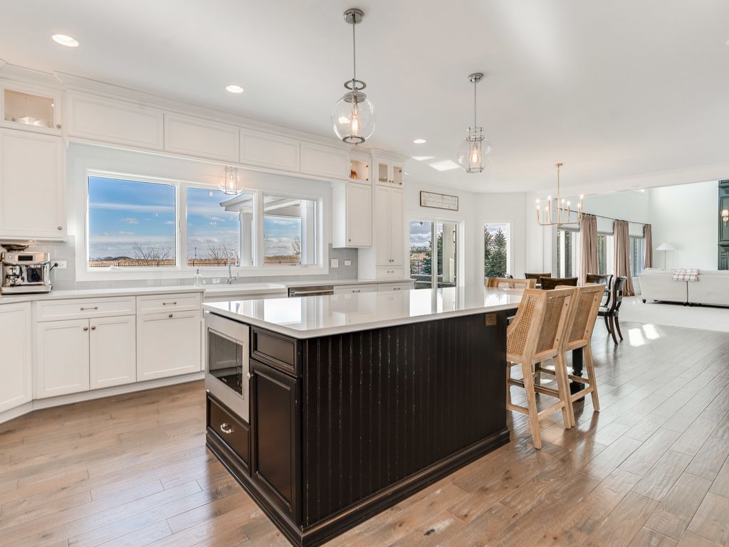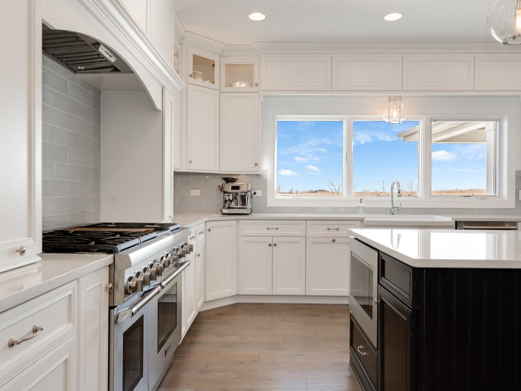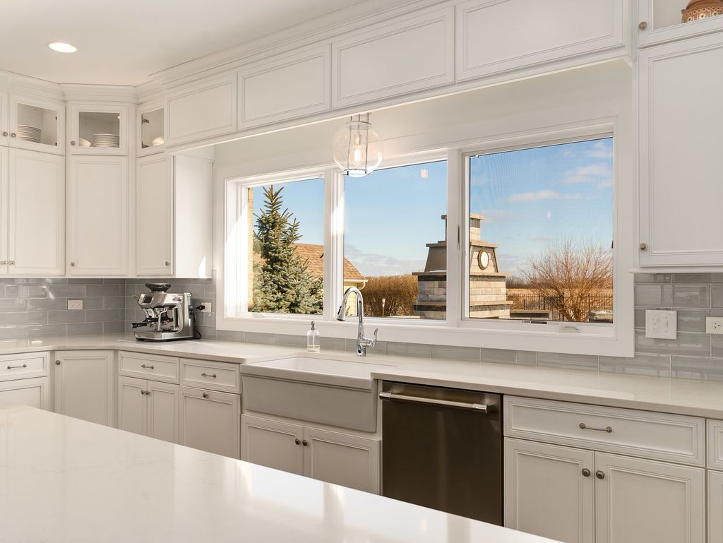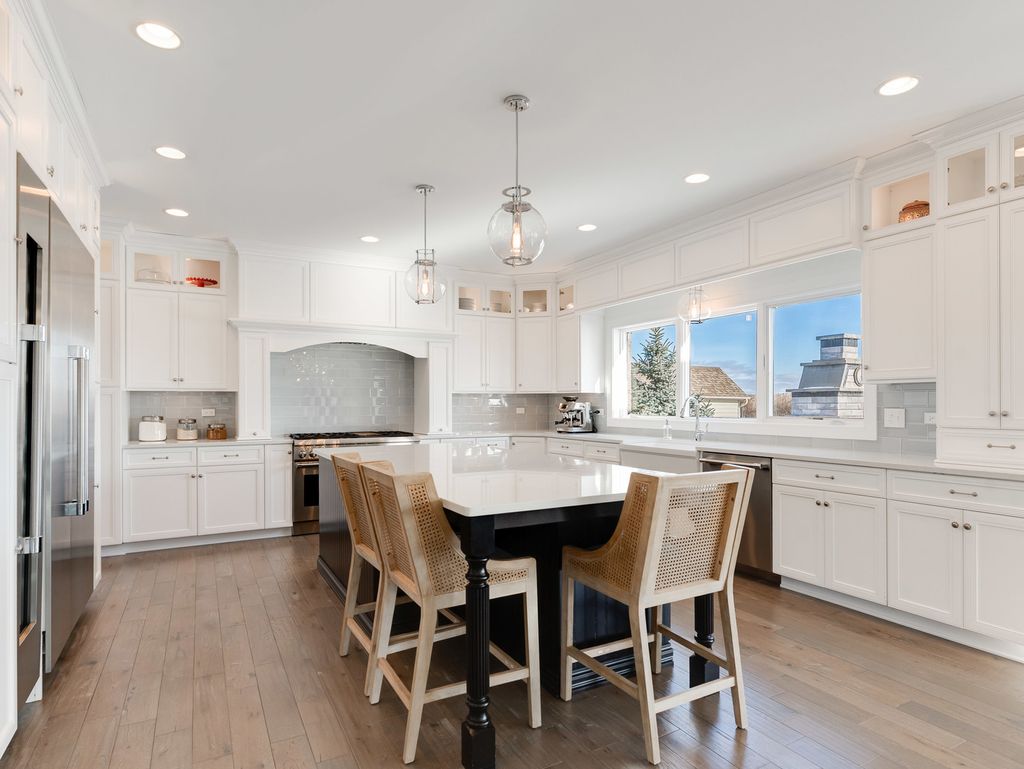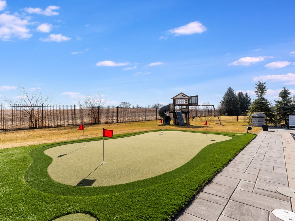 Beautifully updated and move-in ready, this brick and stone home blends timeless design with today's modern finishes. A welcoming entry opens to a bright, functional layout featuring formal living and dining spaces, a private main-floor office, and an impressive two-story great room with a floor-to-ceiling fireplace. The kitchen is the heart of the home with ceiling-height two-tone cabinetry, quartz counters, a large island with beverage fridge and microwave, high-end appliances, and sunny backyard views. Upstairs, the spacious primary suite offers a spa-like bath with soaking tub, steam shower, and custom walk-in closet. Three additional bedrooms include a Jack-and-Jill bath and a private ensuite, plus a flexible loft/media space. The full basement is ready for future finishing. Outside, enjoy a true backyard retreat with an outdoor kitchen, fireplace, waterfalls, multiple patios, a heated pool, and a putting green. Heated 3-car garage with epoxy floors. Located close to parks, shopping, dining, and expressways. Recent updates include new carpet, fresh paint, a beautifully renovated laundry room, updated lighting, a heated tile floor, a smart sprinkler system, new toilets, and more. Impeccably maintained and feels like a model home.
