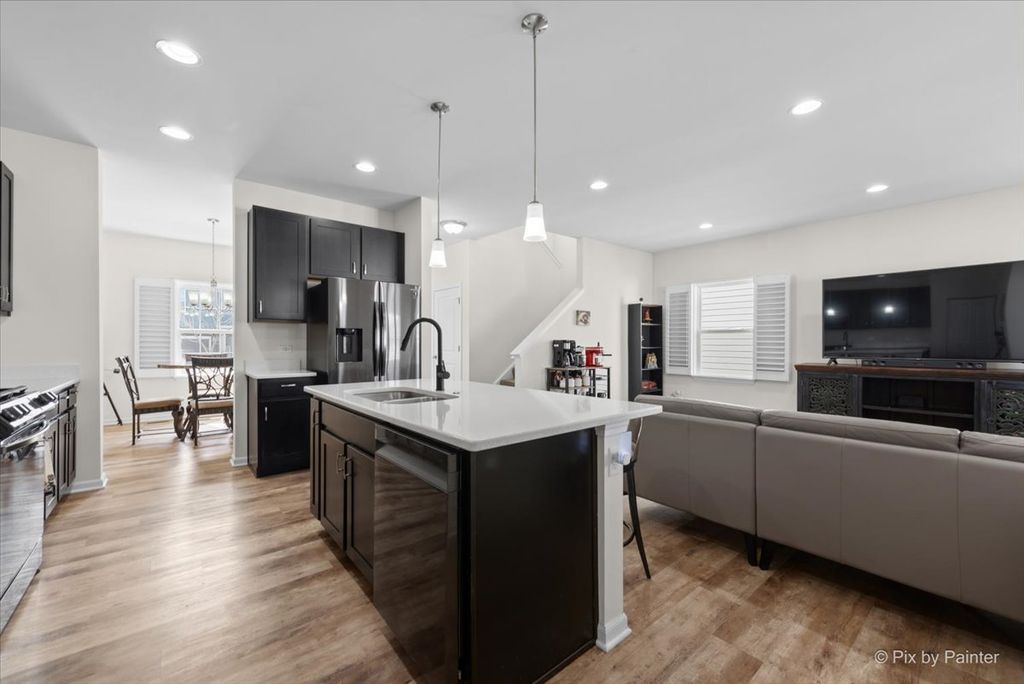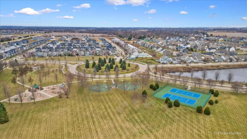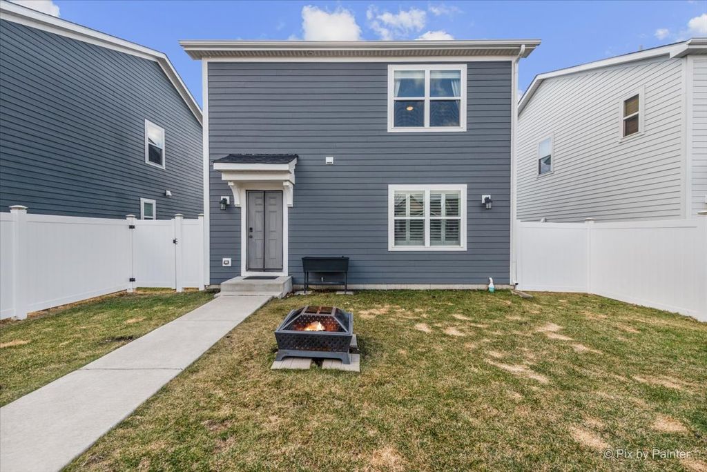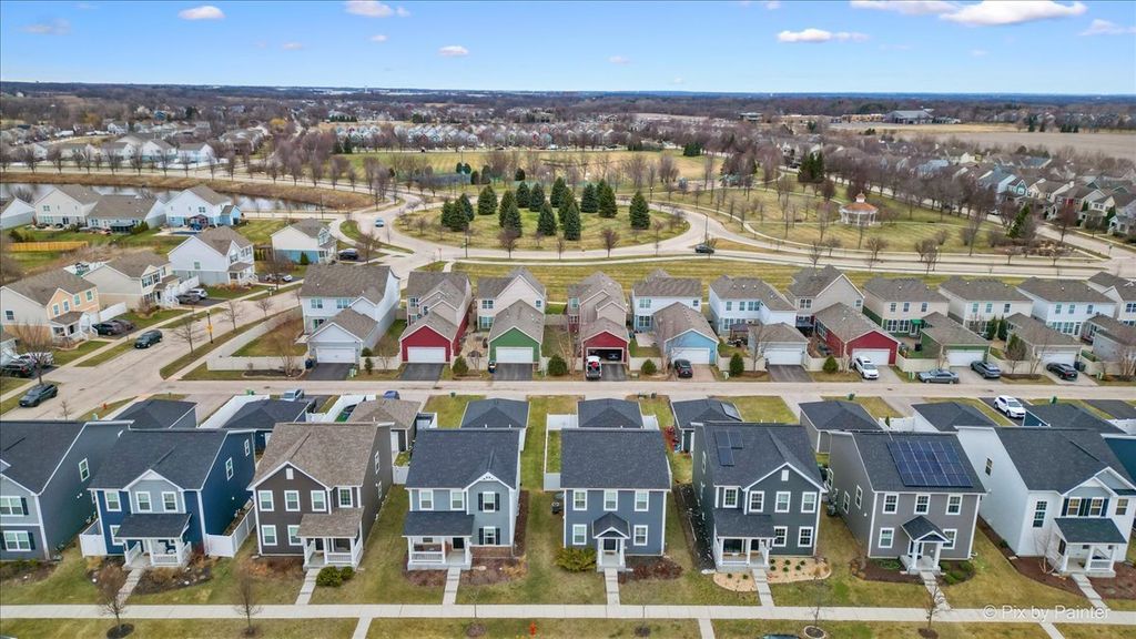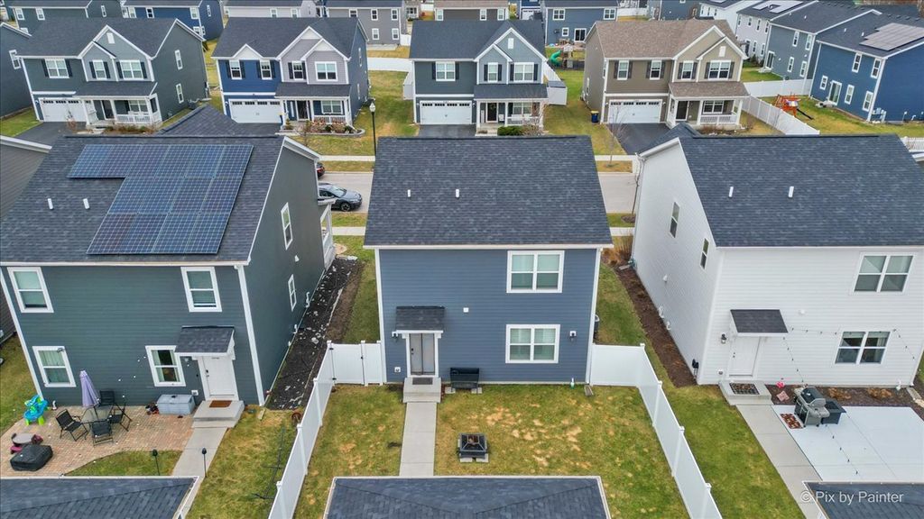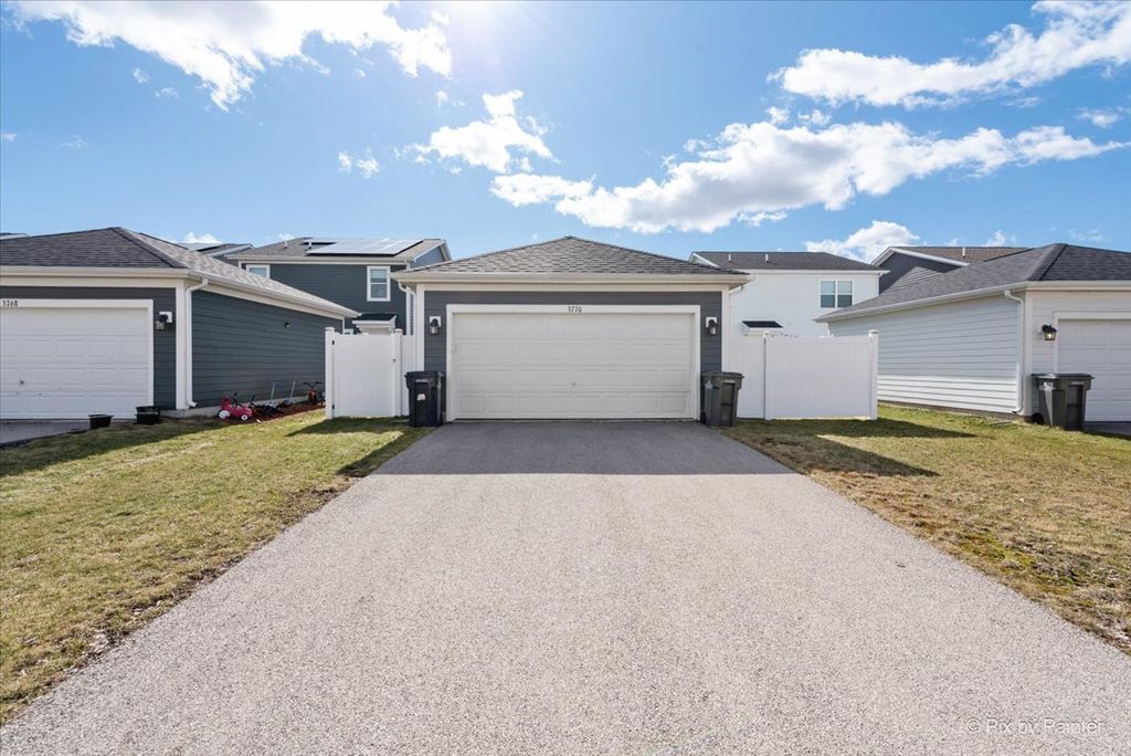 Welcome to 3770 Westbury in Elgin - a beautifully maintained Landers floorplan built in 2021 and thoughtfully upgraded by the current owners. This newer construction home offers modern finishes, functional design, and a rare two-car detached rear-load garage that creates exceptional curb appeal with no front-facing garage, just a charming two-story exterior and covered entry. Step inside to an open-concept layout designed for both entertaining and everyday living. The versatile front dining room can easily serve as a formal entertaining space, home office, or playroom. A convenient coat closet and updated powder room featuring a new toilet, LED mirror, and upgraded lighting add style and function to the main level. The expansive kitchen is the heart of the home, centered around a large island with seating and featuring upgraded high-efficiency black stainless steel appliances, quartz countertops & tile backsplash, 42" painted cabinetry with soft-close drawers, roll-out shelving & more. The kitchen flows seamlessly into the spacious family room enhanced with added recessed can lighting and first-floor plank flooring throughout. The mudroom and laundry area are conveniently located off the rear entrance and include a newer washer and dryer for true move-in-ready convenience. Upstairs, the private owner's suite spans the entire rear of the home and features a large walk-in closet and a bright en-suite bath with dual sinks, a 5-foot tiled walk-in shower, linen closet, and natural light. Two additional bedrooms and a full hall bath complete the second floor, with new ceiling fans installed in all bedrooms for added comfort. Enjoy the fully fenced backyard with privacy fence and added lighting, ideal for relaxing evenings or entertaining guests. The full basement offers endless potential for future finishing, whether you envision a home theater, gym, playroom, or additional bedroom space. Located in highly regarded Burlington School District 301 and situated in a neighborhood with no drive-through traffic, this home offers both privacy and convenience.