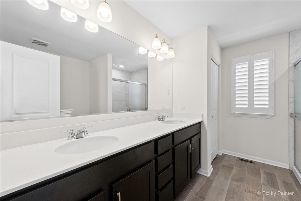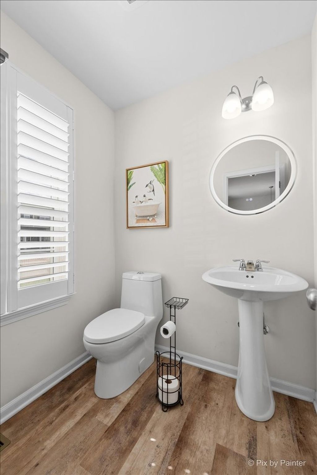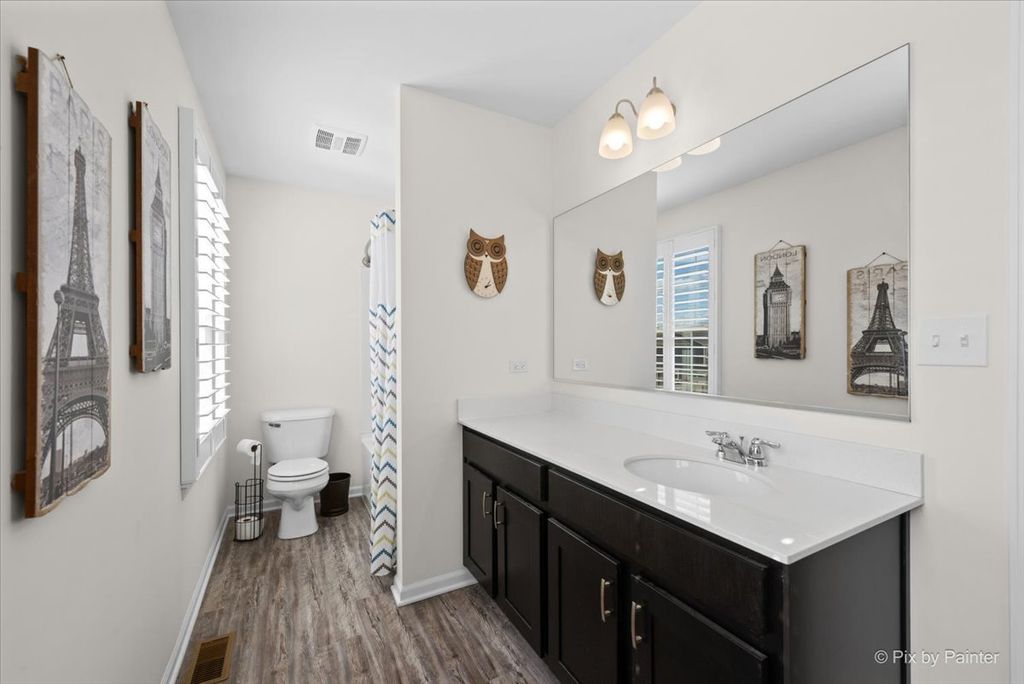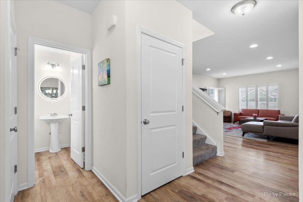 Welcome to 3770 Westbury in Elgin - a beautifully maintained Landers floorplan built in 2021 and thoughtfully upgraded by the current owners. This newer construction home offers modern finishes, functional design, and a rare two-car detached rear-load garage that creates exceptional curb appeal with no front-facing garage, just a charming two-story exterior and covered entry. Step inside to an open-concept layout designed for both entertaining and everyday living. The versatile front dining room can easily serve as a formal entertaining space, home office, or playroom. A convenient coat closet and updated powder room featuring a new toilet, LED mirror, and upgraded lighting add style and function to the main level. The expansive kitchen is the heart of the home, centered around a large island with seating and featuring upgraded high-efficiency black stainless steel appliances, quartz countertops & tile backsplash, 42" painted cabinetry with soft-close drawers, roll-out shelving & more. The kitchen flows seamlessly into the spacious family room enhanced with added recessed can lighting and first-floor plank flooring throughout. The mudroom and laundry area are conveniently located off the rear entrance and include a newer washer and dryer for true move-in-ready convenience. Upstairs, the private owner's suite spans the entire rear of the home and features a large walk-in closet and a bright en-suite bath with dual sinks, a 5-foot tiled walk-in shower, linen closet, and natural light. Two additional bedrooms and a full hall bath complete the second floor, with new ceiling fans installed in all bedrooms for added comfort. Enjoy the fully fenced backyard with privacy fence and added lighting, ideal for relaxing evenings or entertaining guests. The full basement offers endless potential for future finishing, whether you envision a home theater, gym, playroom, or additional bedroom space. Located in highly regarded Burlington School District 301 and situated in a neighborhood with no drive-through traffic, this home offers both privacy and convenience.