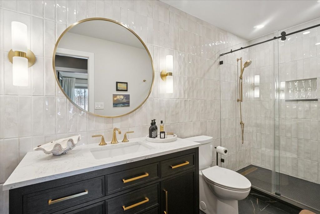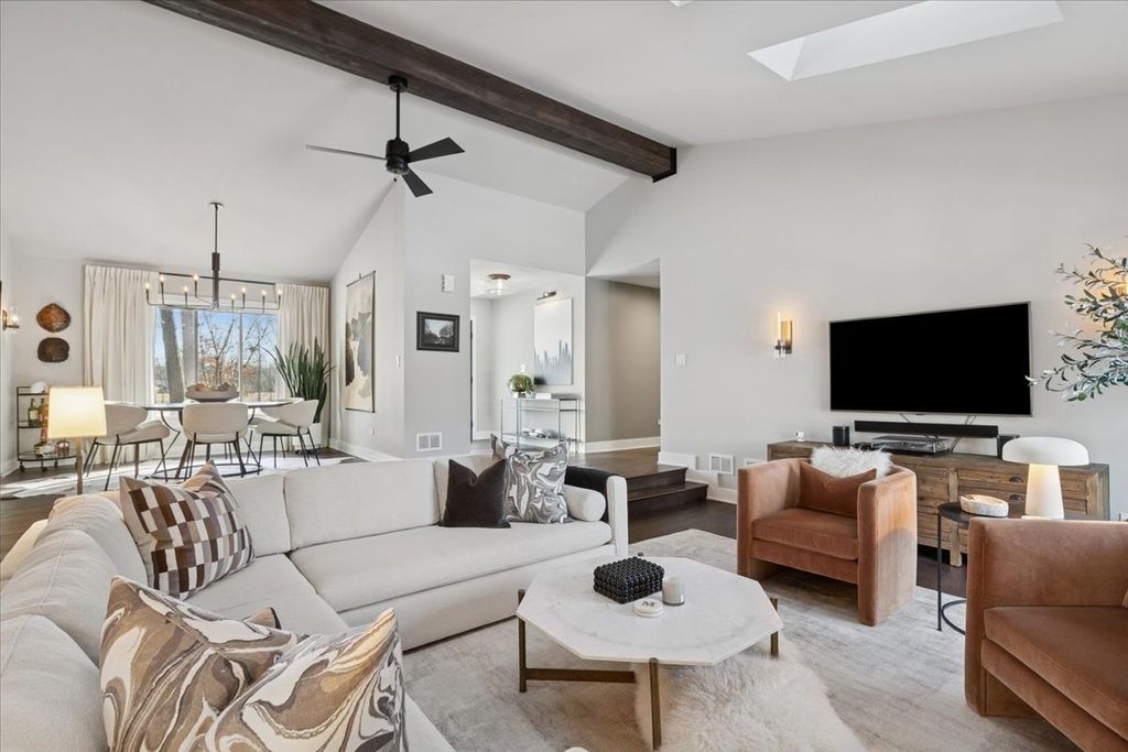 A thoughtfully reimagined ranch-style home tucked beneath a canopy of mature trees, where refined interiors meet effortless outdoor connection, combining designer finishes with comprehensive system upgrades and carefully curated exterior improvements. Special features have been executed with intention ensuring both modern appeal and peace of mind. The contemporary, open concept design with three bedrooms and three full bathrooms showcases an elevated kitchen with premium appliances and high-end finishes, tastefully appointed bathrooms, two laundry spaces, solid wood doors and new hardwood flooring, fresh paint providing a cohesive, refined backdrop and Restoration Hardware lighting lending a subtle, collected sophistication. The centrally located great room serves as the home's architectural centerpiece, where a vaulted ceiling with a decorative, exposed beam creates volume without sacrificing intimacy. A full-height gas fireplace offers warmth and ambience, seamlessly linking the foyer and dining room providing a path to the kitchen; ideal for entertaining while maintaining a comfortable, connected feel. The charming sunroom offers a peaceful retreat for all seasons, wrapped in windows to capture natural light it creates a tranquil setting for morning coffee, casual dining or relaxed entertaining. Outdoors, the improvements continue. A recently completed TimberTech composite deck with Trex railing and integrated lighting creates a seamless transition from the indoors out. Professionally designed hardscape and landscaping, a concrete front walkway and asphalt driveway enhance the home's presence, while a newer roof adds lasting value. An exceptional offering in the highly coveted Oak Grove elementary school district, with convenient tollway access and close proximity to shopping and dining.