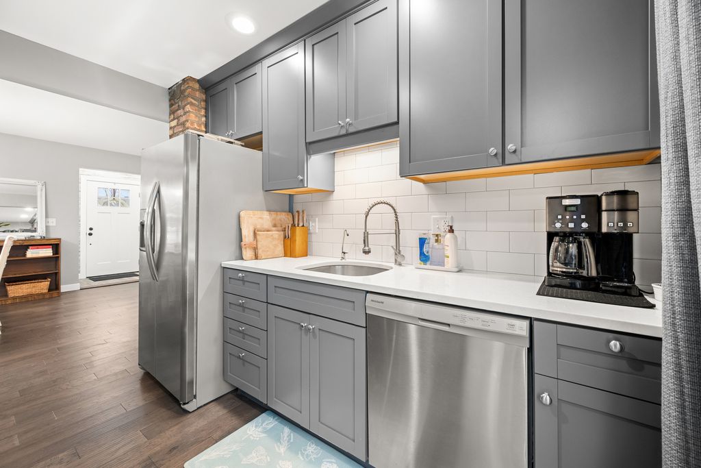 Fall in love with the perfect blend of charm, comfort, and modern updates in this inviting 2-bedroom, 1.1 bath home! Step inside the welcoming entryway, complete with a convenient closet, cozy lighting, and beautifully appointed shiplapped walls that instantly set the tone for warmth and style. It's a space that feels both inviting and thoughtfully designed from the very first moment. Beyond the foyer, the light-filled open living and dining room creates an airy yet comfortable atmosphere, which is ideal for quiet evenings in or gathering with friends and family. The beautifully updated kitchen, with newer cabinetry, shines with quartz countertops, a stylish tiled backsplash, and stainless steel appliances, offering a modern touch that blends seamlessly with the home's charm. A sliding glass door extends your living space outdoors to the deck, perfect for morning coffee, summer grilling, or simply relaxing. The flexible main-level bedroom offers versatility to fit your lifestyle-whether you envision a guest room, productive home office, or peaceful retreat. A full bathroom with tub/shower on the main level adds everyday convenience and the hallway linen closet is a plus! Upstairs, you'll find a private bedroom retreat featuring a charming sliding door, along with a half bath and additional storage, creating a cozy, tucked-away space to unwind and recharge. The full basement includes washer, dryer, and wash sink, along with space that serves as a blank canvas. Keep it as generous storage or finish it to create additional living space. The possibilities are truly yours to imagine. Outside, enjoy the yard and detached 1.5 car-garage, offering room to relax, garden, play, or entertain. With close proximity to schools, shopping, restaurants, medical facilities, and more, everything you need is just moments away. Thoughtfully updated, this home offers more than modern features, it offers comfort, character, and a place where memories are ready to be made.