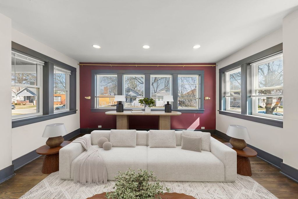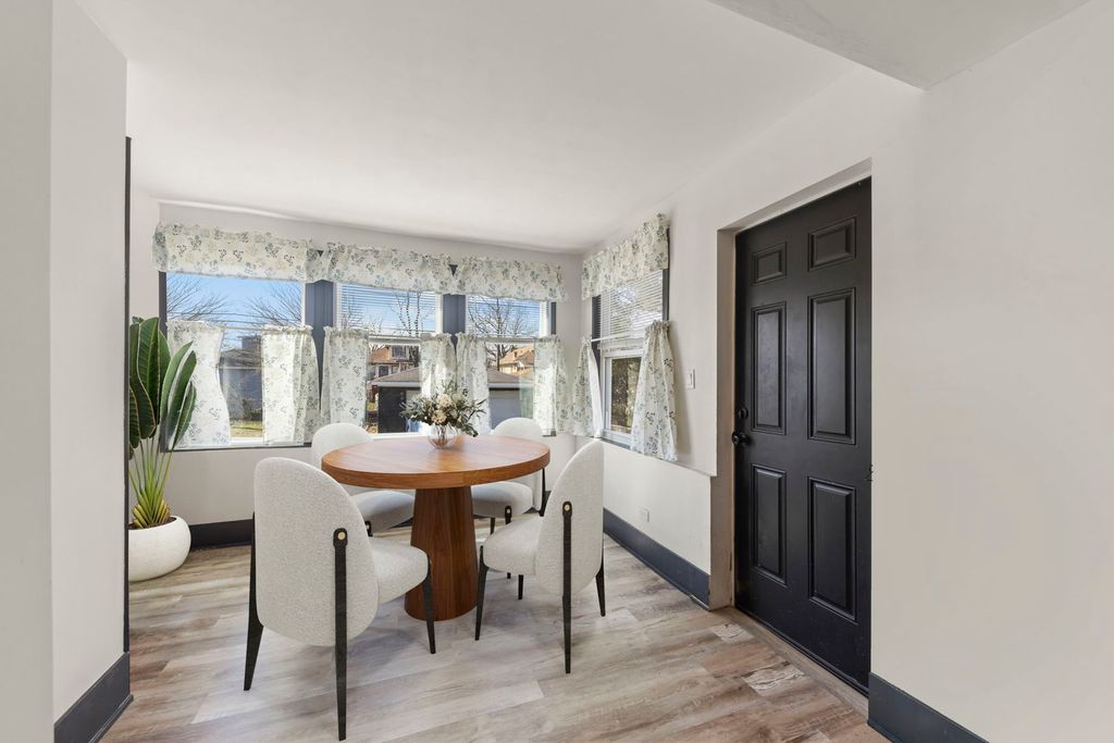 Welcome to this spacious and versatile 4-bedroom, 2.5-bath home in Maywood offering a blend of classic charm and modern updates, designed for a variety of lifestyle needs. Step inside to a large, inviting living room featuring hardwood floors and an abundance of natural light. A cozy sitting room adds comfort, while the fireplace provides a charming focal point. Updated lighting throughout the home enhances its warm and contemporary feel. The expansive kitchen is a true standout, complete with laminate flooring, quartz countertops, stylish white and gray shaker cabinets, and stainless steel appliances including a dishwasher. A separate eat-in area with ample canned lighting and plenty of windows creates a bright and welcoming space for everyday dining, while a conveniently located powder room completes the main level. Upstairs, you will find four bedrooms, including two with walk-in closets. The fourth bedroom features a private exterior balcony, offering a great space to relax outdoors. A unique highlight is the walk-up attic accessible through a bedroom closet, providing excellent storage or potential for future finished living space. The full bathroom has been updated with a modern stand-up shower. The finished basement adds flexibility with two additional rooms with closets that can be used for a variety of purposes such as a home office, recreation room, or additional storage. A full basement bathroom with ceramic tile flooring and a newer washer and dryer adds everyday convenience. Additional improvements include an asphalt driveway completed in summer 2024, a water heater installed in 2021, and a newer furnace. The home also features a very long driveway, providing ample off-street parking for multiple vehicles. Ideally located in Maywood, this property offers convenient access to shopping, dining, parks, and recreational opportunities. It is approximately 20 minutes from downtown Chicago, providing convenient access to the city. Nearby attractions include the Illinois Prairie Path, the Maywood Fine Arts Center, and Brookfield Zoo. Commuters will appreciate access to major highways including I-290 and I-88 as well as nearby Metra stations.