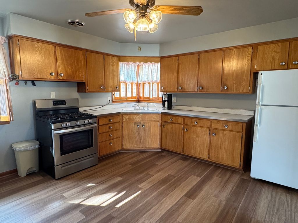This wonderful home situated in an amazing location close to restaurants, schools, and shopping is a Must See! The home features three nice bedrooms, one bath, a spacious living room featuring bright windows that fill the space with natural light, and a great kitchen offering numerous cabinets for excellent storage! Beautiful new flooring was installed in both rooms along with the hallway and bath in 2024. The full basement was professionally Perma-Sealed in 2014 and provides a clean, open layout with abundant storage space and endless potential. Step outside to a dream backyard with plenty of room to relax, entertain, or play. The oversized two-car garage is a huge bonus, offering exceptional space for vehicles, storage, or hobbies. Major updates include Roof replacement in 2023, and Furnace, A/C, and sump pump replaced in 2014! This house is Move-in ready and conveniently located - don't miss this opportunity! Sold As Is - Call today!