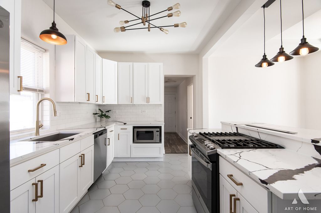 One of Maywood's finest! Beautifully remodeled with all the touches! Open concept kitchen with gorgeous quartz countertops and soft close cabinets. Beautiful Cooking island with seating, Wonderful for hosting. Great size living and formal dining room. 1.5 spa like bathrooms generously sized. Beautiful hardwood floors, with modern lighting. Basement has been protected with an exterior french drain system. New appliances from 2022, and a dishwasher from this year 2026. This home also sports a long driveway with 1 car garage. Huge backyard, with new deck and patio/Gazebo to enjoy your backyard oasis. Conveniently located near the, 290 and steps to the the Illinois Prairie Path! 1st floor done, 2nd floor done, basement done! Backyard and all you can ask for! This is affordably luxury! Hurry before this one is gone!