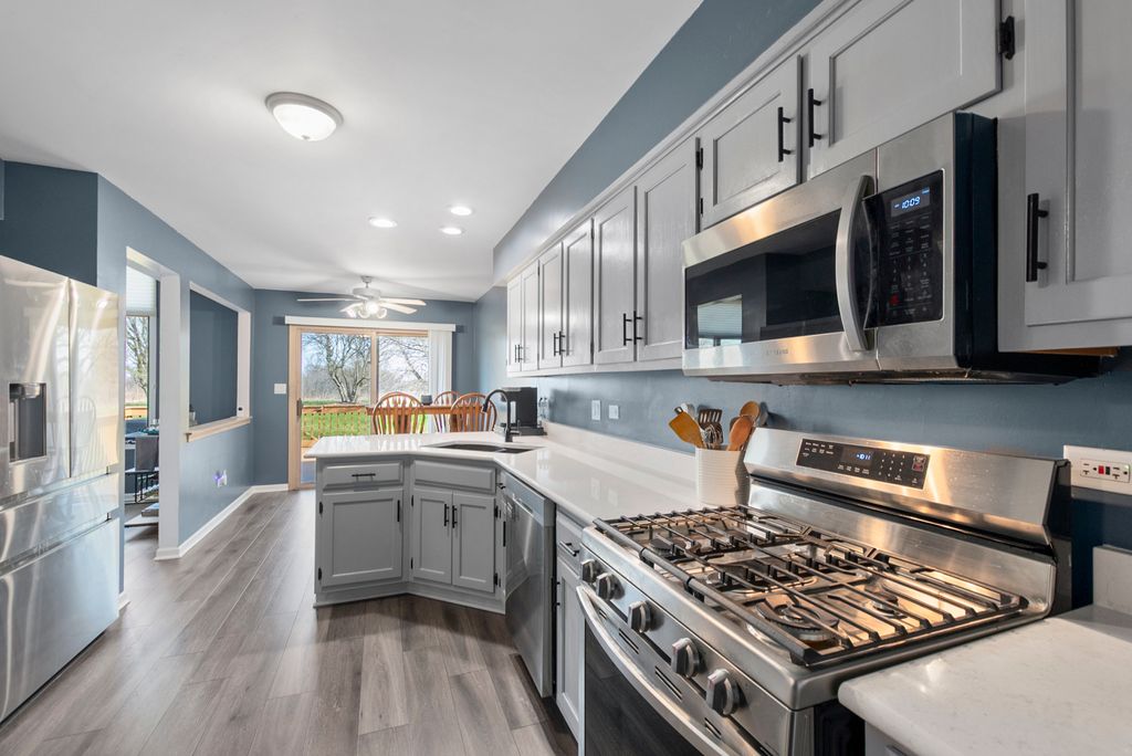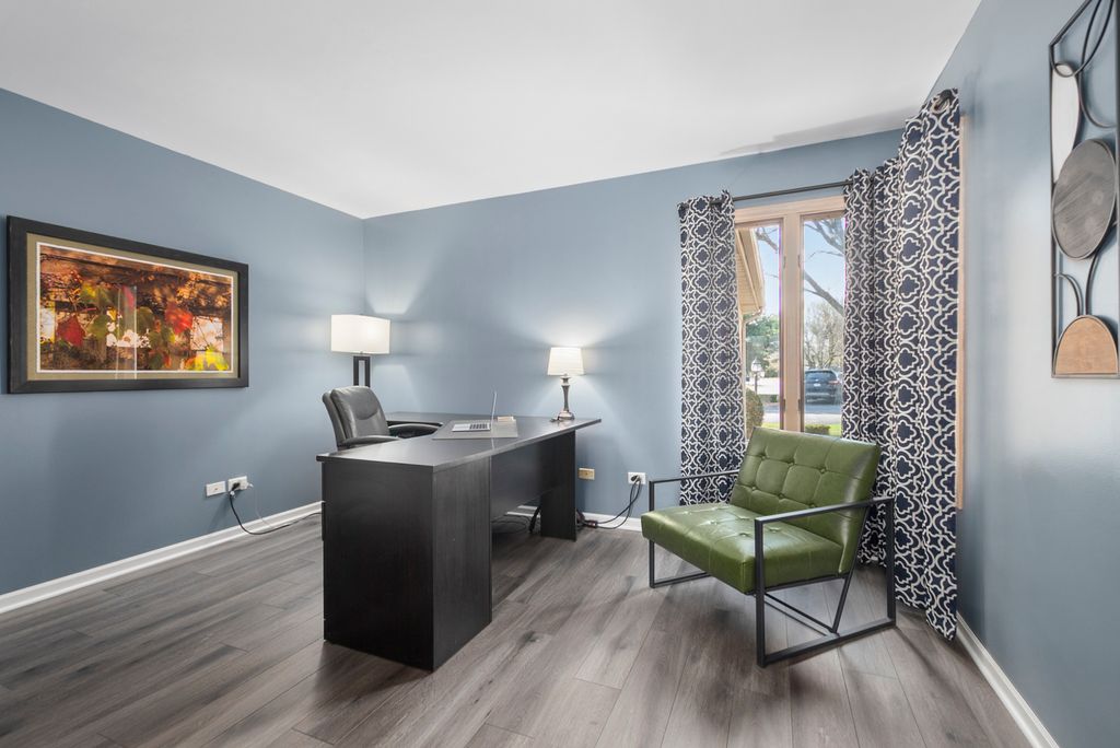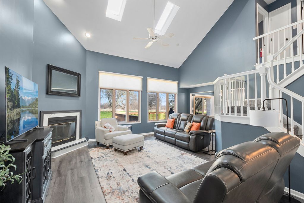 Welcome home to this beautifully updated two-story townhome offering private, scenic views and a long list of thoughtful improvements throughout. With a modern, neutral interior and quality finishes at every turn, this home is truly move-in ready. The entire interior was freshly painted in 2022, creating a bright and inviting atmosphere, while new luxury vinyl flooring installed in 2024 enhances the main living areas with both style and durability. The impressive living room features soaring vaulted ceilings, skylights that allow for plenty of natural light, a refinished gas fireplace that serves as a stunning focal point, and Hunter Douglas blinds for a polished finish. The adjacent dining room provides an ideal setting for entertaining or everyday meals, seamlessly connecting the living space and kitchen. The updated eat-in kitchen is both functional and beautifully refreshed, offering new quartz countertops, a new sink and faucet, refinished cabinetry with new hardware, along with stainless steel appliances installed in 2021. A convenient breakfast bar and pantry provide additional seating and storage, making this kitchen perfect for both casual dining and hosting. The main level also includes a spacious bedroom, ideal for guests or flexible living arrangements, along with a fully renovated bathroom featuring a new tub, all new porcelain tile, new toilet, updated vanity top, new light fixture, and mirror. The laundry room is equipped with a newer Samsung washer and dryer for added convenience. Upstairs, all new carpeting was installed in 2022. The primary suite is a true retreat with vaulted ceilings, a walk-in closet, and a beautifully updated private bath complete with a double sink vanity featuring a new vanity top, new fixtures and mirrors, new tile, a freestanding soaking tub, new toilet, new shower, and a skylight that brings in natural light. An additional bedroom offers vaulted ceilings, new carpeting, a new ceiling fan, and generous space. The second full bath has also been updated with new tile, a refinished vanity, new mirror, and new light fixture. The finished basement expands the living space even further with all new vinyl plank flooring installed in 2023. This versatile level includes a family room, recreation room, exercise area, and private office-perfect for today's work-from-home lifestyle or additional entertaining space. A new hot water heater was installed in 2021 for added peace of mind. Outside, enjoy relaxing or entertaining on the newly painted deck overlooking private green space views, offering a tranquil setting rarely found in townhome living. This exceptional home combines modern updates, spacious living, and serene surroundings-an opportunity you won't want to miss.