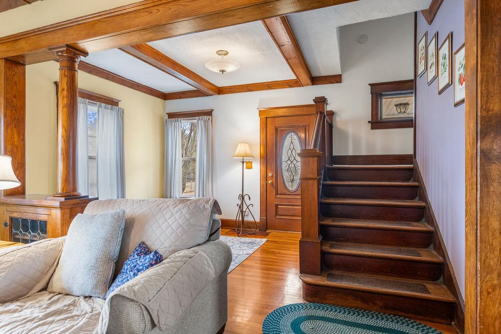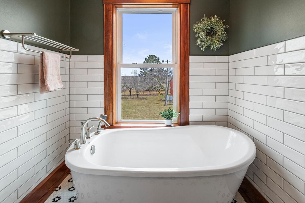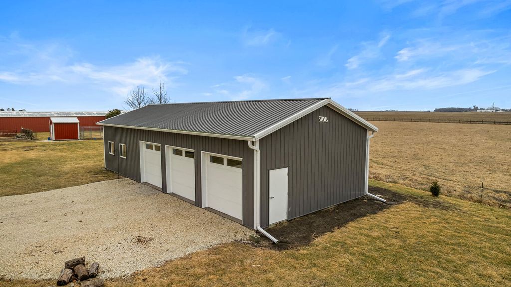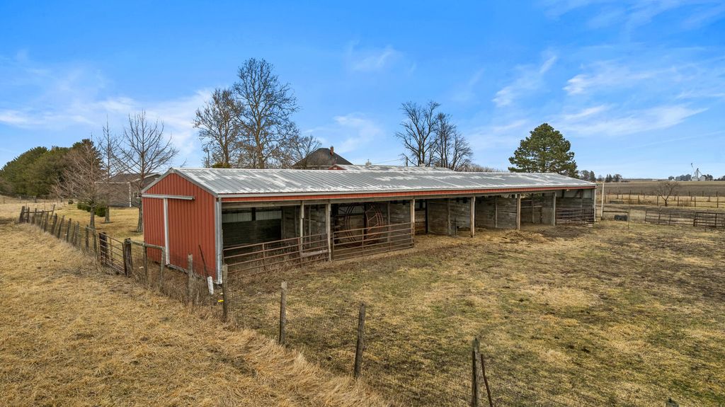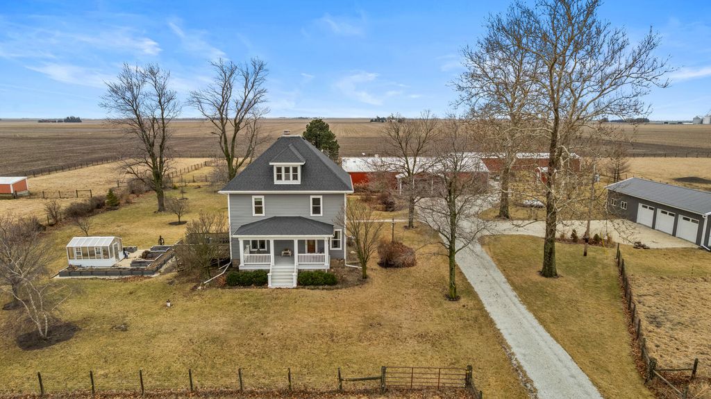 This is the country retreat you have been waiting for! Once operated as a horse farm, this exceptional 12.43 acre property offers everything you need to fully enjoy country living. A long driveway leads to the beautiful two-story farmhouse that has been thoughtfully updated over the years, while maintaining the woodwork and charm. Walk into the spacious mudroom and additional hallway area which provides abundant functional storage. The main-level bathroom has been fully updated and features a walk-in shower. The kitchen with all appliances contains wood built-ins and a walk-in pantry. The separate dining room, filled with natural light from numerous windows, opens onto the deck - for those peaceful country views. The living room with adjoining sitting area leads upstairs to four bedrooms and another newly updated bathroom (2024). New walls, windows (except 3), and flooring throughout. Additional stairs head up to a fully floored attic, ideal for storage or ready to be finished for extra living space. The walk-out basement features a wood burning furnace that can be used in conjunction with the propane furnace (new 2025). Outside, you'll find a charming front porch with a swing, a greenhouse with planters, and a chicken coop with a fenced-in area. Plenty of space for all of your gardening needs, with established asparagus, herbs, and apple trees. The impressive 24x56 detached four-car garage with a cement floor provides abundant workspace and storage. The barn includes four stalls with sliding doors and additional storage space. At the front of the barn, there's a dedicated office/workshop complete with a desk and bathroom area, as well as a stainless steel work sink, work tables, a small refrigerator and water heater - perfect for an at-home business or hobby space. There are also multiple fenced-in pastures, two lean-tos (one with four separate stall areas), and water run to all areas of the property. Whether you're looking to restore it as a horse property, launch your at-home business, or simply enjoy the peace and quiet of country living, the possibilities here are truly endless.