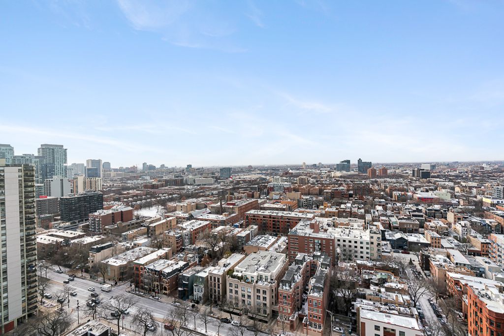 Top floor one-bedroom Sandburg Village condo with endless West facing views and abundant natural light. Featuring an open concept living room with eat-in breakfast bar kitchen, this condo maximizes functionality and comfort. The bedroom is generously sized and filled with natural light, while storage is plentiful throughout the home with a hall closet, kitchen pantry, linen closet, and bedroom closet. A standard half-cage storage unit is also included in the building's basement. The full-service building offers 24-hour door staff, on-site laundry, additional storage, and a rooftop deck scheduled to reopen in 2026. The association amenities include two outdoor swimming pools, tennis courts, and access to an in-building gym and bike room for an annual fee. HOA includes all utilities except electric/AC. Pet-friendly building with attached leased parking available via waitlist. Ideally located within walking distance to Wells, Division, Clark, and Dearborn, this home offers easy access to top restaurants, coffee shops, grocery stores, CTA, and everything Old Town, Gold Coast, and Lincoln Park have to offer.