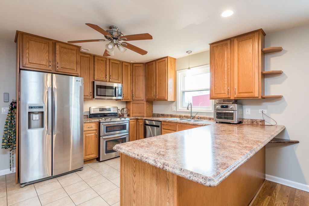 BEAUTIFULLY REBUILT IN 2010, this spacious 4 bedroom, 3 full bath two-story home offers modern updates, generous room sizes, and a wonderful setting on .82 acre with multiple PINs and some frontage on Bonnie Brook Ln. See Docs for multiple pins explained. The main level features a bright living room with hardwood floors flowing into the dining area, creating an open and inviting space for entertaining. The kitchen offers abundant cabinetry, a large pantry, Kohler touchless faucet, and a new dishwasher installed January 2026. Fresh paint throughout and new windows in the living room, dining room, and kitchen enhance the natural light. The main floor bathroom has been beautifully remodeled, and a main floor bedroom with a large closet offers flexible space for guests, an office, or hobby room. Upstairs you'll find a spacious primary suite featuring a walk-in closet, private bath with ceramic tile, laundry chute, and sliding doors leading to the deck. Additional bedrooms include built-ins, closet organizers, and a TV mount that stays. The home offers excellent storage, including a floored attic approximately 4 feet high and a crawl space with a 4-foot ceiling, poured concrete floor, sump pump, and mechanical access. Step outside to enjoy the partially new deck with gas hookup for grilling, a covered grill area, and easy access to the walking path directly across the street leading to Bevier Park which connects to the Robert McClory Bike Path. Nice sitting area on the deck and hand made fire pit that will stay. There are 2 sheds on the property, one is attached to the home and one is detached. The attached shed measures 11.5' x 9'. The property also includes a heated 2-car detached garage, raised garden area ready for planting, frost-free exterior spigot with shut-off, and a recently sealed asphalt driveway. Major improvements include roof, furnace, windows, and full rebuild, including plumbing and electric, completed in 2010, with additional window updates in 2026. Move-in ready with space, updates, and a fantastic location close to parks and walking trails. The photos with the green grass are AI generated. MULTIPLE OFFERS RECEIVED - HIGHEST AND BEST DUE BY 3/15/26 AT NOON.