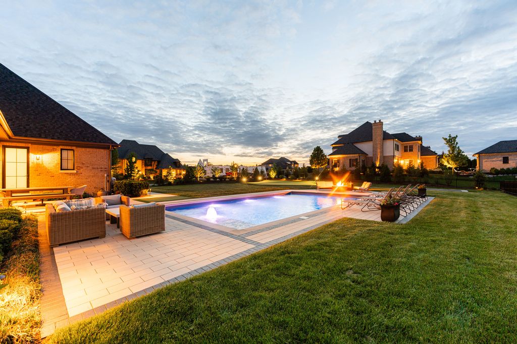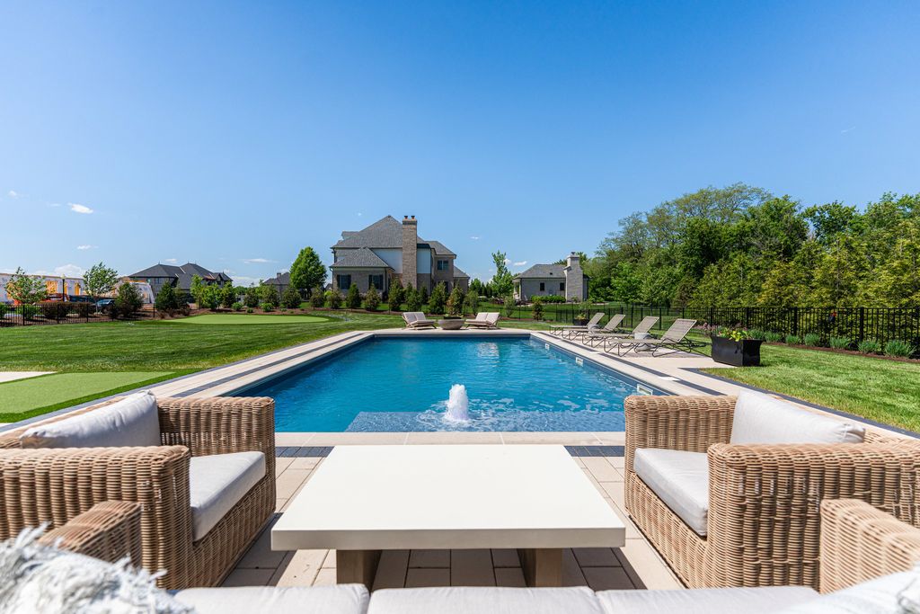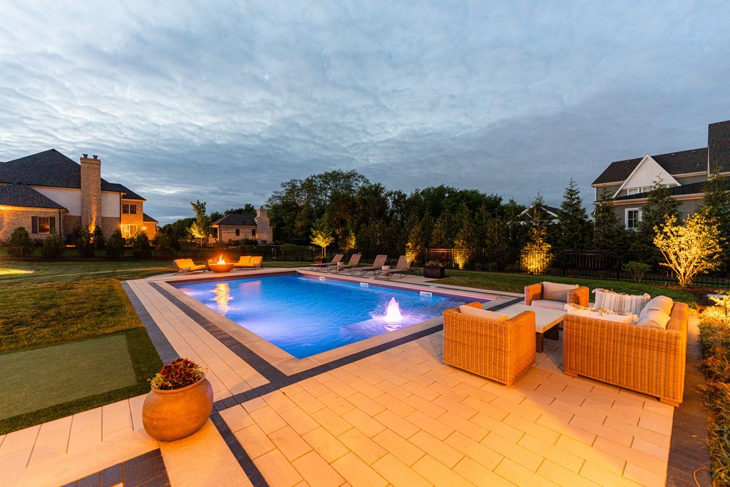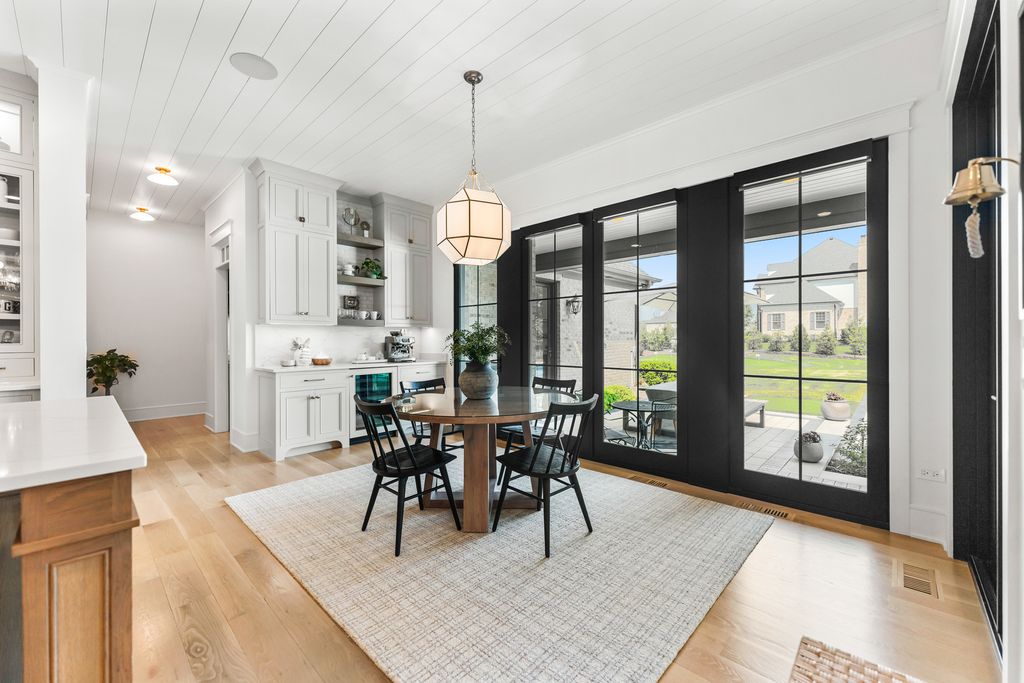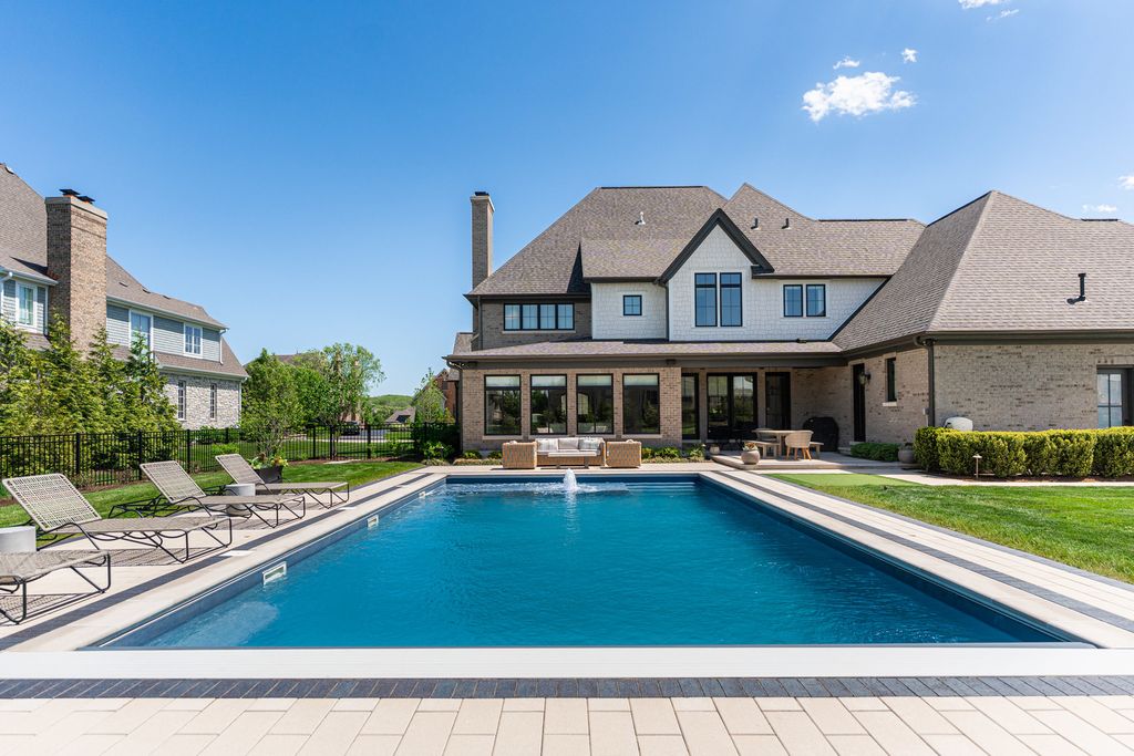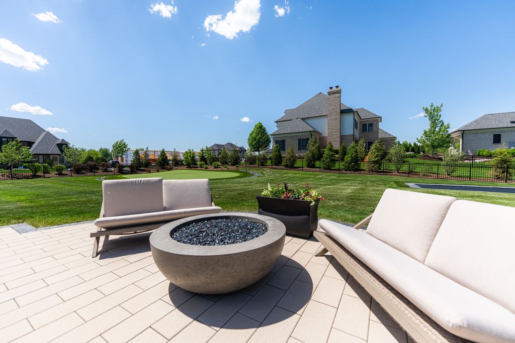 Located in the prestigious Prairie Lakes community of St. Charles, this better-than-new luxury home showcases a resort-style backyard with a modern pool, putting green, and presents like brand-new construction, offering a refined blend of design, comfort, and lifestyle. Built by the renowned Lighthouse Builders, this exceptional custom residence reflects timeless architecture, superior craftsmanship, and a thoughtfully designed open-concept layout tailored for both elevated entertaining and effortless everyday living. Step into expansive, light-filled interiors where white oak hardwood flooring, curated designer lighting, and architectural detailing create a cohesive sense of understated luxury. The formal living and dining spaces are enhanced by custom trim design and intentional architectural elements that elevate each room while maintaining warmth and livability. At the heart of the home, the kitchen reflects exceptional design and craftsmanship, featuring a grand center island, custom cabinetry, and premium appliances, including a Wolf six-burner range and paneled Sub-Zero refrigerator. An architectural statement ceiling adds dimension, while a built-in dry bar with a wine refrigerator and a sunlit dining area overlook the professionally designed backyard. A fully customized walk-in pantry offers extensive built-ins and highly functional storage. The family room is anchored by a striking coffered ceiling, integrated built-ins, and a 7.1 surround sound system designed for both comfort and connection. It transitions seamlessly into a four-season room with built-in speakers and panoramic views, creating a true extension of the living space and a seamless indoor-outdoor experience throughout the year. The main level also features a private office with French doors and abundant natural light, a thoughtfully designed laundry room with black-and-white checkerboard flooring, built-in workspace, and ample storage, as well as a functional mudroom with custom cubbies and direct access to a full bath-ideal for poolside use. A refined powder room completes the main level. The primary suite offers a serene retreat, highlighted by beamed ceilings, a paneled accent wall, and tranquil views of the backyard. The spa-inspired bath features a freestanding soaking tub positioned beneath expansive windows, dual vanities with custom cabinetry, and a glass walk-in shower wrapped in bold herringbone tile-all framed by vaulted ceilings that enhance the sense of volume and light. Each additional bedroom is designed with intention, offering walk-in closets and ensuite or direct bath access. Every bath showcases elevated finishes and cohesive design elements consistent with the home's overall level of quality. The outdoor environment is designed as a private resort experience, featuring a modern in-ground pool with an integrated water feature, an expansive paver patio, professionally curated landscaping, ambient lighting, a custom putting green, and a built-in trampoline-all within a fully fenced setting designed for both relaxation and recreation. Additional highlights include a four-car garage, a strong architectural presence, and a prime location just minutes from downtown St. Charles, top-rated schools, premier golf courses, and private country clubs. This is a rare opportunity to own a better-than-new luxury home in Prairie Lakes offering refined finishes, thoughtfully designed living spaces, and a truly elevated lifestyle.