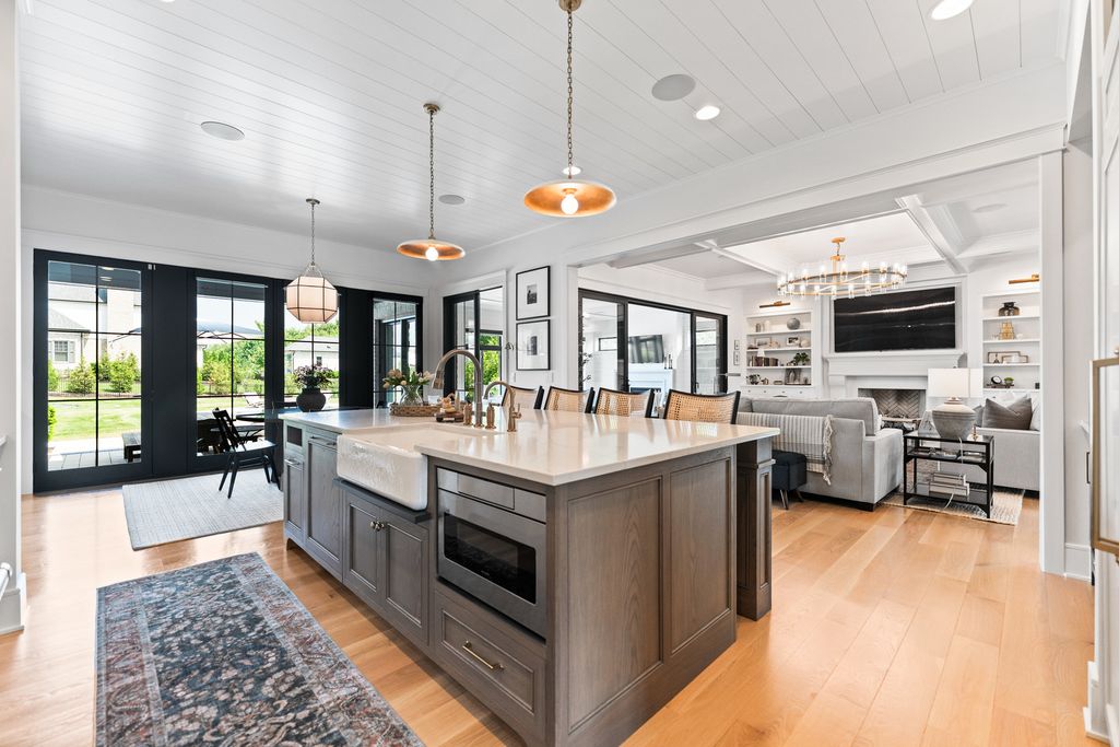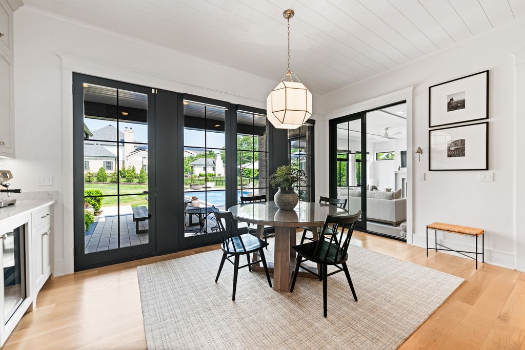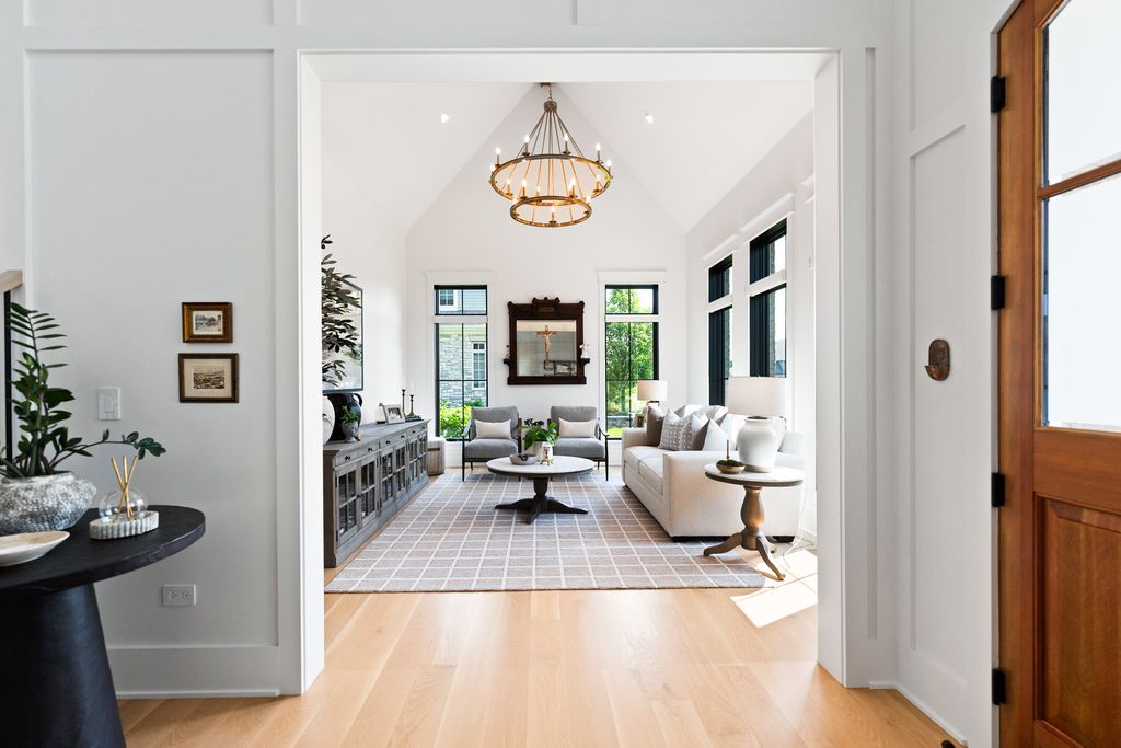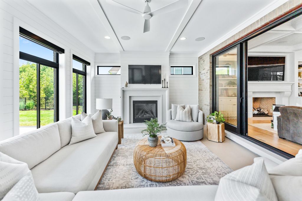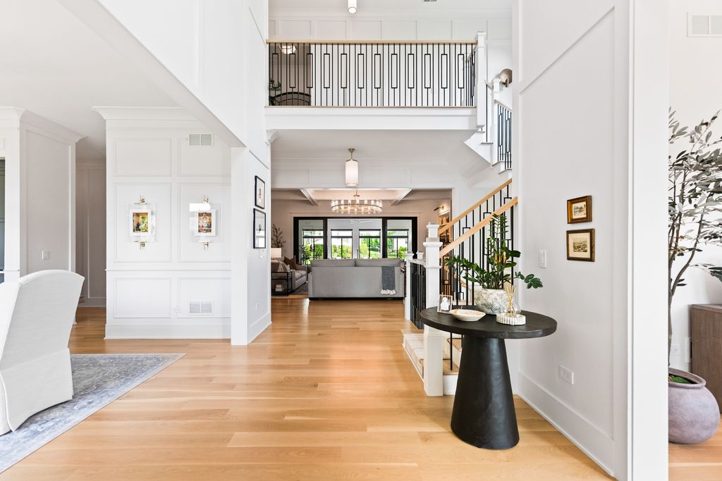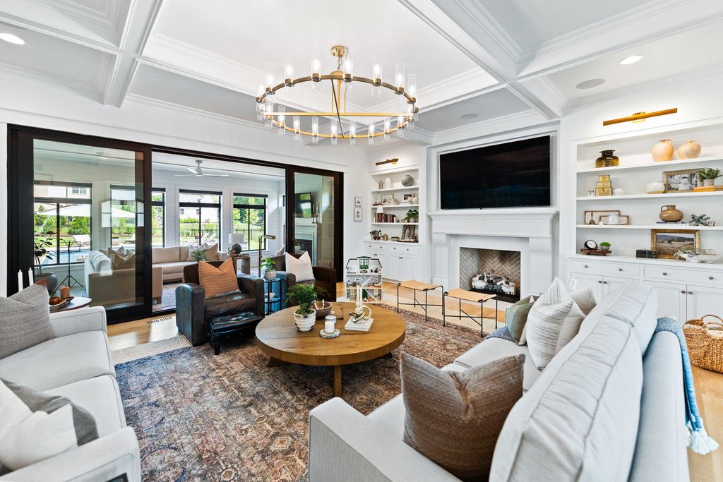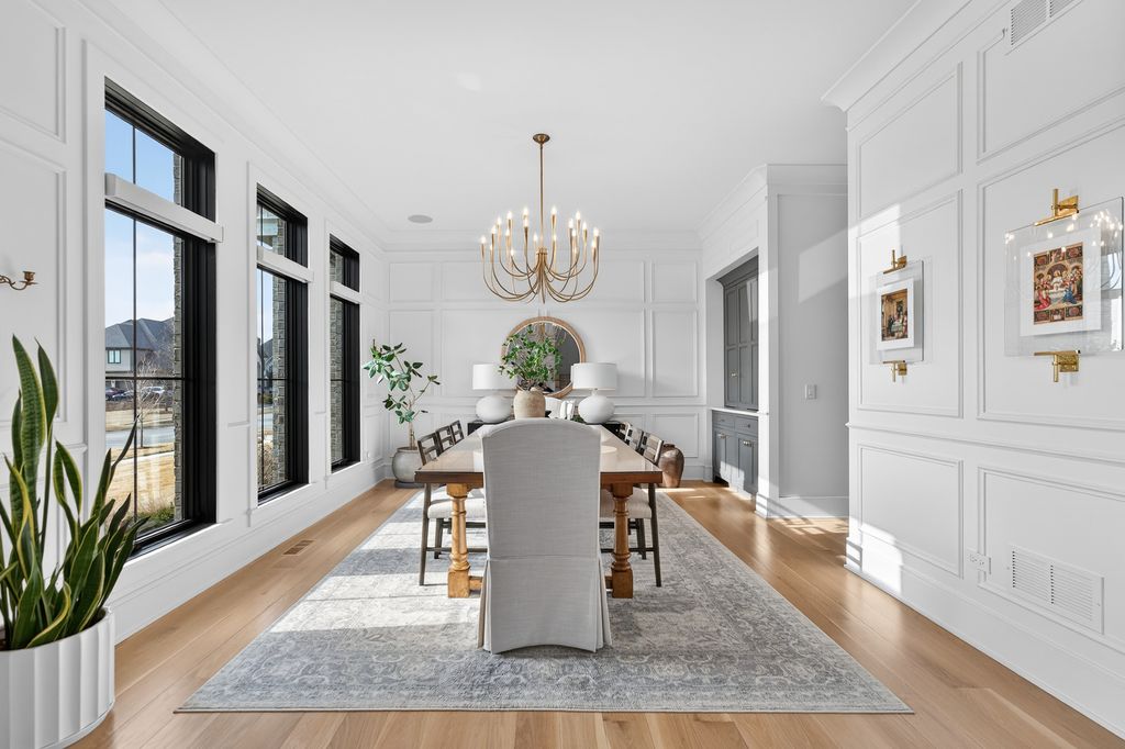 Located in the prestigious Prairie Lakes community of St. Charles, this better-than-new luxury home showcases a resort-style backyard with a modern pool, putting green, and presents like brand-new construction, offering a refined blend of design, comfort, and lifestyle. Built by the renowned Lighthouse Builders, this exceptional custom residence reflects timeless architecture, superior craftsmanship, and a thoughtfully designed open-concept layout tailored for both elevated entertaining and effortless everyday living. Step into expansive, light-filled interiors where white oak hardwood flooring, curated designer lighting, and architectural detailing create a cohesive sense of understated luxury. The formal living and dining spaces are enhanced by custom trim design and intentional architectural elements that elevate each room while maintaining warmth and livability. At the heart of the home, the kitchen reflects exceptional design and craftsmanship, featuring a grand center island, custom cabinetry, and premium appliances, including a Wolf six-burner range and paneled Sub-Zero refrigerator. An architectural statement ceiling adds dimension, while a built-in dry bar with a wine refrigerator and a sunlit dining area overlook the professionally designed backyard. A fully customized walk-in pantry offers extensive built-ins and highly functional storage. The family room is anchored by a striking coffered ceiling, integrated built-ins, and a 7.1 surround sound system designed for both comfort and connection. It transitions seamlessly into a four-season room with built-in speakers and panoramic views, creating a true extension of the living space and a seamless indoor-outdoor experience throughout the year. The main level also features a private office with French doors and abundant natural light, a thoughtfully designed laundry room with black-and-white checkerboard flooring, built-in workspace, and ample storage, as well as a functional mudroom with custom cubbies and direct access to a full bath-ideal for poolside use. A refined powder room completes the main level. The primary suite offers a serene retreat, highlighted by beamed ceilings, a paneled accent wall, and tranquil views of the backyard. The spa-inspired bath features a freestanding soaking tub positioned beneath expansive windows, dual vanities with custom cabinetry, and a glass walk-in shower wrapped in bold herringbone tile-all framed by vaulted ceilings that enhance the sense of volume and light. Each additional bedroom is designed with intention, offering walk-in closets and ensuite or direct bath access. Every bath showcases elevated finishes and cohesive design elements consistent with the home's overall level of quality. The outdoor environment is designed as a private resort experience, featuring a modern in-ground pool with an integrated water feature, an expansive paver patio, professionally curated landscaping, ambient lighting, a custom putting green, and a built-in trampoline-all within a fully fenced setting designed for both relaxation and recreation. Additional highlights include a four-car garage, a strong architectural presence, and a prime location just minutes from downtown St. Charles, top-rated schools, premier golf courses, and private country clubs. This is a rare opportunity to own a better-than-new luxury home in Prairie Lakes offering refined finishes, thoughtfully designed living spaces, and a truly elevated lifestyle.