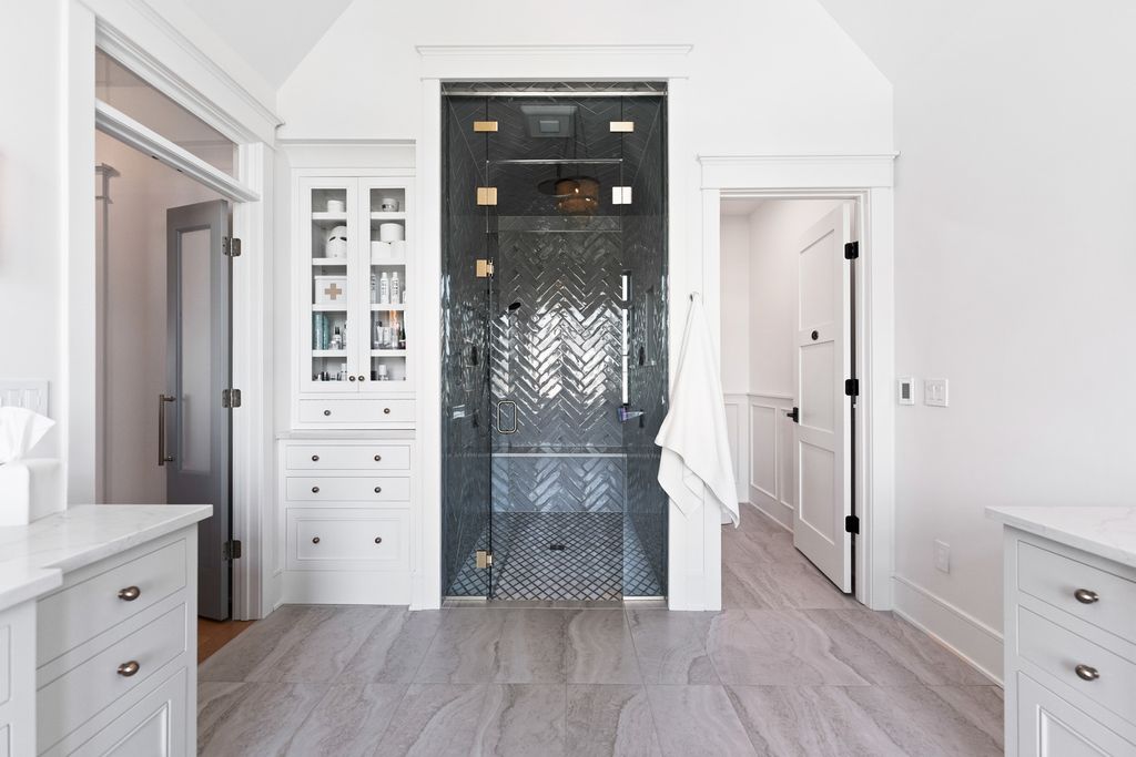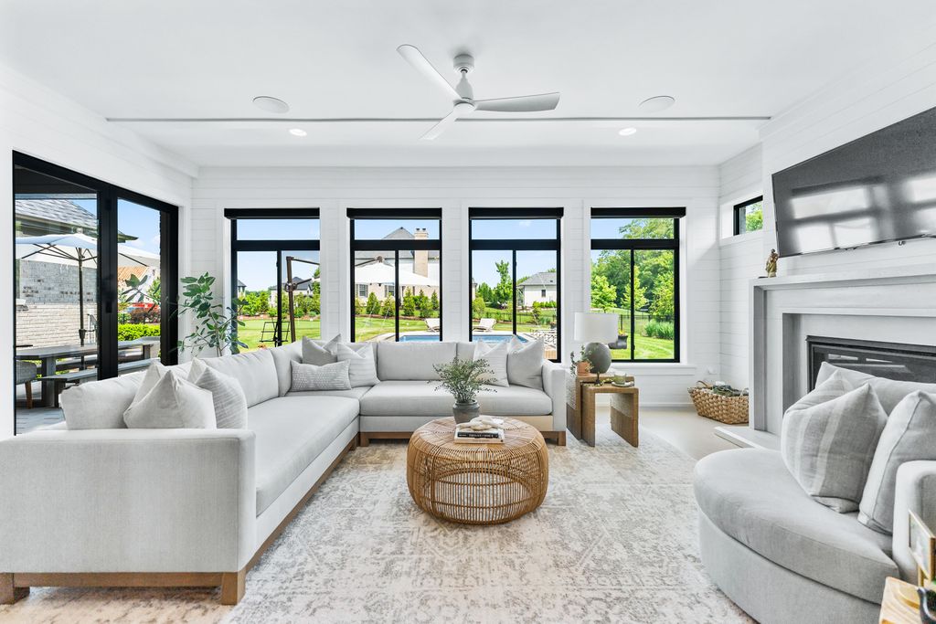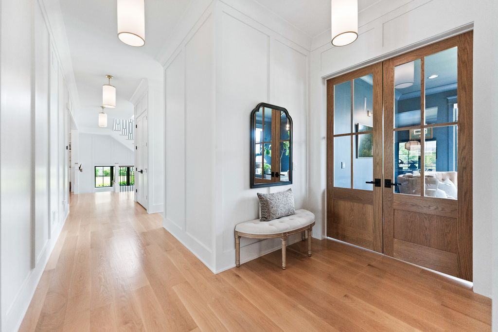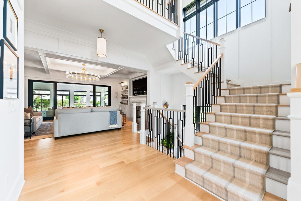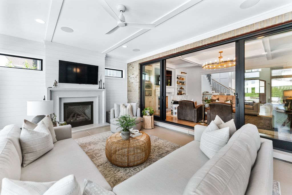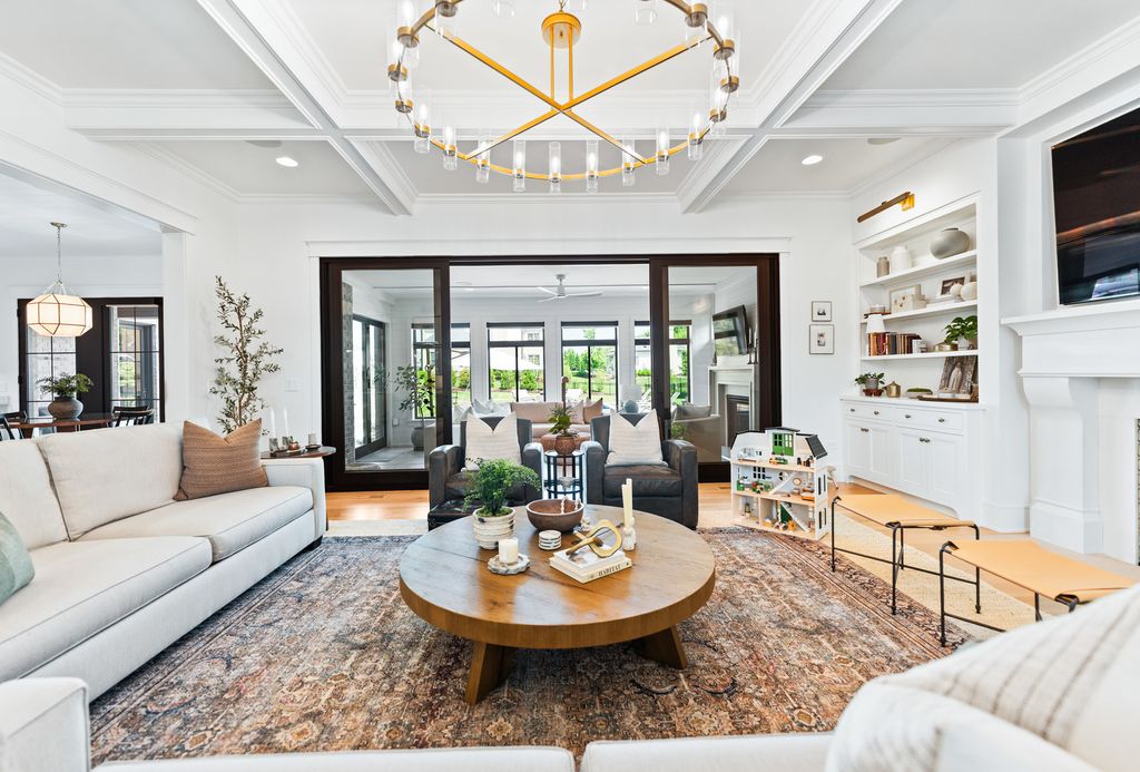 Located in the prestigious Prairie Lakes community of St. Charles, this better-than-new luxury home showcases a resort-style backyard with a modern pool, putting green, and presents like brand-new construction, offering a refined blend of design, comfort, and lifestyle. Built by the renowned Lighthouse Builders, this exceptional custom residence reflects timeless architecture, superior craftsmanship, and a thoughtfully designed open-concept layout tailored for both elevated entertaining and effortless everyday living. Step into expansive, light-filled interiors where white oak hardwood flooring, curated designer lighting, and architectural detailing create a cohesive sense of understated luxury. The formal living and dining spaces are enhanced by custom trim design and intentional architectural elements that elevate each room while maintaining warmth and livability. At the heart of the home, the kitchen reflects exceptional design and craftsmanship, featuring a grand center island, custom cabinetry, and premium appliances, including a Wolf six-burner range and paneled Sub-Zero refrigerator. An architectural statement ceiling adds dimension, while a built-in dry bar with a wine refrigerator and a sunlit dining area overlook the professionally designed backyard. A fully customized walk-in pantry offers extensive built-ins and highly functional storage. The family room is anchored by a striking coffered ceiling, integrated built-ins, and a 7.1 surround sound system designed for both comfort and connection. It transitions seamlessly into a four-season room with built-in speakers and panoramic views, creating a true extension of the living space and a seamless indoor-outdoor experience throughout the year. The main level also features a private office with French doors and abundant natural light, a thoughtfully designed laundry room with black-and-white checkerboard flooring, built-in workspace, and ample storage, as well as a functional mudroom with custom cubbies and direct access to a full bath-ideal for poolside use. A refined powder room completes the main level. The primary suite offers a serene retreat, highlighted by beamed ceilings, a paneled accent wall, and tranquil views of the backyard. The spa-inspired bath features a freestanding soaking tub positioned beneath expansive windows, dual vanities with custom cabinetry, and a glass walk-in shower wrapped in bold herringbone tile-all framed by vaulted ceilings that enhance the sense of volume and light. Each additional bedroom is designed with intention, offering walk-in closets and ensuite or direct bath access. Every bath showcases elevated finishes and cohesive design elements consistent with the home's overall level of quality. The outdoor environment is designed as a private resort experience, featuring a modern in-ground pool with an integrated water feature, an expansive paver patio, professionally curated landscaping, ambient lighting, a custom putting green, and a built-in trampoline-all within a fully fenced setting designed for both relaxation and recreation. Additional highlights include a four-car garage, a strong architectural presence, and a prime location just minutes from downtown St. Charles, top-rated schools, premier golf courses, and private country clubs. This is a rare opportunity to own a better-than-new luxury home in Prairie Lakes offering refined finishes, thoughtfully designed living spaces, and a truly elevated lifestyle.