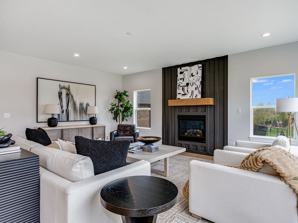 READY NOW new construction. The brilliant construction of our custom home at 12744 Caruso Court, located in the luxury neighborhood of Derby Pines features magnificent modern touches to the traditional home style. Upon entering, this stunning single-family home amazes with its graceful foyer with a gorgeous staircase. Right before the staircase is an entryway into the formal living room/office flex space of the home. Formal dining room that is exquisitely framed with custom molding. Continuing into the home, the spacious open-concept great room is framed with massive windows for an abundant amount of natural light to brighten this living space. In the center of the great room is a large fireplace with custom millwork that adds a warm touch. The great room flows seamlessly into the fully customized gourmet kitchen that is equipped with professional stainless-steel appliances, an oversized kitchen island, custom cabinets, large walk-in pantry and a spacious breakfast room. The remainder of the first floor holds a stylish powder room, and a roomy mudroom room with convenient access to the 3-car garage of the home. The magnificent staircase leads upstairs to the second floor where all four bedrooms of the home are situated. The expansive master bedroom is furnished with an airy spacious feel for a room made to be a sleeping sanctuary. The master bedroom also has ample room in its massive walk-in closet. Its en suite bathroom is spa-inspired with custom cabinetry, distinctive lighting selections, custom tile work. This spectacular bathroom features his and hers sinks and more. Two of the three remaining bedrooms are connected by a jack and jill bathroom, and the final bedroom has its own full bathroom, with all three bedrooms each having large closets. Ready for delivery NOW!
