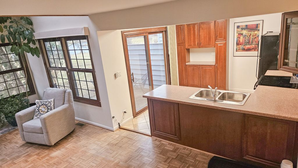 Charming Heather Ridge Maple Model townhome with golf course and pond views. As you step into the entry, experience the vaulted living/dining room with floor to ceiling stone fire place, two large skylights and parquet floors. The kitchen has been updated with beautiful hardwood cabinets, Formica counter tops and tile flooring. Enjoy morning coffee on the concrete patio with views of mature landscaping, golf course and pond. First floor bathroom was remodeled with earth tone tile walls and flooring. Owner added walk-in shower with glass doors, grab bars and pedestal sink. The first floor bedroom has laminate flooring, crown molding and chair rail. First floor stackable washer and dryer. The long time owner added chair lift (available separately) for easy access to upper level loft, bedroom and full bathroom. Seller will include additional stainless grab bars. The interior was freshly painted throughout. The one car, detached garage is conveniently located just across Chandler. Unit has newer architectural shingle roofing, and natural light pours into the upgraded, double hung windows. Assessment includes lawn maintenance, snow removal, water, common insurance, security, exterior maintenance and scavenger. You and your guests can enjoy the pool, tennis courts and club house. Heather Ridge location assures easy access to I94 and lies between Chicago and Milwaukee! This is an estate so please allow time for seller response.