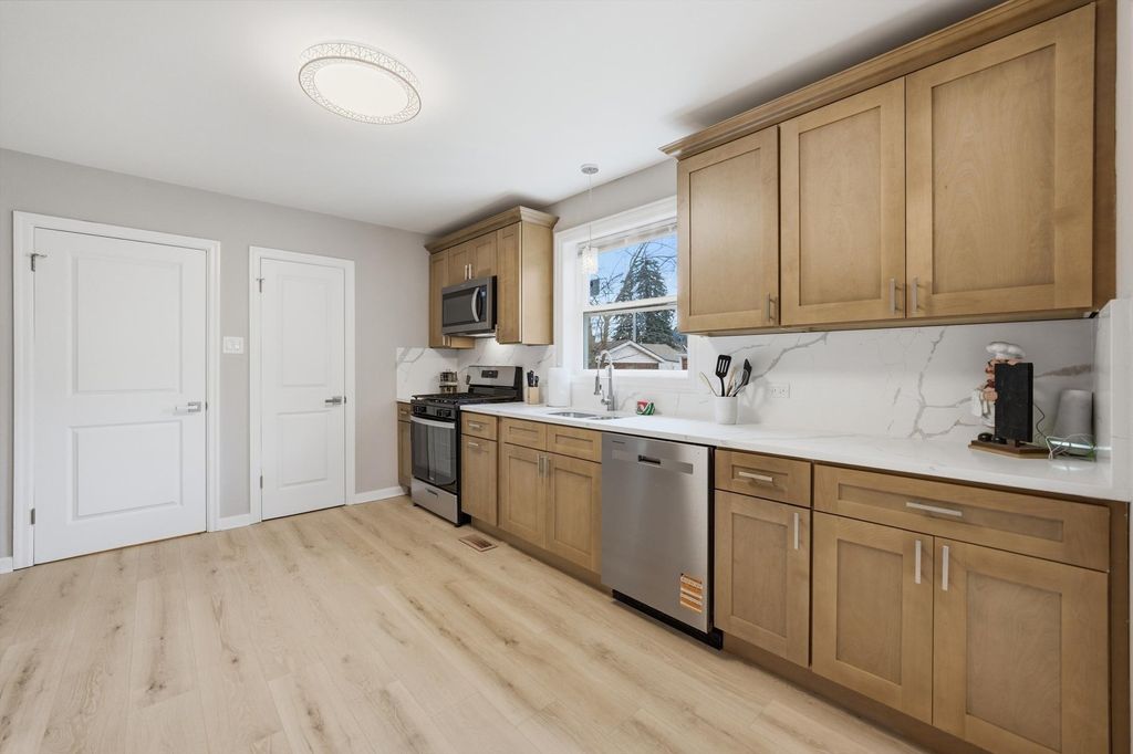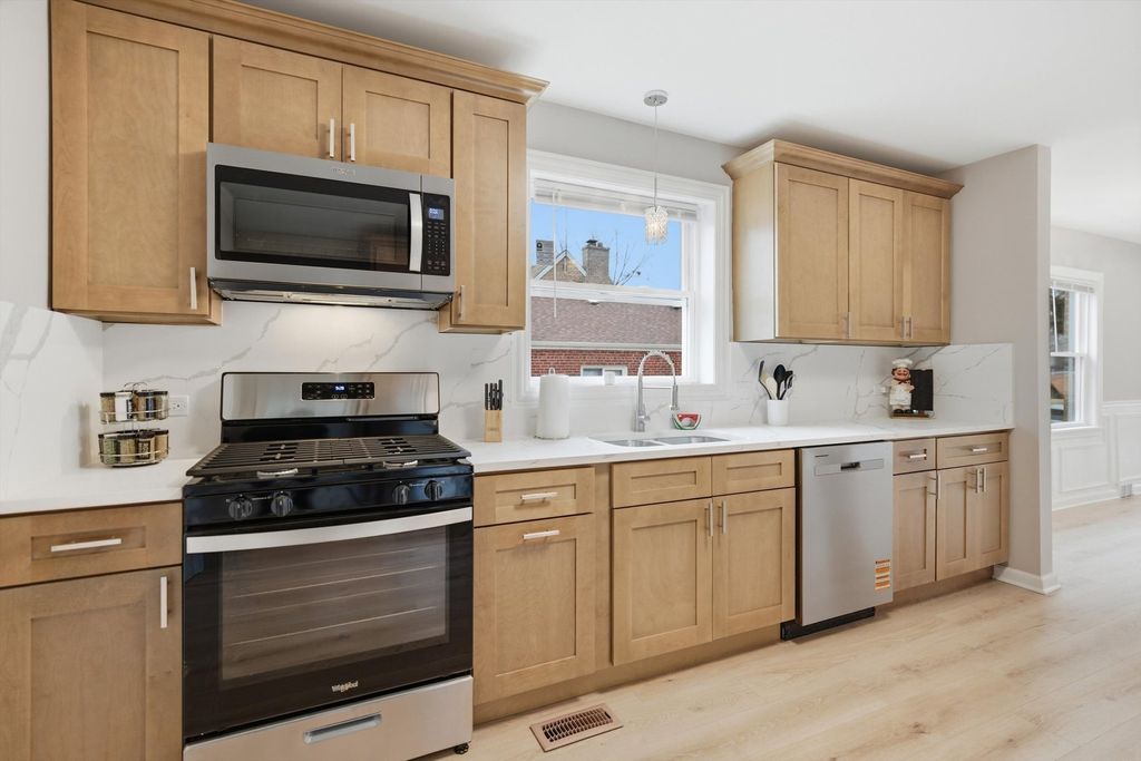 Stunning fully rehabbed 5-bedroom, 2-bath home with a dedicated office/play room/possible 6th bedroom offering modern style and move-in-ready convenience! Situated on a rare double lot offering extra outdoor space. This beautifully updated raised ranch features an open-concept layout with a bright and spacious living area that flows seamlessly into a modern kitchen with sleek finishes and contemporary design. Enjoy peace of mind with a brand-new roof, new windows, and updated electrical throughout. The finished basement provides additional living space, complete with an electric fireplace in the family room, perfect for relaxing or entertaining. A spacious side yard and 2-car garage add even more functionality to this incredible home. Don't miss this incredible opportunity! This property is strictly FOR SALE (not for rent or lease). Professional phots coming soon!