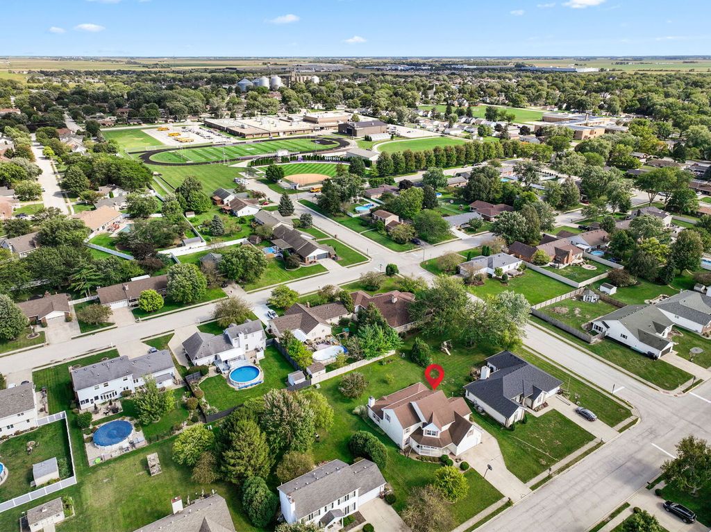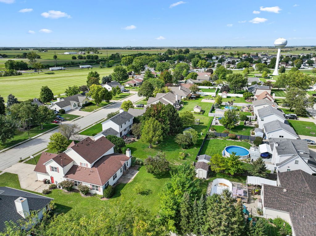 Multiple offers. Seller requesting HIGHEST & BEST OFFERS by Wed. 3/4 by 8PM. This home blends the PERSONALITY OF YESTERYEAR with the BENEFITS OF TODAY! The HIGHLIGHT OF THIS HOME is the 3 room 1st floor IN-LAW SUITE! This suite could also be used as a HOME OFFICE! Manteno is a GOLF CART COMMUNITY! Manteno High School is #2 in KANKAKEE COUNTY METRO AREA & #201 in Illinois according to the 2025-2026 U. S. News & World Report HIGH SCHOOL RANKINGS! Relax on the FRONT PORCH of this VICTORIAN STYLE HOME. The front room can be used as the living room. To the left of the entry is the DINING ROOM. Straight back is the LARGE KITCHEN with tons of cabinets and GRANITE COUNTERTOPS. The kitchen is split in 2 SECTIONS, 1 for preparing the dinner with the appliances and sink. The other has the area for DINING AREA and breakfast bar, PANTRY and planning desk. Both areas open to the LARGE FAMILY ROOM with a TREY CEILING with knockdown ceiling, hardwood floors, GAS LOG FIREPLACE with oak mantle and recessed lights above. The small ARCHED STYLE TRANSOM WINDOW brings in extra NATURAL LIGHT to brighten up the large room! Down the MAIN FLOOR HALLWAY leads you to the guest half bath as well as the IN LAW SUITE. The suite includes 3 rooms, 2 ROOMS could be used as BEDROOMS (both have closets) but most likely the left room would be used as a DEN, the middle room as a LIVING ROOM and the other used as a BEDROOM with an attached BATHROOM. The bathroom is like a MASTER BATHROOM since it has a spacious WHIRLPOOL TUB with corner controls and tub spout, SEPARATE SHOWER and sink. The bathroom does have 2 ENTRANCES so it can function either as a master bathroom or guest bathroom. Also on the FIRST FLOOR is the UTILITY ROOM for all to use! There are stairs to the upstairs for the FROG (family room over garage) and the other 3 BEDROOMS. The FROG measures approximately 29'x19'! The 2 SECONDARY BEDROOMS plus another FULL BATHROOM are just down the hall and at the end of the hall is a 2nd MASTER BEDROOM that measures 19'x12' with it's own CATHEDRAL CEILING plus master bath with WHIRLPOOL TUB! There is also a PARTIAL BASEMENT that houses many of the mechanicals and a SUMP PUMP. The WATER HEATER is for the main part of the home and the TANKLESS WATER HEATER is for the EXTENDED FAMILY BATHROOM. The family room downstairs has the SLIDING DOORS that open to the BACK PATIO and the generous sized back yard for kids or pets to play! The 2 CAR ATTACHED GARAGE has a freezer that can stay and a WHEELCHAIR RAMP that can also stay. Manteno could be in a HALLMARK MOVIE! Part of its attraction is at least 14 PARKS with VARIETY OF ACTIVITIES like the Fitness Court, PICKLEBALL, whiffle ball field, bocce ball court, SAND VOLLEYBALL COURT and more! On the north end is the 67 ACRE PARK with football, soccer and baseball fields, AMPHITHEATER for Movies in the Park, tennis courts, GAZEBO, clubhouse, hockey rink in the winter and roller blading in the summer and more! Nearby is the VIBRANT DOWNTOWN and the Square serves as a central gathering place with it's JUMPING PILLOW, lighted water feature, ZIP LINE, rotating climber, a fire pit with seating, a circle with parking and more. WALKING AND BIKING TRAILS meander through town from north to south. Some of the POPULAR STORES AND RESTAURANTS downtown include PJ's ICE CREAM, The Well coffee shop, Sammy's Pizza, Yanni's Cafe, Summa Brothers Barbershop, Main Street Pharmacy, BERKOTS grocery store and much more! Popular activities include OCTOBERFEST, Movies in the Park, golf cart parade, Manteno Cruise Nights, ROCKIN ON THE SQUARE, Lighting on Main Street at Christmas and more! Ask for 1 year AHS brand home warranty. Start Packin