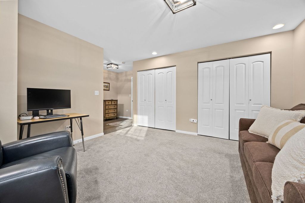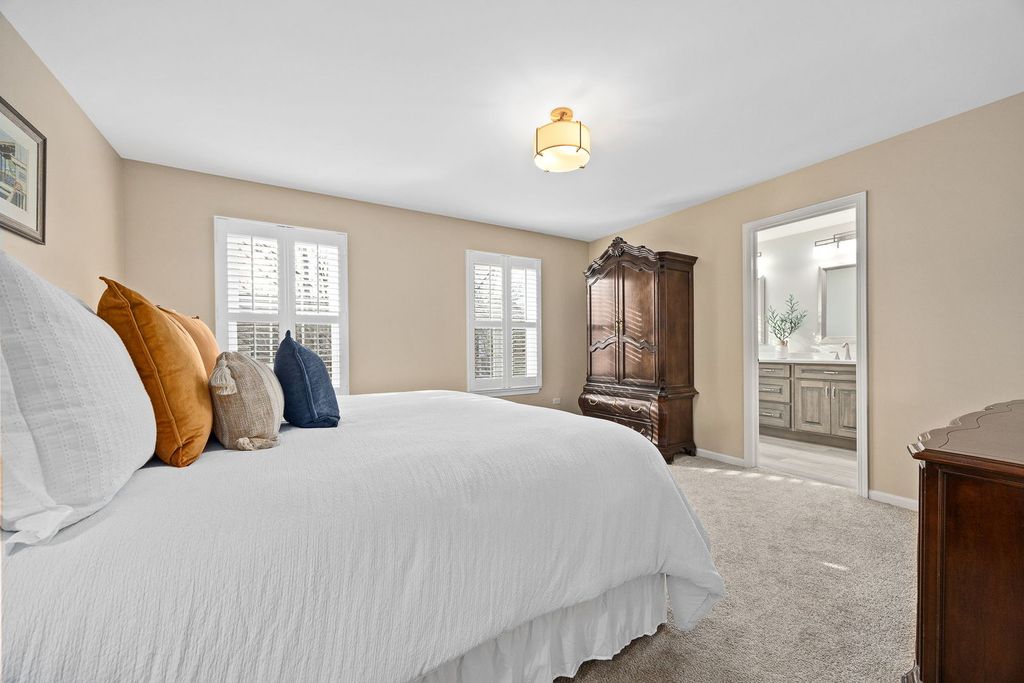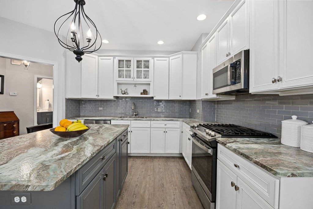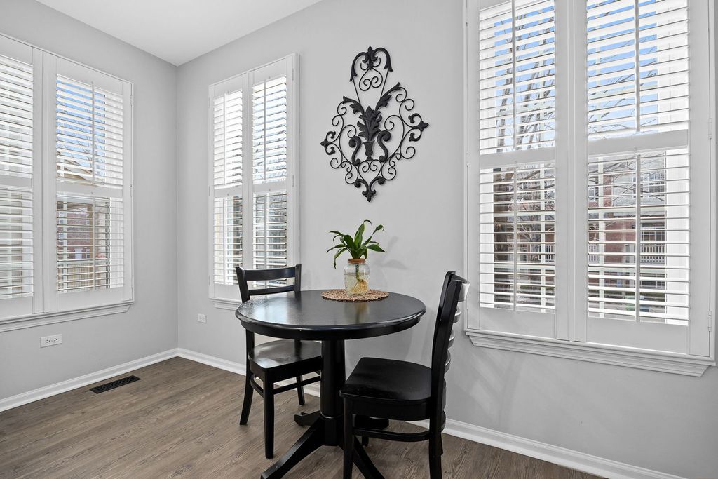 This end unit townhome, located in downtown Winfield, features three levels of living space including a finished lower level and a two-car garage. The residence boasts classic architectural details, such as crown molding, new flooring, and a gas fireplace that enhances the ambiance of the main living and dining areas-ideal for entertaining. Numerous upgrades have been completed throughout, including new windows (2022), primary bathroom remodel (2023) with updated countertops, vanity, shower with glass doors, and mirrors; kitchen renovation (2022) with granite countertops and freshly painted cabinets; water heater, furnace, and air conditioner replacement (all in 2020); powder room renovation (2022) with new vanity, tile, and mirror; new carpeting and comprehensive interior painting. Appliances (2021). New Balcony (2024) Plantation blinds are also installed. The property offers two spacious bedrooms, each with a private bathroom. The primary bedroom includes a separate sitting area suitable for reading, relaxation, or use as a nursery, along with two closets-one being a walk-in. The primary bath features a separate shower, expansive vanity, recessed lighting, and plantation blinds for privacy. The lower level provides access to the attached two-car garage, offering ample storage, and can be utilized as a family room, hobby space, or home office. Conveniently situated near Metra and CDH Hospital, the location is ideal for work or leisure commutes. Nothing to do but move in and enjoy!! A must see!!