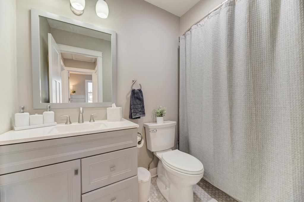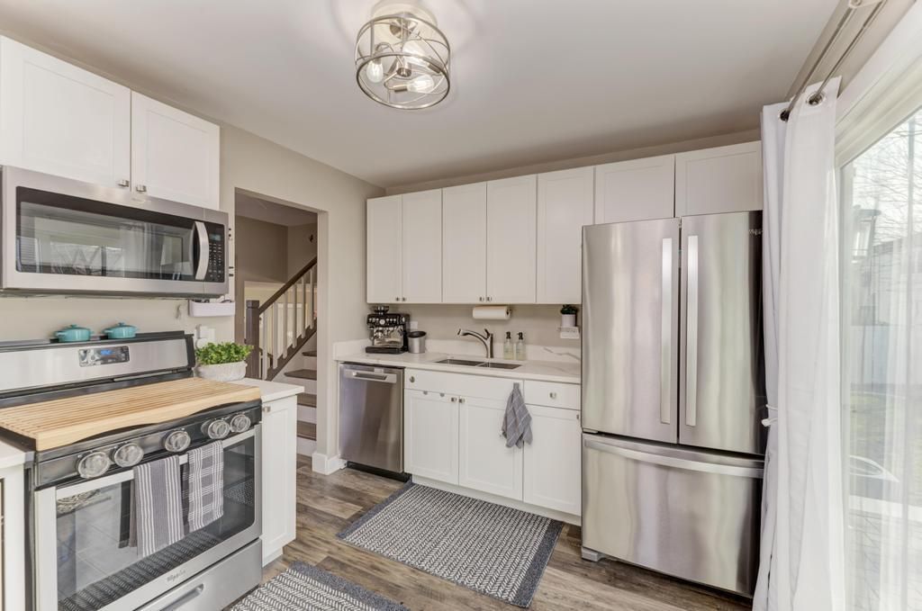 MULTIPLE OFFERS RECEIVED. HIGHEST AND BEST DUE MONDAY, MARCH 30 AT 10AM. Home was completely updated in 2020 with a new kitchen, baths, windows, and more, and has been further enhanced and meticulously maintained. The front closet has been thoughtfully converted into a charming nook, perfect for coats, featuring a built-in bench and ample storage. The living and dining rooms offer comfortable gathering spaces, while the kitchen opens seamlessly to the dining area and features white cabinetry, quartz countertops, and stainless steel appliances. Upstairs, the spacious primary bedroom includes a modern ceiling fan with light, a full wall of closets, and a private ensuite bath with a walk-in shower. The secondary bedrooms are generously sized with ample closet space and overhead lighting and share a renovated hall bath finished in timeless white and gray tones. The lower-level family room showcases a beautifully redesigned fireplace with a geometric ceramic tile surround and custom white mantel. A sliding glass door brings in abundant natural light and provides access to the backyard. The lower-level half bath features a newer white vanity and ceramic tile flooring. Bedroom four, currently used as an office, offers a large window overlooking the side yard and a full wall closet. A dedicated laundry room adds convenience, with washer and dryer replaced in 2020. From the kitchen, step outside to a stunning newer brick paver patio (2025) and a fully fenced yard (2021). Additional updates include attic insulation (2023), furnace (2021), A/C (2021), water heater (2018), both interior staircases rebuilt (2020), light fixtures (2021), and windows (2020). Village Inspection complete with NO repairs required; report under Additional Information.